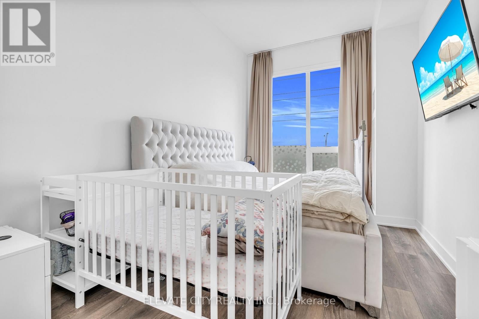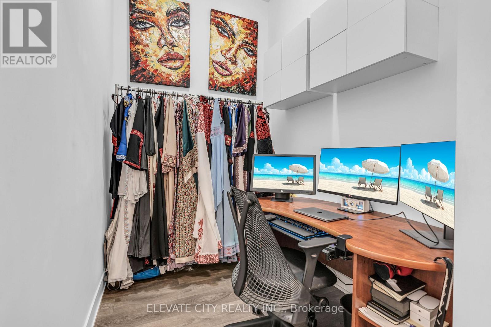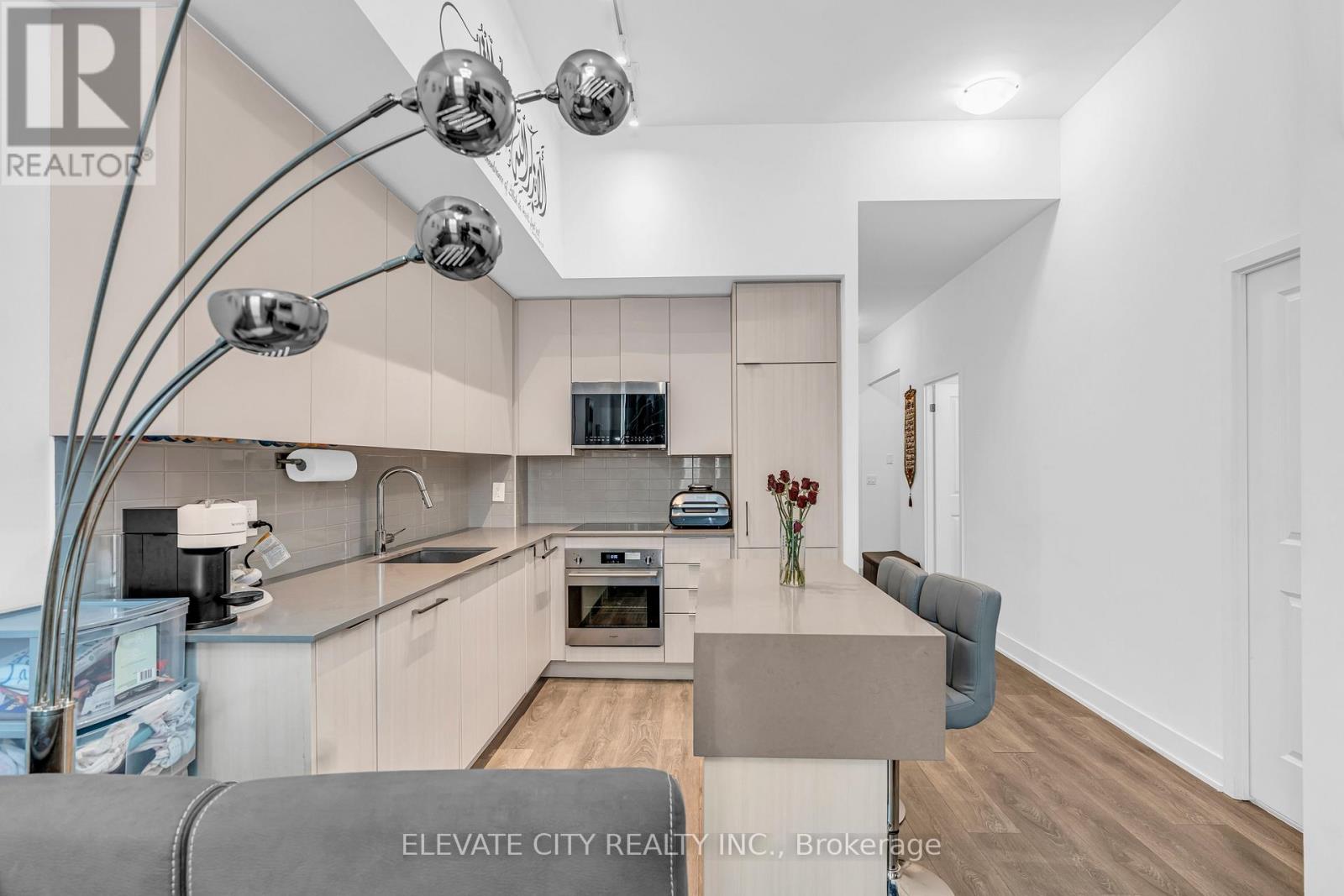 Enjoy modern, low-maintenance living in this upgraded 780 sq ft condo at Oak & Co., ideally located in Oakville's vibrant Uptown Core. This spacious unit features a large den, two full bathrooms, and a private balcony with stunning views. The sleek kitchen offers stainless steel appliances, contemporary cabinetry, and premium countertops, all flowing seamlessly into the open-concept living area. Additional highlights include in-suite laundry, a walk-in closet, and the rare convenience of an underground parking space and locker located just steps from the unit. Perfectly situated steps from shopping, dining, and the Uptown Bus Terminal, with easy access to Sheridan College, Oakville Trafalgar Hospital, GO Transit, and major highways including the 403, 407, and QEW. Building amenities include an outdoor pool, gym, yoga studio, party room, and pet wash station. A smart opportunity for first-time buyers, downsizers, or investors seeking a functional, well-located condo in one of Oakville's most desirable communities. (id:64974)