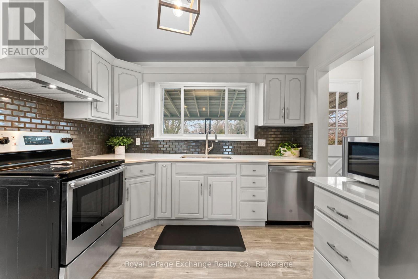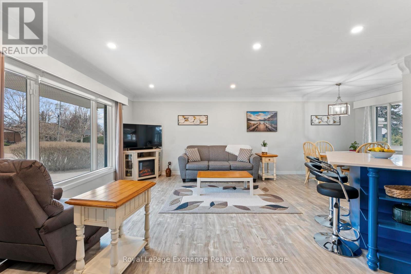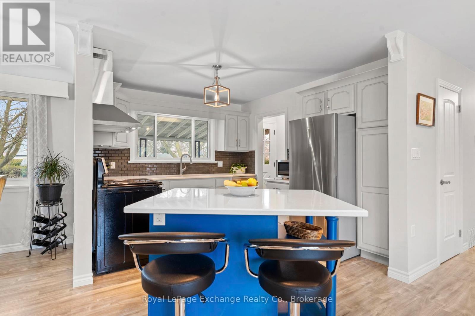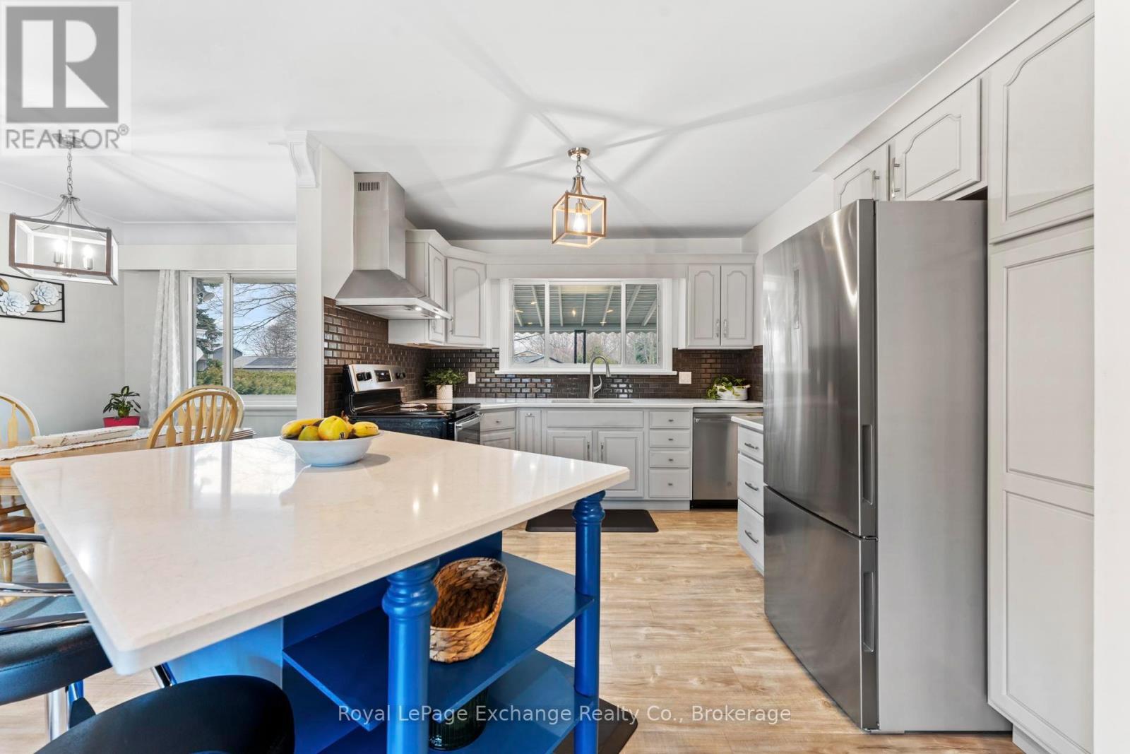 Situated within walking distance of the beach, golf course, and hospital, this beautifully updated home offers the lifestyle many buyers are searching for. The main level features three bedrooms and two bathrooms, along with a modern open-concept living space designed for both comfort and easy maintenance. The lower level adds even more living space with a large additional bedroom, a spacious games room, and a convenient 3-piece bathroom, perfect for guests or family gatherings. Extensively renovated in 2020/2021, updates include the creation of the open-concept layout, new window panes on the main level, new flooring throughout the main floor, updated lighting throughout, a custom kitchen island with quartz countertops, stainless steel appliances, new interior doors and hardware, an ensuite bathroom and closet, trim, paint, and a forced air gas furnace. A custom 10' x 20' storage shed was also added for extra convenience in 2025. With the golf course just around the corner and the beach at the end of the road, the location is hard to beat. You'll also enjoy an easy walk to all of Kincardine's downtown shops, restaurants, festivals, and parades. Pride of ownership is evident the moment you step inside this lovely home. Be sure to book your private showing today. (id:64974)