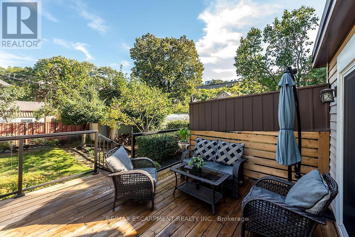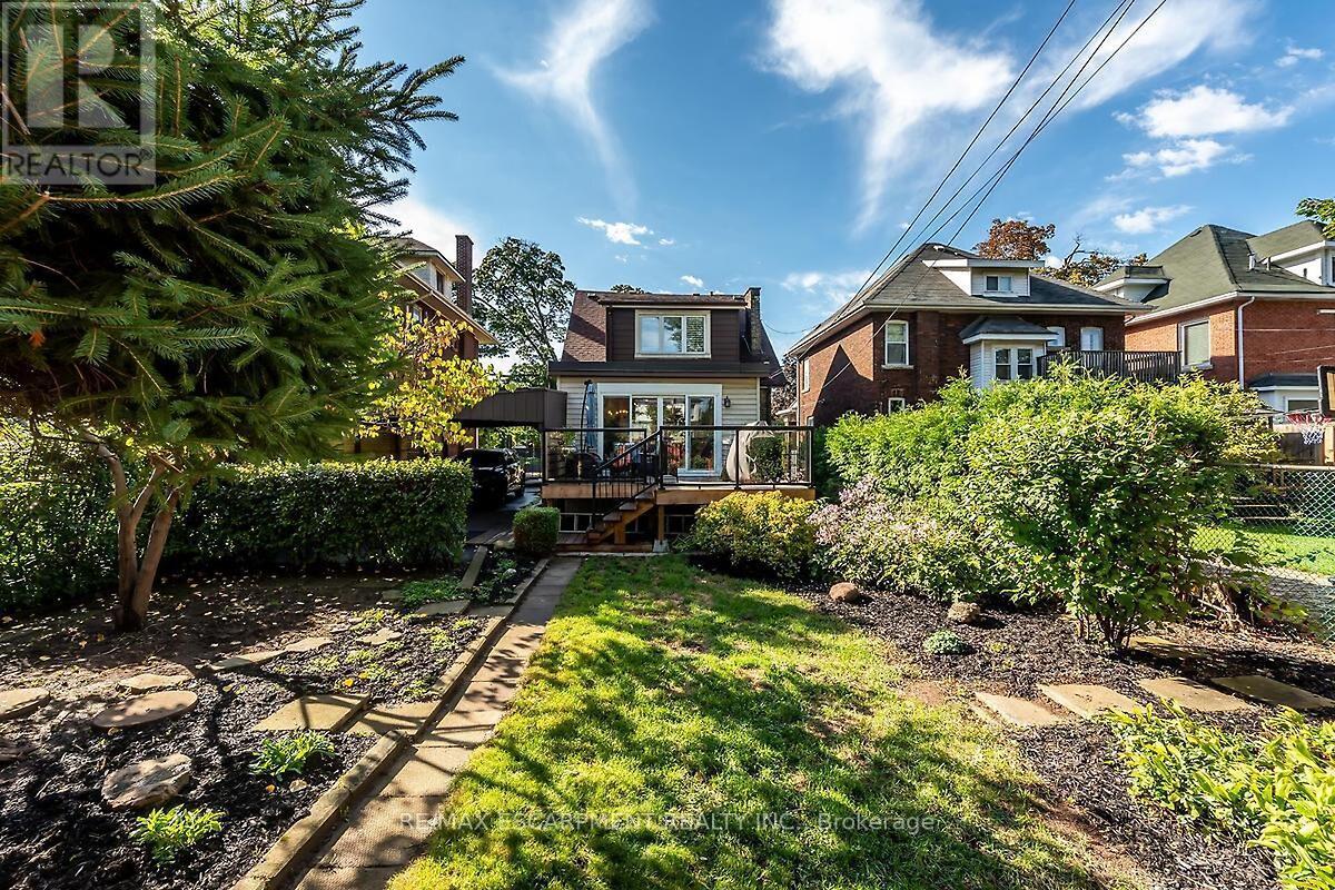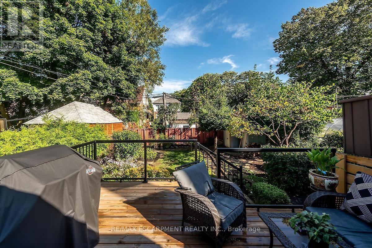 Seize this rare opportunity to live on one of the most sought after streets in Hamilton on historically designated St.Clair Boulevard. This superb location is walking distance to Gage Park and Rosedale Tennis Club. Entering the foyer, you are immediately greeted with historic details including original wood trim and stained glass windows. The open concept main level enjoys abundant natural light from oversized sliding doors leading to the rear deck. Updated kitchen features quartz counters, pot lights and butcher block island. Convenient powder room and main floor laundry were added in 2018. The second level offers three spacious bedrooms and main 4-piece bath. A separate side entrance to the partially finished lower level including second 4-piece bath offers potential for future in-law suite. Enjoy relaxing on the rear deck ('21) overlooking your private yard and view of the escarpment. Central air new 2022. Act now to make this house your home. (id:64974)