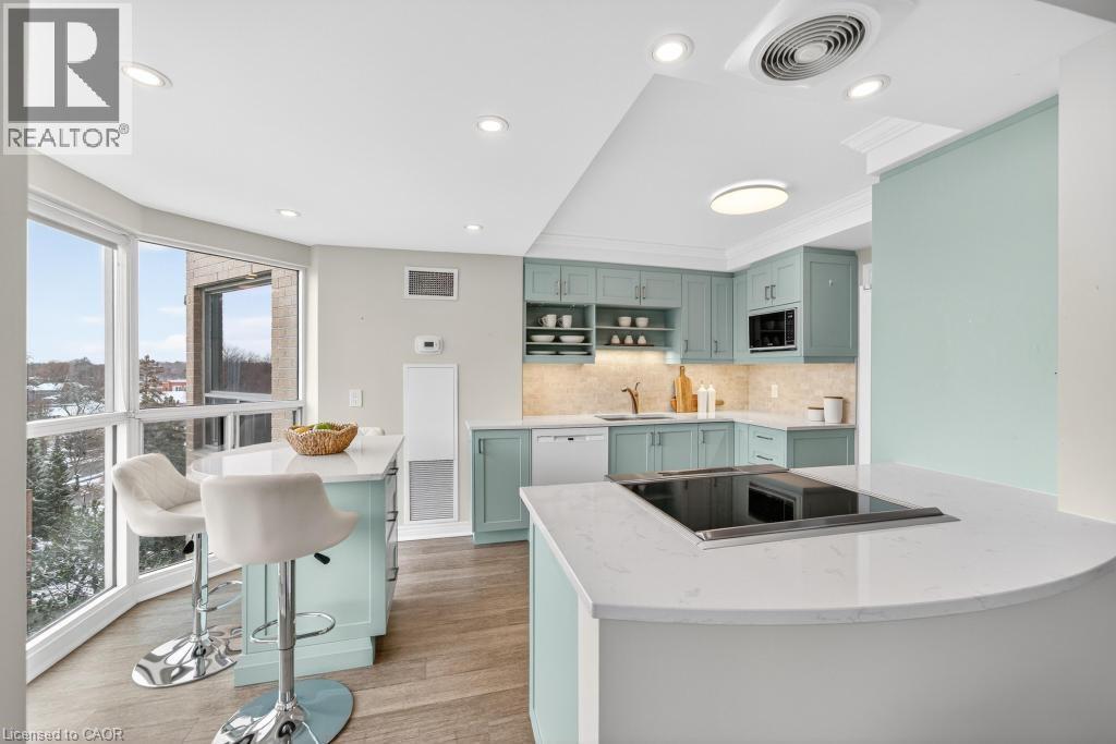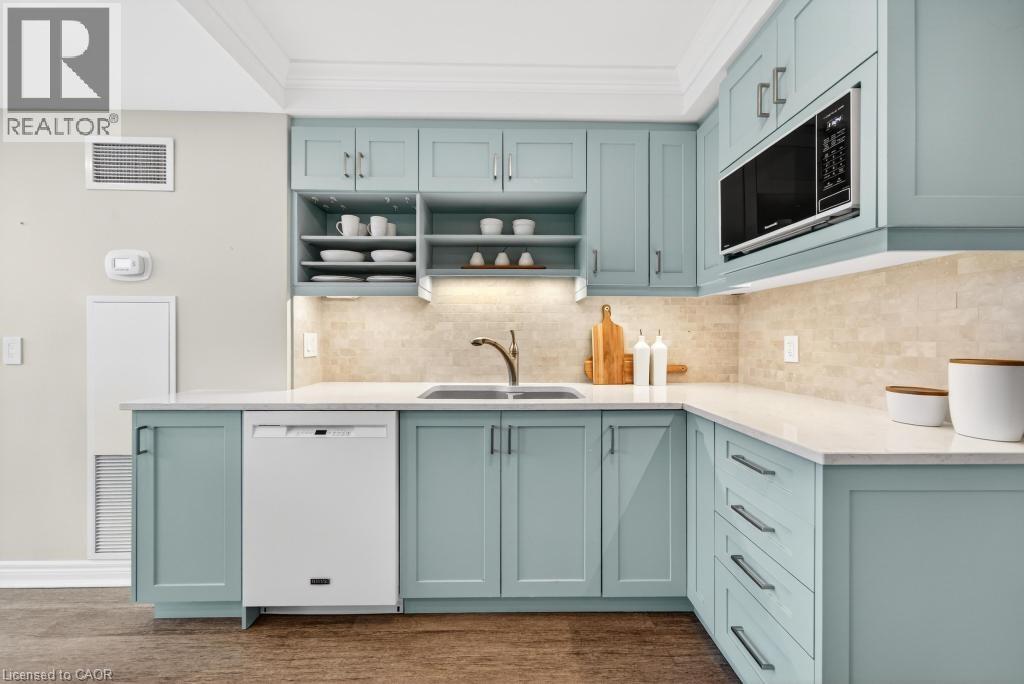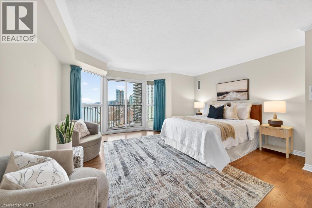 Discover exceptional lakeside living in one of Burlington’s most desirable buildings. This bright and spacious 2-bedroom, 2-bathroom condo offers stunning southwest views of Lake Ontario and downtown Burlington, filling the home with natural light and the glow of spectacular sunsets. Featuring hardwood flooring and an updated kitchen, the suite provides a warm and comfortable space ideal for both everyday living and entertaining. Enjoy the perfect location peacefully set away from the bustle yet just a short walk to downtown’s restaurants, shops, the Performing Arts Centre, Art Gallery, Spencer Smith Park, and waterfront trails. The building offers impressive amenities, including an indoor pool and hot tub, exercise room, library, party room, BBQ area, on-site superintendent, security system, and direct water access for kayaking. One parking space and one locker are included. This is a rare opportunity to experience convenience, views, and lifestyle all in one exceptional home. (id:64974)