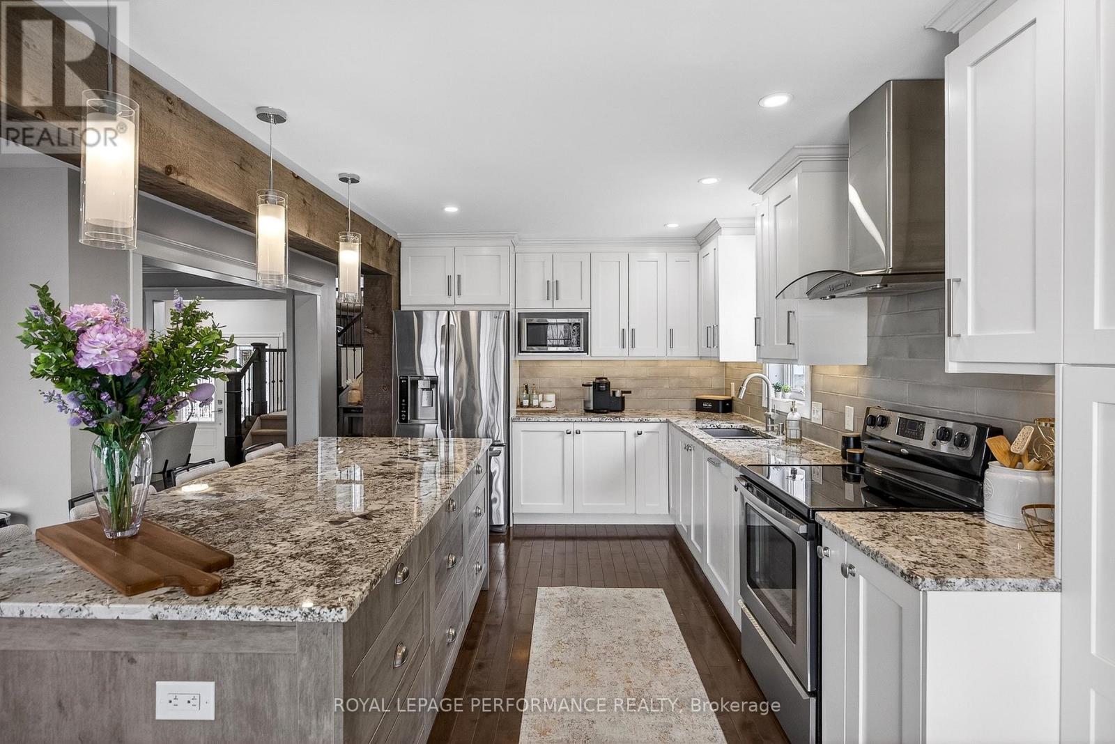 Welcome home to 2191 Saturn Crescent, nestled in the desirable Fallingbrook community and backing directly onto Marcel Lalande Park. This beautifully updated 3+1 bedroom home has been extensively renovated from top to bottom and is truly move-in ready.The open-concept main floor is designed for modern living and entertaining, featuring a stunning remodeled kitchen complete with a large island, granite countertops, ceiling-height shaker cabinetry, extended pantry, and stainless steel appliances. A striking rustic wood beam adds warmth and character, while the living room showcases a gorgeous gas fireplace with a stone façade. A formal dining room completes the elegant main level.Upstairs, the sun-filled family room with soaring 11-foot ceilings offers the perfect retreat to relax and unwind. The spacious primary bedroom easily accommodates a king-size bed and is complemented by a beautifully redesigned ensuite featuring a stand-alone tub, curbless walk-in shower, and sleek black hardware.The fully finished lower level adds even more versatility with a large recreation space and an additional bedroom or home office. Step outside to your private backyard oasis with a wrap-around deck and built-in gazebo-perfect for summer entertaining-plus a new above-ground pool (2025).Additional updates include a new garage door (2025). With its premium location, stylish upgrades, and thoughtful layout, this is the perfect home for a growing family. UPDATES: RAILINGS, HARDWOOD & CARPET 2011- ROOF 2015-FURNACE & AC 2016-KITCHEN RENO 2017-BASEMENT RENO 2019-INTERLOCK & DRIVEWAY 2020- ALL BATHROOMS 2023-POT LIGHTS TO MAIN ROOM & STIPPLE REMOVED 2023-GARAGE DOOR 2025-18FT ABOVE GROUND POOL 2025-POT LIGHTS ADDED TO FAMILY ROOM 2025 (id:64974)