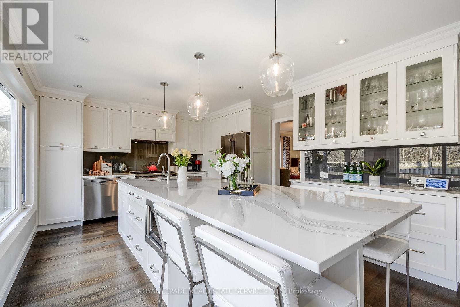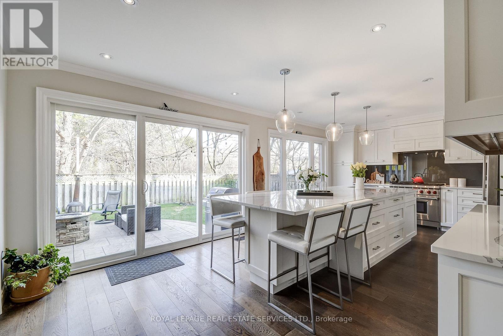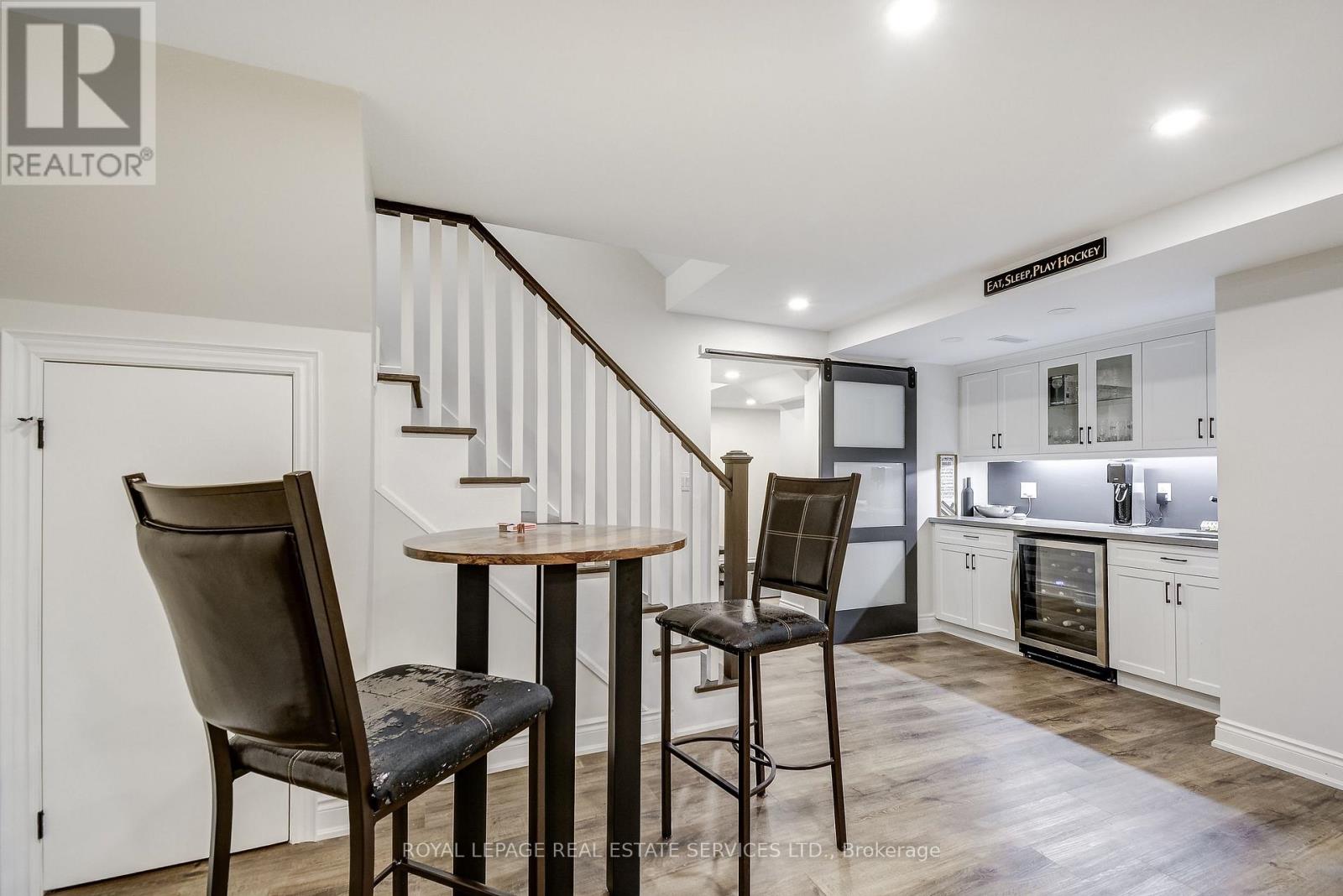 Set on a sought-after, family-friendly River Oaks street backing onto a serene wooded trail system, this extensively upgraded home delivers the location, quality updates and move-in ready living today's buyers demand. Walk to top-rated schools, parks, trails, transit and everyday amenities in one of Oakville's most desirable communities.The home showcases hardwood flooring throughout the main level, stairs, upper hallway and primary bedroom - one of the most requested upgrades for both style and durability. A chef-inspired, fully renovated kitchen anchors the home featuring a premium Wolf gas range & oven, G/E Cafe Fridge, Miele Dishwasher, Maytag Washer Dryer, quality appliances, modern finishes, generous prep space and a functional layout that opens seamlessly to bright principal rooms, ideal for entertaining and everyday family living. Upstairs, the spacious primary retreat features a beautifully updated 5-piece ensuite complete with double sink vanity, glass-enclosed shower, soaker tub and heated floors-a premium comfort feature that buyers love. Secondary bedrooms are well-sized with large windows and custom window coverings, offering excellent natural light and privacy.The finished basement adds valuable, flexible living space with a full 3-piece bathroom, luxury vinyl flooring, electric fireplace, custom built-ins and bar with Wine Fridge and wet bar and a dedicated gym or storage area - perfect for growing families or work-from-home needs. Major updates already completed include newer windows, updated mechanicals. Outside, enjoy a private, fully fenced backyard backing onto wooded greenspace-a rare and highly desirable setting with no rear neighbours, ideal for relaxing or entertaining. Located within top-rated school catchments including Post's Corners PS, White Oaks SS(South Campus), St. Andrew CES, Holy Trinity CSS and Sunningdale PS(French Immersion), this is a turnkey opportunity combining the lifestyle, privacy and upgrades that buyers expect. (id:64974)