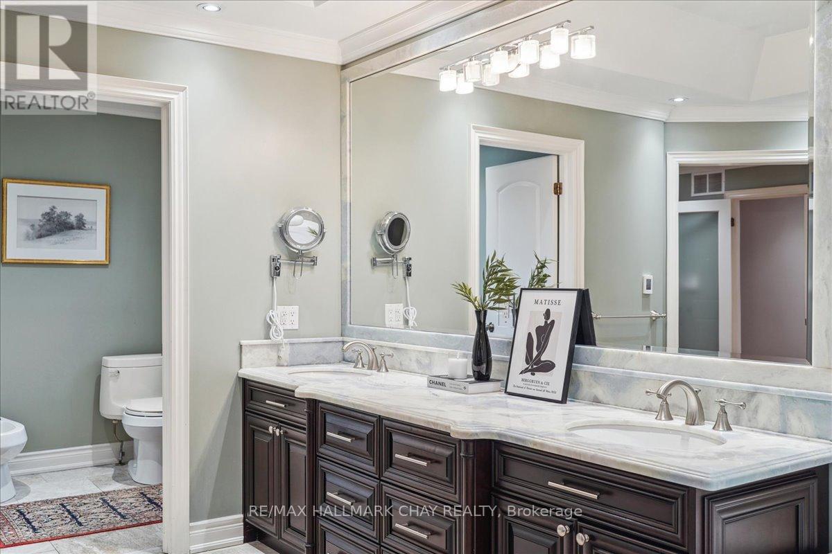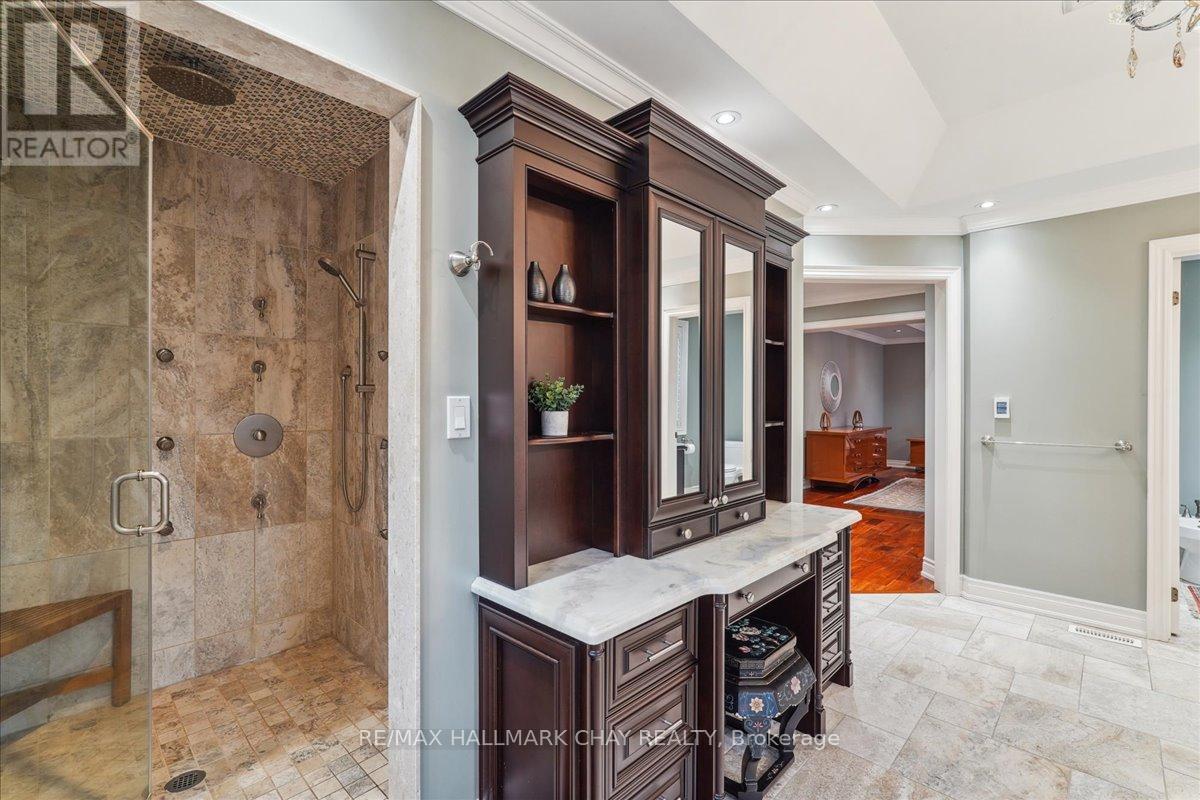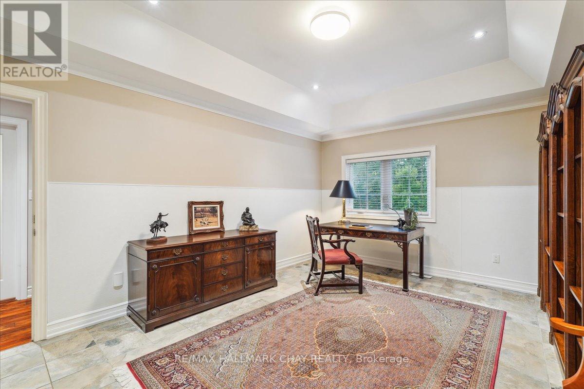 Welcome to a world of luxury and serenity on 37 acres of beautifully treed land, offering privacy, flexibility, and refined living. With over 4500 sqft, this exceptional 6-bedroom, 4-bath estate is perfectly suited for multi-generational living, a home-based business, or those seeking space without compromise. The setting invites both adventure and tranquility, featuring a peaceful pond, gazebo, and a 4-stall barn ready for your hobby farm vision. Whether hosting unforgettable gatherings or enjoying quiet moments, this property adapts effortlessly to your lifestyle. Inside, the great room impresses with soaring two-storey windows and a cozy fireplace that anchors the home with warmth and elegance. The kitchen is both functional and striking, showcasing exotic granite, Sub-Zero refrigeration, and Viking induction and convection cooking, ideal for everyday living and elevated entertaining. The primary suite is a private retreat with a walk-in closet and spa-inspired ensuite complete with heated floors, onyx counters, and a fully tiled steam shower. A standout feature is the separate, above-grade 2-bedroom in-law suite offering comfort and independence for extended family or guests. In addition, a third kitchen, office, and sunroom with private entrance create an ideal home-based business setup, allowing you to work seamlessly without impacting your personal living space. Outdoor living is equally impressive with an expansive deck, pergola, and retractable screens, perfect for summer evenings and effortless entertaining. Located just minutes to Hwy 404, GO Station, and the amenities of Newmarket, this estate offers the perfect balance of peaceful country living with convenient urban access. Complete with a 3-car garage and ample parking, this is a rare opportunity to own a property where lifestyle, flexibility, and opportunity come together. (id:64974)