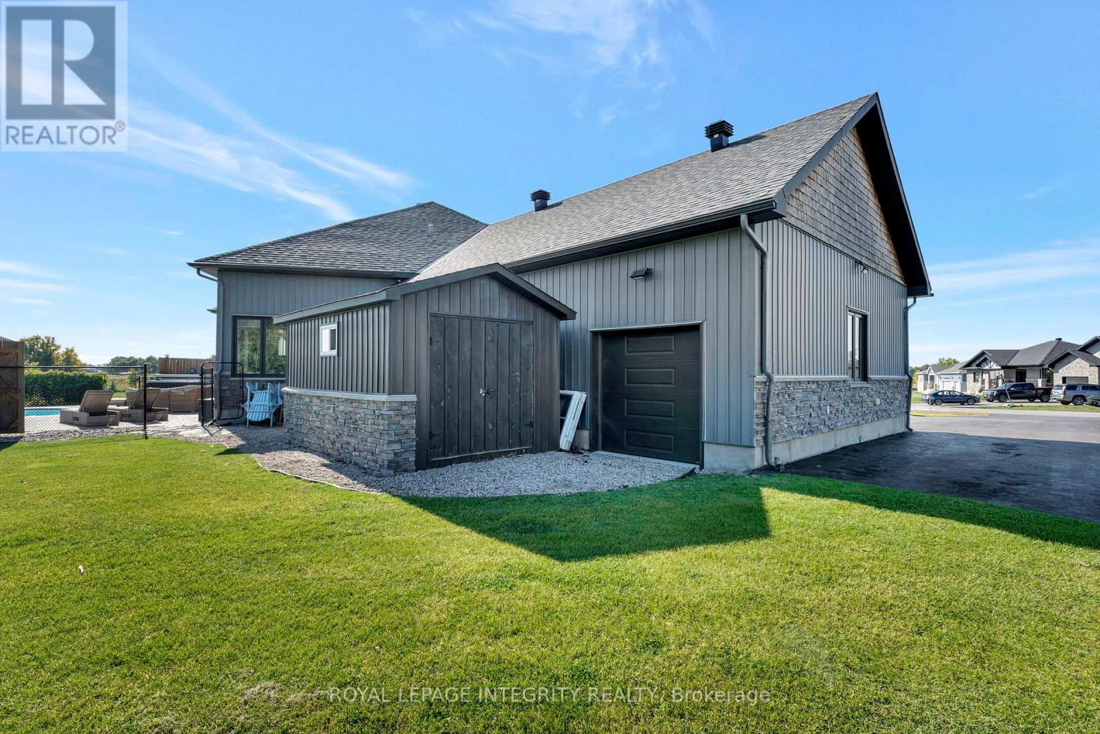 Luxury Bungalow Living in Maple Forest Estates! Set on nearly an acre in the prestigious Maple Forest Estates, this custom-built 2017 bungalow blends timeless design with modern luxury. Offering approximately 2,500 sq. ft. above grade plus a fully finished lower level, this home features 5 bedrooms (3+2) and 3.5 bathrooms, designed for both family living and effortless entertaining. The bright great room with a cozy gas fireplace opens seamlessly to the dining area and a chef's kitchen equipped with high-end appliances, stone countertops, and generous cabinetry. A private den, laundry/mudroom, and a luxurious primary suite with spa-inspired ensuite complete the main level, alongside two additional bedrooms connected by a Jack-and-Jill bathroom. The finished lower level offers exceptional flexibility, with a spacious recreation room, fitness area, two bedrooms, and a full bath-perfect for guests, teens, or multi-generational living. Radiant heated floors ensure year-round comfort. Outdoors, enjoy your own resort-style oasis featuring a heated inground pool with clear blue ionizer system, a tiki bar, and a beautifully landscaped private yard. An oversized 3-car garage, parking for 10+, whole-home generator, and water treatment system provide both comfort and peace of mind. Designed with efficiency in mind, the home offers modern heat pump systems for heating and cooling, ideal for today's energy-conscious buyer. Located just minutes from Manotick and North Gower, with quick access to Highway 416, this property perfectly balances country serenity with city convenience. (id:64974)