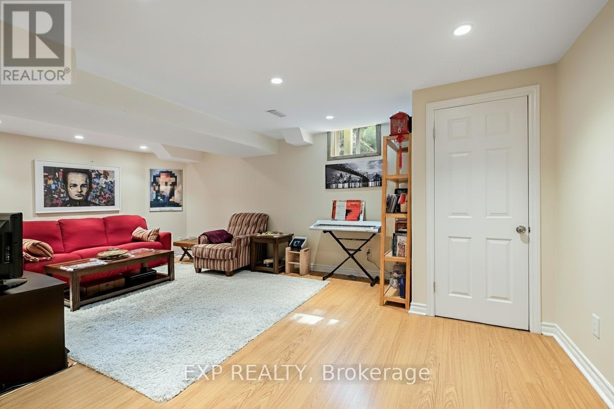 Welcome to The Fairfield's - a private enclave of executive townhomes quietly tucked in Milton's downtown core. This rare double-car garage, end-unit residence stands apart for its scale, privacy, and natural light. With more than 2,000 sq. ft. of total finished living space the home offers a warm, inviting layout and a quiet, central location that buyers value but rarely find. The main level features an inviting open layout with hardwood and ceramic flooring, a spacious Great Room with pot lights, crown moulding, a gas fireplace, California shutters, all flowing into the kitchen and out to a sun-filled patio and private garden. A main-floor laundry room with direct garage access and a convenient 2-pc powder room complete the level.. The upper level features a generous king-sized primary suite with an expansive ensuite offering a deep soaker tub, a separate walk-in shower, and a spacious walk-in closet. Completing the Second level are two comfortable bedrooms and a spacious 4 pc bathroom. The California shutters and soft broadloom provide a sense of calm and comfort on the upper level. The professionally finished basement expands your options. For buyers looking to add value, the home offers a premium end-unit position, a double-garage layout and an exceptional location, giving you a superior starting point for future value. At The Fairfield's, low-maintenance living is built in: snow removal, lawn care, exterior window cleaning, and general exterior maintenance are all handled for you. You simply lock the door and enjoy life. Situated along lush green space, a quiet stream, and the Milton Fairgrounds, the setting is both private and serene-yet just steps from Milton's historic Main Street, lined with cafés, restaurants, boutique shops, and year-round community events. This is more than a home. It's a rare combination of convenience, privacy, and future potential-right in the heart of one of Milton's most desirable communities. (id:64974)