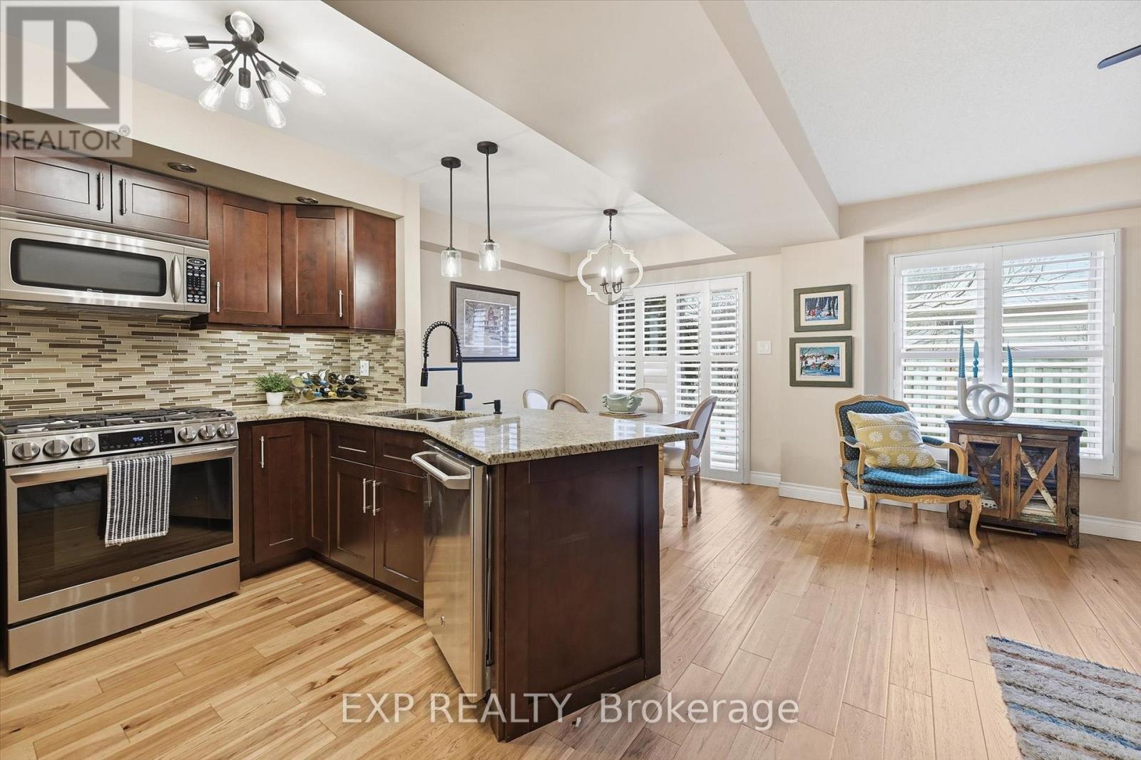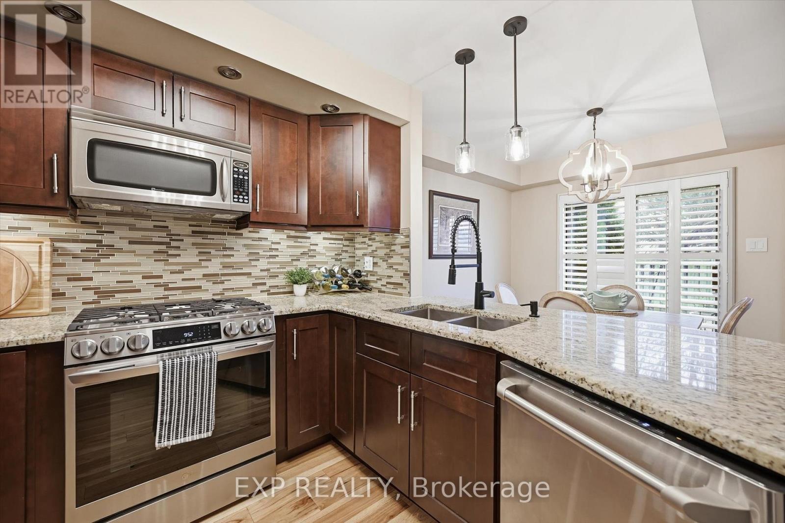 Welcome to this 3-bedroom, 3-bathroom end-unit condo townhouse tucked into a quiet, private corner of the sought-after Westbrook Village community in west Grimsby. With extra privacy and a bright, open layout, this home offers comfortable living in a fantastic family-friendly location.The main level features hardwood flooring and a modern kitchen with granite countertops, upgraded sink and faucet, stainless steel appliances, and a gas stove. The dining area opens to a beautifully landscaped backyard with a patio, perfect for summer BBQs and outdoor relaxation.Upstairs you'll find three comfortable bedrooms, including a spacious primary suite with two closets, both featuring custom organizers. A second-floor laundry room adds everyday convenience, along with a well-appointed 4-piece bathroom.The recently renovated finished basement expands the living space with vinyl plank flooring, LED pot lights, and a spa-inspired 3-piece bathroom-ideal for a home office, family room, or guest retreat.Additional features include a stamped concrete front walkway, natural gas BBQ hookup, and an owned hot water tank.This location is hard to beat-just a 1-minute walk to Chestnut Park and Aspen Park, minutes to Blessed Trinity Catholic Secondary School, and the Peach King Community Centre, offering a gym, indoor walking track, and outdoor splash pad. You're also just a short drive to downtown Grimsby, lakefront trails, wineries, and the QEW, making commuting easy while enjoying the charm of Niagara living.A wonderful opportunity for families, professionals, and commuters looking for comfort, privacy, and convenience. (id:64974)