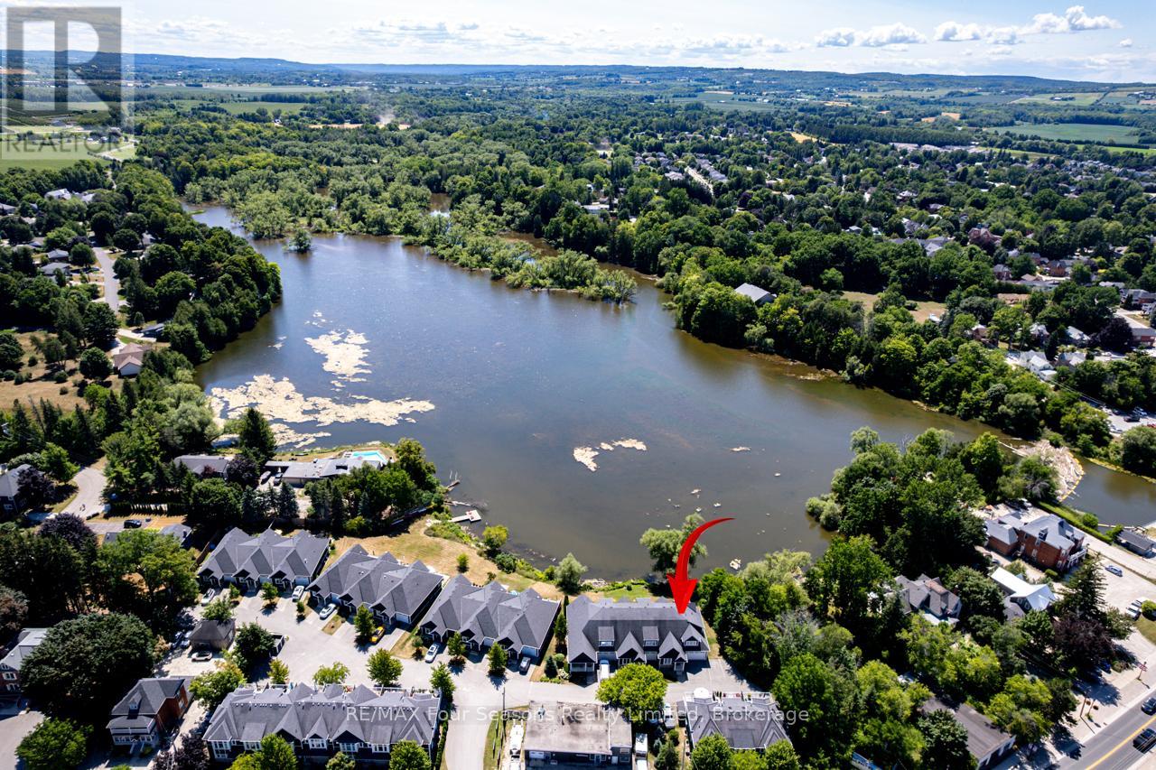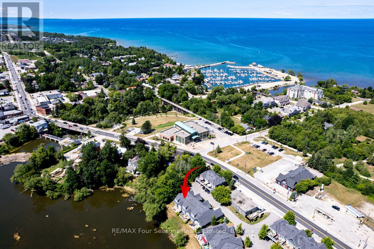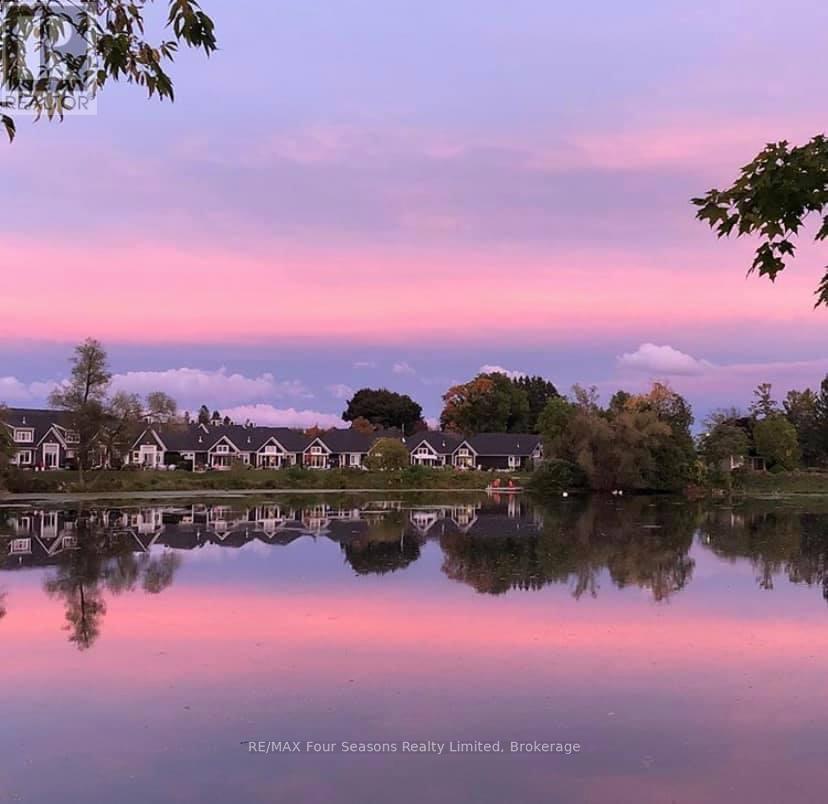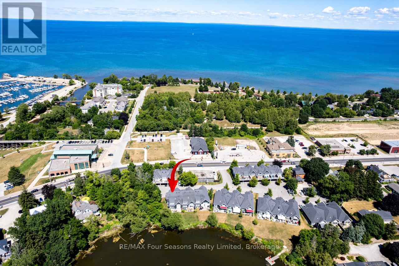 THE MILL POND in the heart of Thornbury presents a great waterfront opportunity. This 4 bedroom bungaloft home is the best location in this small enclave of homes where nature meets peaceful contemporary living. This million dollar unobstructed WATERFRONT VIEW offers peace and tranquility while watching the activities of swans, ducks, egrets, beaver, otters and more. Yet only a few minutes walk to the main street of Thornbury with it's boutique shops, art galleries and restaurants. Stroll down to the marina and Bayview Park or the fish ladder on the damn. For skiers it's only a 5 minute drive to Georgian Peaks and 15 minutes to Blue Mountain and other private ski clubs. This end unit bungaloft boasts the best location on the MILLPOND and the largest floorplan with a double car garage. MAIN FLOOR PRIMARY bedroom with ensuite and heated floors has large windows to take in the view of the water. A further bedroom on the main level can be an office or den. Open plan main floor living with beautiful hemlock flooring, a custom kitchen with granite counters, stainless steel appliances and island bar. Dining area and living room share soaring cathedral ceilings and a gas fireplace for those cold winter evenings. French doors open to the patio area with beautifully landscaped gardens. The lofted second level offers two further bedrooms, a large four piece bathroom and a sitting area overlooking the main level. Thoughtfully planned and constructed with extra insulation in the living room and master bedroom walls, energy efficient windows, HRV system, on demand hot water heater, The attached double car garage is insulated and has inside entry door. A shared dock offers you a place to watch beautiful s a place sunrises as well as access for your kayaks/canoes. On site rack for your canoes/kayaks. (id:64974)