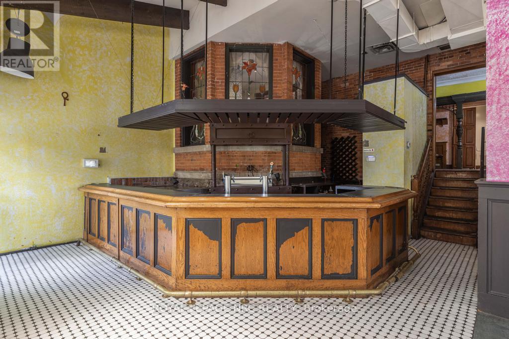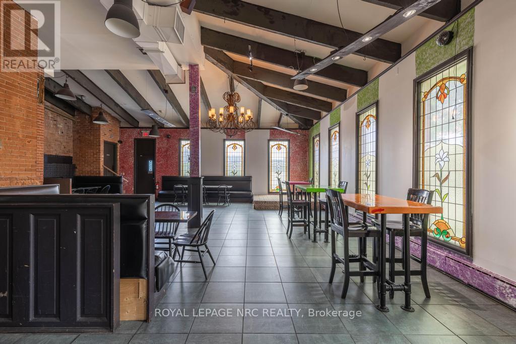 If you have been waiting for a downtown asset with scale, flexibility, and real upside, this is the one for you! Zoned M2 and located in the heart of downtown, this high-visibility property offers approximately 10,835 sq ft above-grade plus unfinished basement space. The main floor is currently configured with 2 commercial kitchens, a full bar, dining areas, and expansive open zones. Multiple entrances support strategic reconfiguration, including the potential to divide the space into 3 micro commercial units, opening the door to diversified revenue streams and stronger long-term stability for tenants and ownership alike. The second floor includes 3 residential units, with potential to add a 4th unit on the main level, strengthening the overall income profile. The existing mixed-use layout provides opportunities for immediate revenue while leaving room to optimize and intensify over time. From a systems standpoint, the infrastructure is already in place to support commercial-scale operations. The building is well-equipped with 400amp service to the commercial space and 200amp to the residential units. It also includes an industrial water tank under 10 years old, a water filtration system, approximately 1.5 to 2-inch water feed, 2 grease traps, basement chillers for pop guns, and a bar keg setup. Fire safety measures are in place with a fire safety plan, suppression systems, interconnected fire pulls, and dedicated exits for each residential unit. Additionally, 7 on-site parking spaces plus ample nearby public parking further support commercial and residential use. To support the next stage of development or repositioning, the seller is open to a 3-year VTB. The rare combination of zoning, square footage, and central positioning creates multiple avenues for income today and development potential for tomorrow. (id:64974)