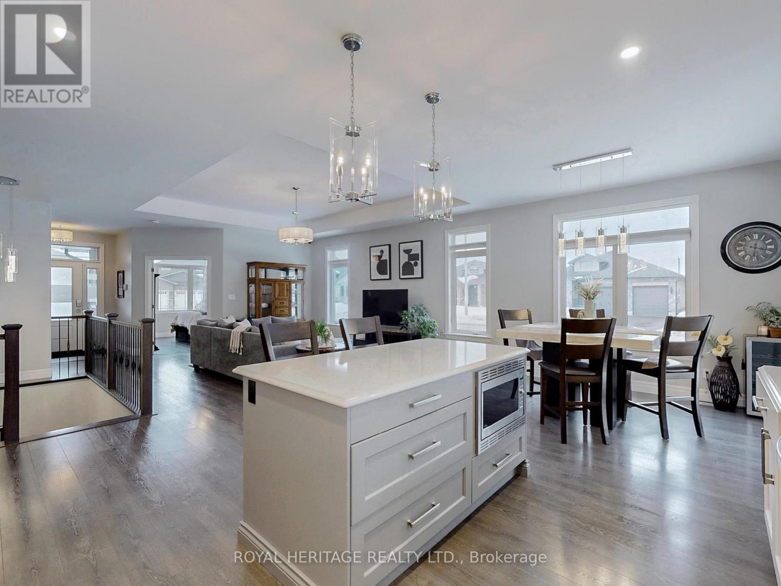 Built by Staikos Homes (2020), this exceptional bungalow offers over 3,000 sq ft of professionally finished living space on a premium corner lot in desirable Appledene Park Estates. Featuring five spacious bedrooms, this home is ideal for families seeking both function and style. The main level showcases a stunning kitchen complete with stainless steel appliances, quartz countertops, tile backsplash, and a convenient pot filler - all designed with a luxury feel and high-end finishes throughout. The fully finished lower level is built for entertaining and everyday living, offering a custom bar, expansive recreation area, dedicated exercise room, and abundant storage space. Step outside to enjoy the large yard with a stamped concrete patio and new hot tub - perfect for relaxing or hosting. Located just steps from the park and very lightly lived in, this home shows beautifully and offers turnkey comfort in a sought-after community. (id:64974)