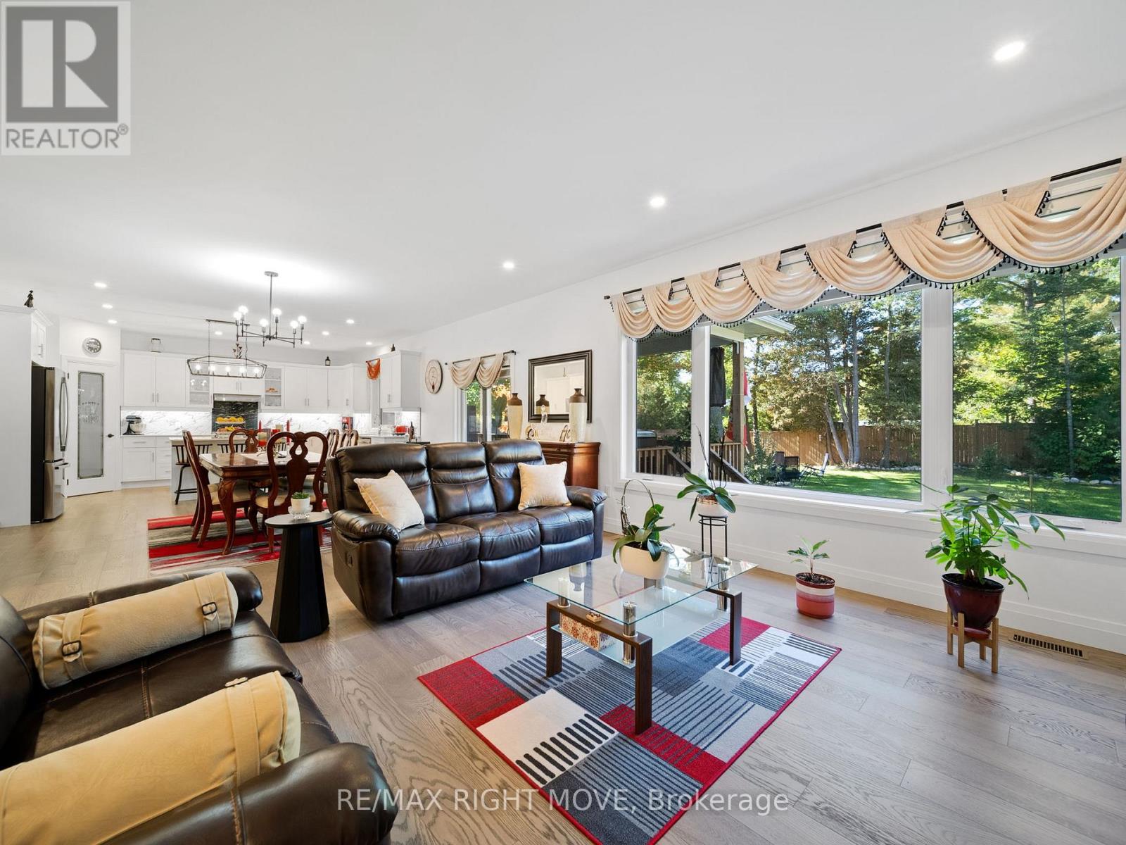 Welcome to this stunning, sprawling bungalow nestled in the heart of Tiny Township, where serenity meets lifestyle.Offering 1,971sqft of main floor living, this home is perfect for those seeking the ease and comfort of single floor living with minimal stairs, making it an ideal fit for downsizers and those looking to simplify without sacrificing space. Yet with room to spare, it equally suits a growing or large family looking for room to breathe.The open-concept kitchen, dining, and living area is filled with an abundance of natural light and flows seamlessly through sliding doors to a very generously sized covered porch, perfect for morning coffee or evening entertaining. The kitchen is a true showpiece, featuring stunning countertops, a beautiful backsplash, and a walk-in pantry that makes both everyday living and entertaining a pleasure. The main floor features 3 bedrooms and 2.5 bathrooms, including a primary retreat complete with a walk-in closet and luxurious 5-piece ensuite. Main floor laundry and an attached 2-car garage keep everyday living effortless through every season. Step outside to a fully fenced yard, ideal for kids, pets, and privacy.The fully finished basement of approximately 1,460sqft expands your options beautifully. A massive rec room and family room anchors the space, alongside a flex room ideal for a home office or home gym, a 3-piece bathroom, and an additional prep and entertaining area that makes hosting large gatherings a breeze.All of this is set in the coveted Tiny Township lifestyle, steps to walking trails, sandy beaches, and the sparkling shores of Georgian Bay. Whether you are a downsizer, a growing family, or simply someone who appreciates the good life, this one delivers. (id:64974)