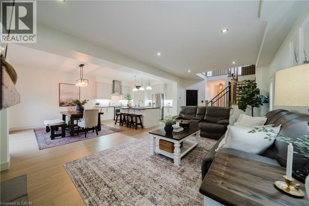 Step into this stunning, designer-inspired home where exceptional craftsmanship and thoughtful design come together to create a warm and inviting aesthetic. From the moment you enter, you’ll be captivated by the unparalleled finishes and cohesive style throughout. The living room is anchored by a striking stone gas fireplace, offering both comfort and a beautiful focal point for everyday living and entertaining. The fully renovated kitchen is equally impressive, featuring an oversized island and a custom walk-in pantry—perfect for both functionality and style. A true standout feature of the home is the modern railing, a showstopping architectural element that can be admired from multiple vantage points, adding to the home’s open and airy feel. Sleek, contemporary flooring flows seamlessly throughout the entire home, offering a completely carpet-free living experience. With 2,260 sq ft of well-designed living space, this home offers 3 spacious bedrooms with the potential for a 4th (via a converted upper-level living area), 3 bathrooms, and the convenience of second-floor laundry. Two separate living areas provide flexibility for families of all sizes, while California shutters throughout add both elegance and privacy. The unfinished basement is already fully studded and insulated, complete with oversized windows and a bathroom rough-in—offering endless potential to customize and expand your living space. Set on a 40’ frontage lot, the exterior is equally impressive, featuring an oversized rear sliding door, a wide driveway with parking for four vehicles, and a 2-car garage with soaring 12’ ceilings and EV charger. Located in a quiet, family-friendly neighbourhood, this home offers the perfect balance of peaceful small-town living with convenient access to nearby city amenities. This home is truly a work of art—one that must be experienced in person to fully appreciate its design, quality, and attention to detail. (id:64974)