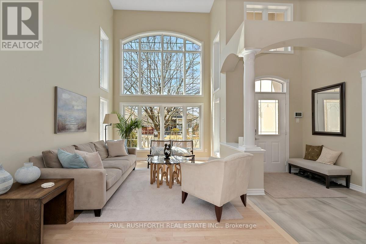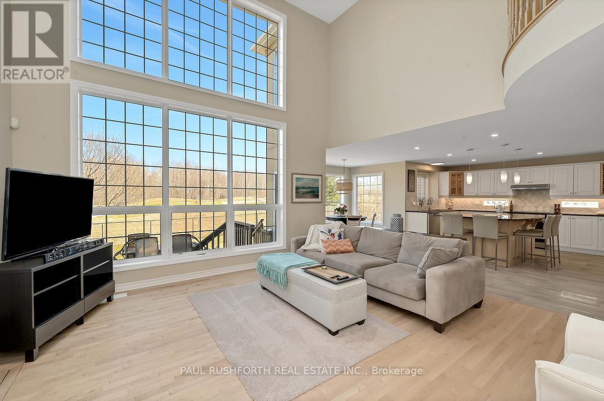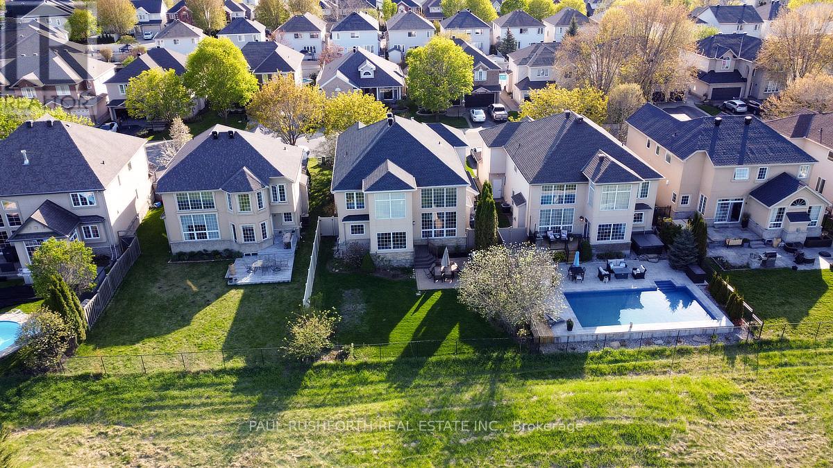 Located in the sought after Stonebridge community, backing onto the back nine of the golf course and surrounded by parks, walking paths, schools and the amenities of Barrhaven, this home offers a setting that combines privacy with an active, established neighbourhood. This extended Muirfield model is designed to maximize light and views, the home features dramatic two storey windows in both the living room and family room, creating a striking architectural presence while framing the landscape beyond. The main level offers hardwood flooring, well balanced living spaces including a dedicated office, formal and casual areas, and an updated kitchen with granite counters and a bright eating area wrapped in windows on three sides. A main level laundry and mud room with access to the double garage adds everyday convenience. Upstairs, the primary suite is set apart with a beautiful sitting area overlooking the course, a walk in closet, and a spa like ensuite with soaker tub and walk in shower, creating a true retreat within the home. The lower level has been professionally finished with 9 foot ceilings and provides a large open rec room, additional bedroom, full bathroom and ample storage. Extensively updated and thoughtfully designed, this is a home where space, light and setting come together in a way that is rarely offered. (id:64974)