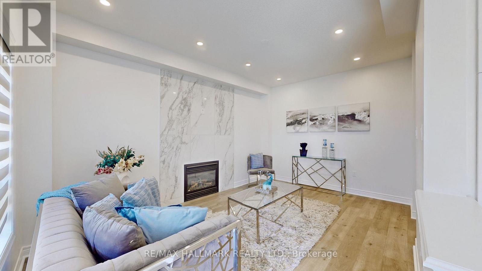 Welcome to 22 Bostock Drive in Simcoe Landing. This beautifully renovated, all-brick home features over $150,000 in professional upgrades and offers a true like-new feel. Bright and spacious, the home boasts approximately 3,000 sq. ft. of functional living space with elegant finishes throughout, including 9-ft ceilings, new flooring, large ceramic tiles with custom vents, modern lighting, and stylish zebra blinds throughout. The stunning gourmet kitchen showcases premium soft-close cabinetry, waterfall quartz countertops with a matching backsplash, brand-new stainless steel appliances, and an open breakfast area overlooking the backyard patio-perfect for everyday living and entertaining. Both the living room and finished basement feature striking stone accent walls with large slab tiles and sleek electric fireplaces, creating warm and inviting spaces for gatherings. Elegant modern oak stairs lead to four spacious bedrooms, including a generous primary suite with double-door entry, a walk-in closet, and a 4-piece ensuite. Enjoy the convenience of a second-floor laundry room equipped with a brand-new Samsung washer and dryer. The newly finished basement adds exceptional versatility, offering a large guest bedroom, an additional family room, and a new full bathroom with a glass shower. Outside, the wide front porch overlooks beautifully landscaped interlocking stone, enhanced by new exterior lighting and ample parking for up to six vehicles. Ideally located across from CGS Park, featuring a playground and splash pad, and just minutes from Highway 404, Lake Simcoe, schools, the new MURC community centre, shopping, and more. (id:64974)