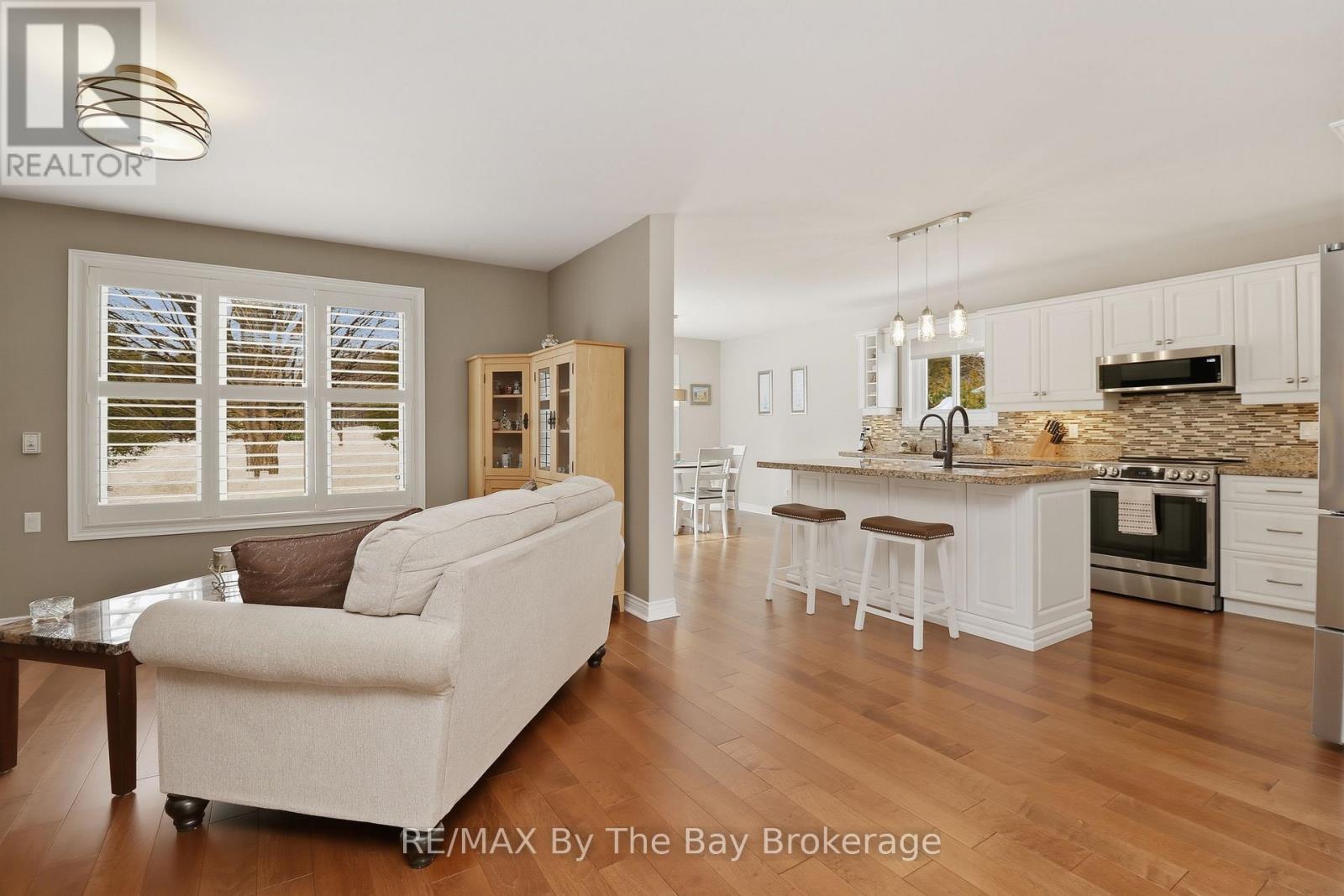 Golf course home in Marlwood Estates, Wasaga Beach located on a quiet cul-de-sac with finished basement and deck overlooking the course. Imagine waking up to golf course views right in your backyard.This custom-built home backing onto the third fairway of Marlwood Golf Course has over 3,000 square feet of living space and has been meticulously maintained from top to bottom.Move-in ready home with 5 star curb appeal and many updates including hardwood flooring throughout the main floor, upgraded kitchen and bathrooms, sprinkler system and a composite deck with peaceful golf course views.The bright open-concept living room and eat-in kitchen is filled with natural light. A walkout leads to the spacious deck, perfect for relaxing, entertaining or enjoying summer barbecues while overlooking the course.A separate dining room just off the main living area is ideal for family dinners or special occasions and could also work well as a home office or sitting room. The primary bedroom features a beautiful 5-piece ensuite with a glass shower and separate tub plus another walk out ot the deck, ideal for your morning coffee.. The second main floor bedroom sits beside another updated bathroom, offering comfort and convenience for guests or family.Do you need more space? The finished basement provides excellent extra living space with a wet bar, recreation area, cozy TV space, third bedroom, bathroom, home office, and large storage rooms.Located just minutes from the sandy shores of Wasaga Beach and close to Stonebridge Town Centre with shopping, restaurants, Walmart, and everyday amenities.A wonderful opportunity to enjoy golf course living in a quiet, established community. (id:64974)