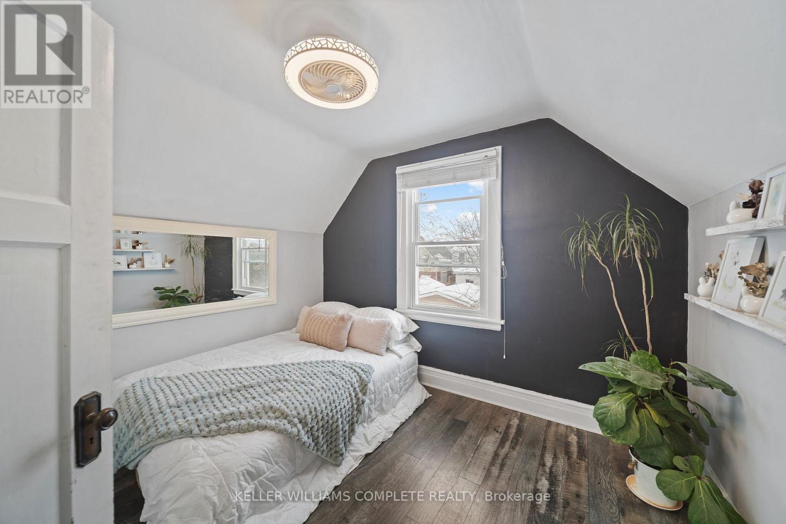 Welcome to 22 Cope Street, a charming 1.5-storey brick home tucked into a quiet, central Hamilton neighbourhood with quick access to the Red Hill Valley Parkway for easy commuting across the city, the GTA, or Niagara. This warm and inviting home blends timeless character with thoughtful modern updates. The upper level features two spacious bedrooms with deep closets and a full newly updated bathroom. On the main floor, you're welcomed from the covered front porch into bright living and dining spaces filled with original trim, a decorative brick fireplace, and an easy, functional layout. The kitchen offers stainless steel appliances, a stone backsplash, and butcher block counters, connecting seamlessly to a rear mudroom and a versatile additional main-floor room that works beautifully as a playroom, office, or third bedroom. Downstairs, the fully finished basement provides excellent bonus living space, laundry and storage, plus an added two-piece bath. Outside, the backyard is private and well cared for, featuring newer fencing, a concrete patio, and updated gates, perfect for relaxing, entertaining, or enjoying a bit of greenery in the city. Significant improvements have been completed throughout ownership, with over $25,000 in recent updates including sewer lining, back-flow protection, basement flooring and levelling, plumbing upgrades, a beautifully renovated bathroom, and more, offering peace of mind for the next homeowner. Located close to parks, trails, schools, and everyday amenities, 22 Cope Street is a wonderful opportunity to enjoy a move-in-ready home with character, comfort, and long-term value in the heart of Hamilton. (id:64974)
