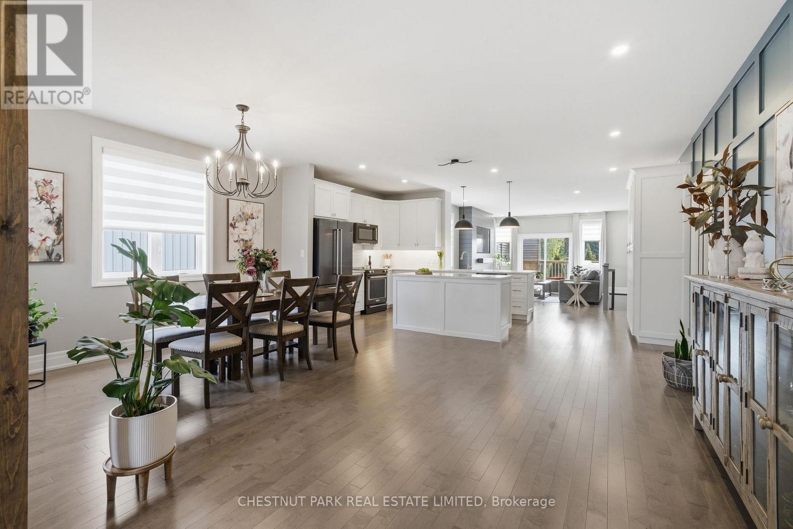 A refined take on modern bungalow living, this Picton residence balances clean architectural lines with a warm, livable sensibility. From the moment you enter, the home reveals a thoughtful composition of space where hardwood flooring, soft natural light, and subtle detailing create an atmosphere that feels both elevated and at ease. At the heart of the home, the kitchen anchors daily life with quiet confidence. Generous in scale, and balanced effortlessly between the dining and living areas, allowing each space to feel distinct yet connected. A contemporary electric fireplace defines the living room, while expansive windows draw the eye outward, hinting at the depth of the property beyond. The main floor offers a well-considered layout, with the primary suite set apart as a private retreat, complete with ensuite and walk-in closet. One additional bedroom provides flexibility for guests, work-from-home, or growing families all supported by a practical yet refined sense of flow. Below, the finished lower level extends the experience of the home introducing a spacious recreation area, additional bedroom, and room to adapt over time, whether for entertaining, extended family, or creative pursuits. Outdoors, the deep lot becomes an extension of the living space, with a sense of openness rarely found in town. There is room here to garden, gather, or simply enjoy the rhythm of The County. Positioned within walking distance to Picton's amenities, yet offering a sense of retreat, the setting strikes a rare balance between connection and calm. A home designed for ease, flexibility, and understated style, an inviting opportunity to settle into The County at your own pace. (id:64974)