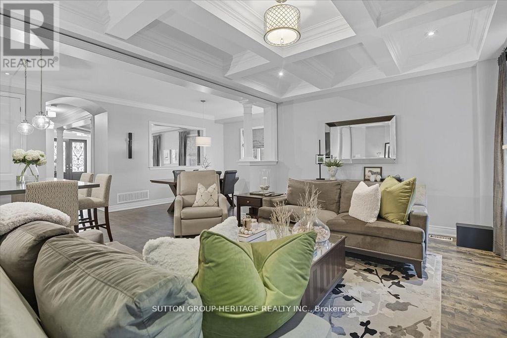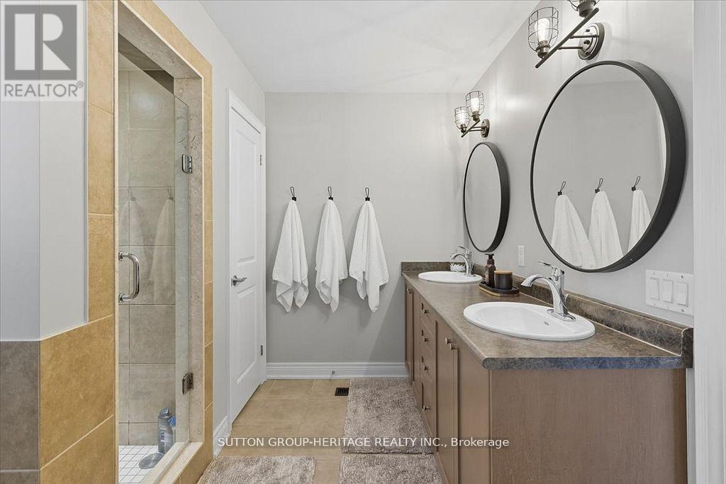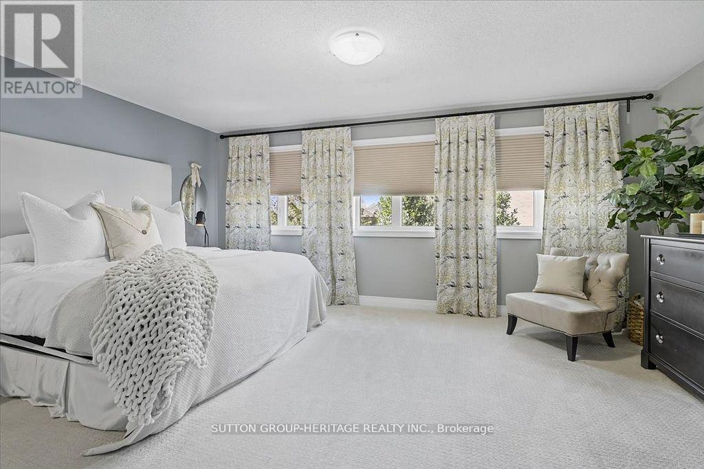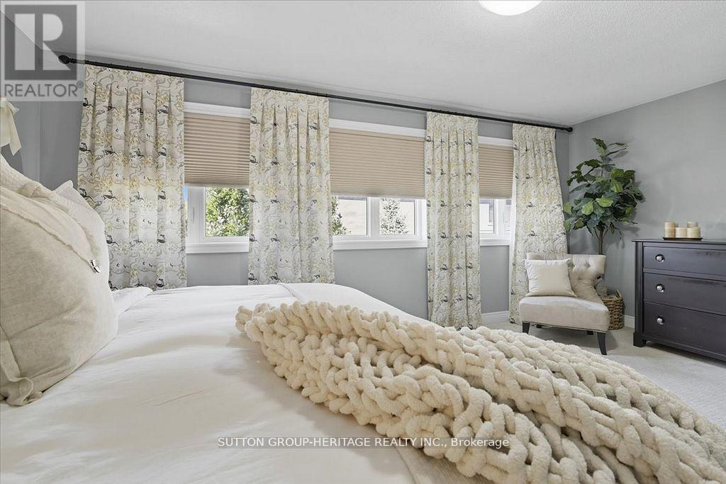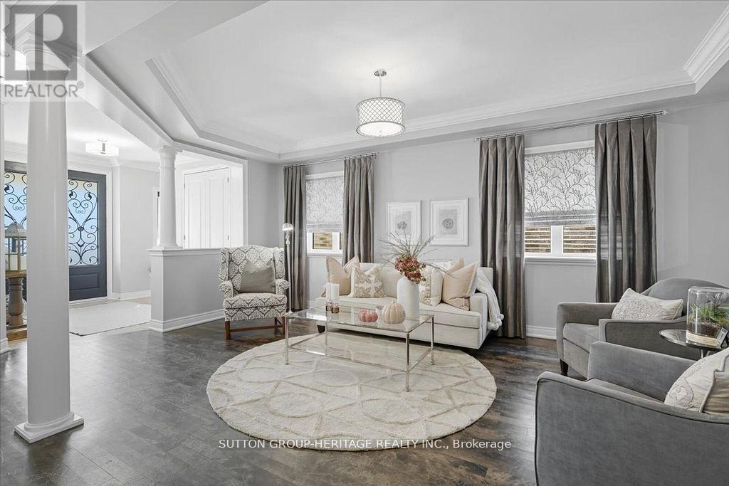 Beautifully crafted Highmark Home - four-bedroom, four-bathroom residence in one of Whitby's most exclusive neighbourhoods. Curb appeal is undeniable with a timeless brick and stone exterior, an asphalt driveway framed with tumbled stone pavers, new garage doors, and thoughtfully designed perennial gardens enhanced by maturing trees including columnar oak, spruce, and a Japanese maple. The fully fenced backyard is ideal for entertaining with a custom deck, pergola, and shed, while natural gas connections for both a barbecue and fire table make it the perfect space to gather year-round. An in-ground sprinkler system ensures the grounds are easy to maintain. Inside, the home showcases elegant details and functional design. The main floor features hardwood flooring throughout, extending up the hardwood staircase and across the upper hallway. Soaring nine-foot ceilings and extended eight-foot doors and doorways enhance the sense of space, while coffered ceilings in the living room and family room add architectural character. The kitchen is both stylish and practical, complete with quartz countertops, pantry, double sink with garburator, pot lights, pendant lighting, and a breakfast bar. The mudroom, with direct access to the garage, offers excellent storage and organization for busy households. Upstairs, the primary suite provides a private retreat with a large walk-in closet and a luxurious five-piece ensuite. The second bedroom includes its own four-piece ensuite, while the third and fourth bedrooms share a spacious five-piece Jack-and-Jill bath. Modern conveniences include electric vehicle readiness with a 240V outlet and breaker space for a level two charger. Located close to Highway 407 for easy commuting, and minutes to schools, parks, and shopping, this home offers the perfect blend of luxury, convenience, and community living. Detailed features room by room is attached. (id:64974)