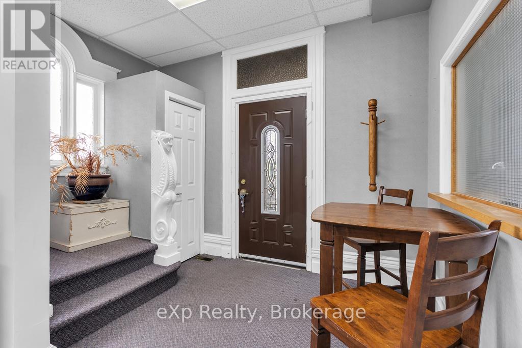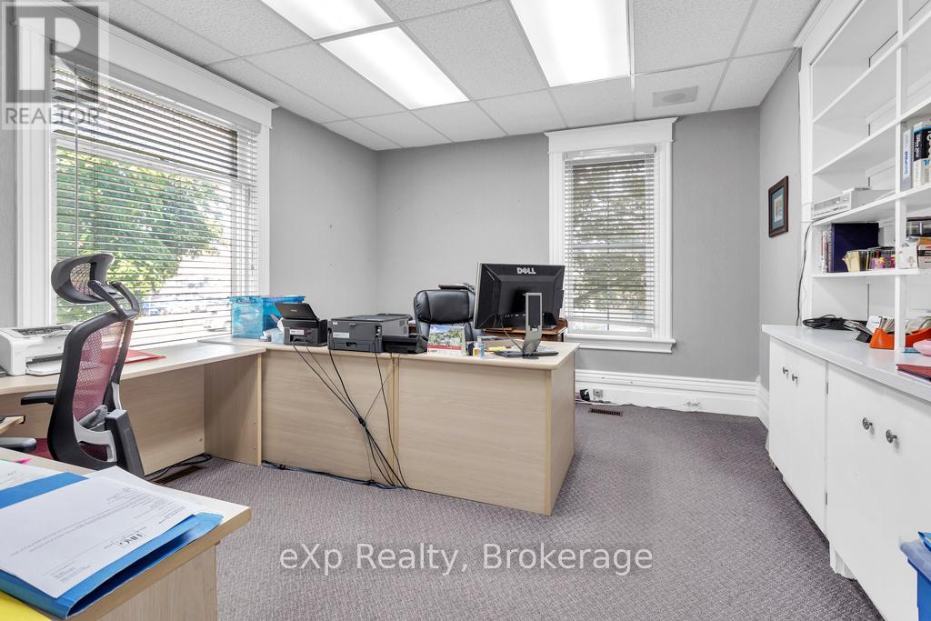 This professional office building in the heart of Downtown Tillsonburg presents exceptional potential for both investors and owner-users. Located directly across from Starbucks on the east side of Harvey Street, the property enjoys excellent foot and vehicle traffic, ensuring peak visibility in a growing and vibrant commercial district. Zoned Central Commercial, this versatile property supports a wide range of permitted uses including retail, professional office, personal service shops, clinics, restaurants, and mixed residential-commercial, making it ideal for a variety of business models. Full list of permitted uses available upon request. The solid three-level brick building features over 3,000 square feet of space, including: Main floor: Professional office layout with central air (2024) offering character and charm in many of the details. Upper two levels: A spacious apartment with 3 bedrooms and 2 bathrooms, offering flexible live/work or dual-rental income potential. Additional property highlights include: Steel Tile Roof for long-term durability, Lawn sprinkler system for easy maintenance, 16ft x 12ft fire vault, Classic brick exterior with timeless curb appeal. With strong zoning, an unbeatable central location, and income-generating potential, 22 Harvey Street is a standout opportunity in one of Oxford County's fastest-growing communities! (id:64974)