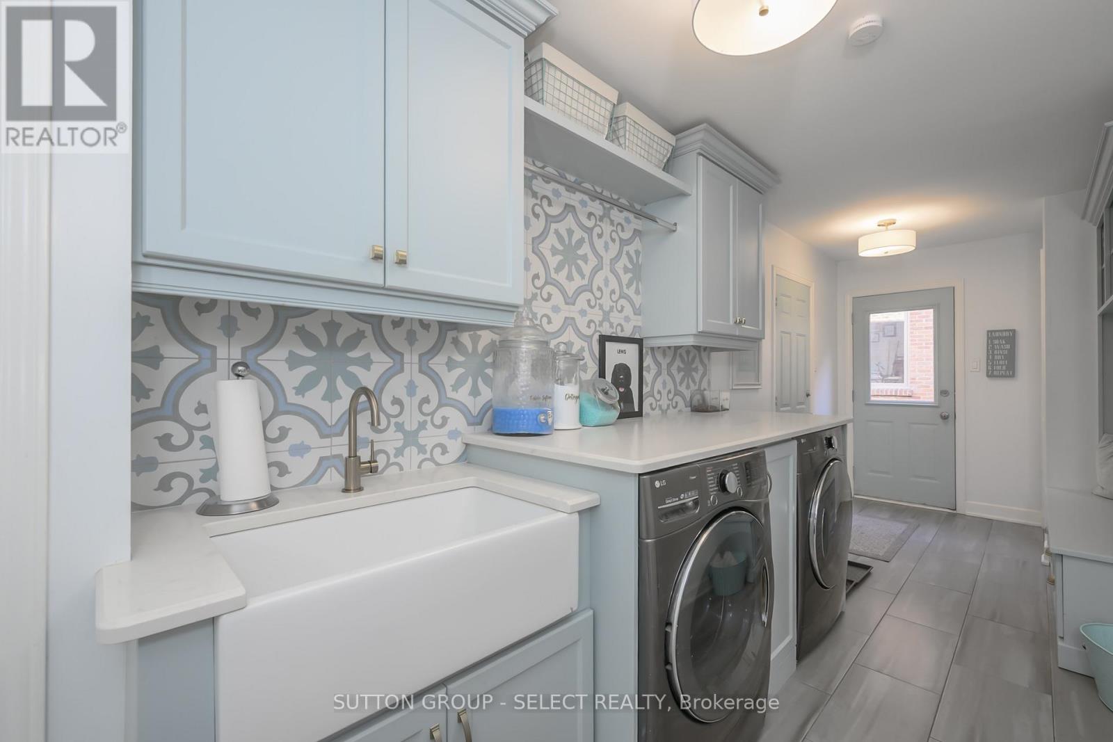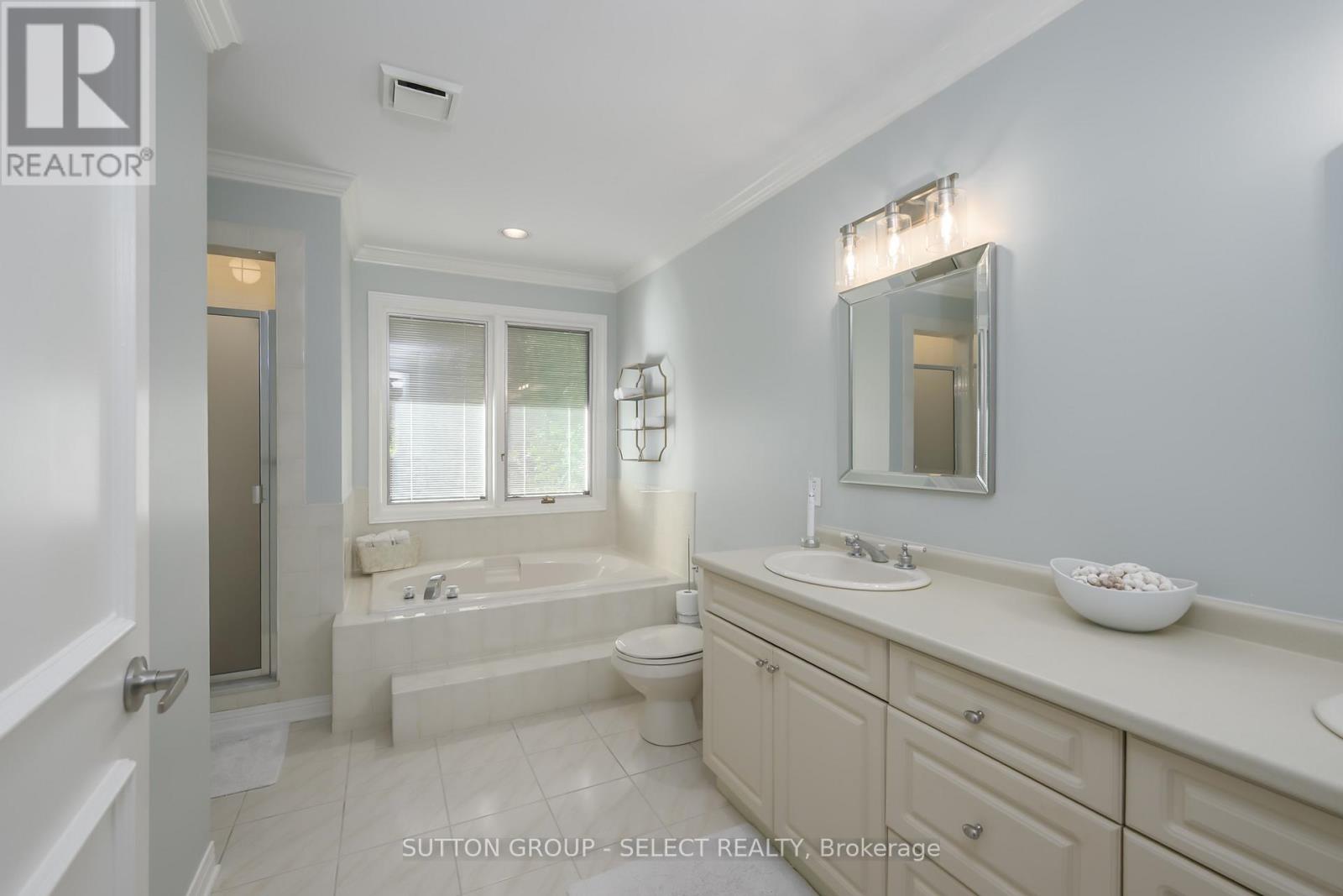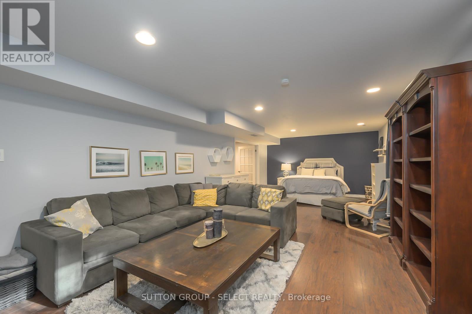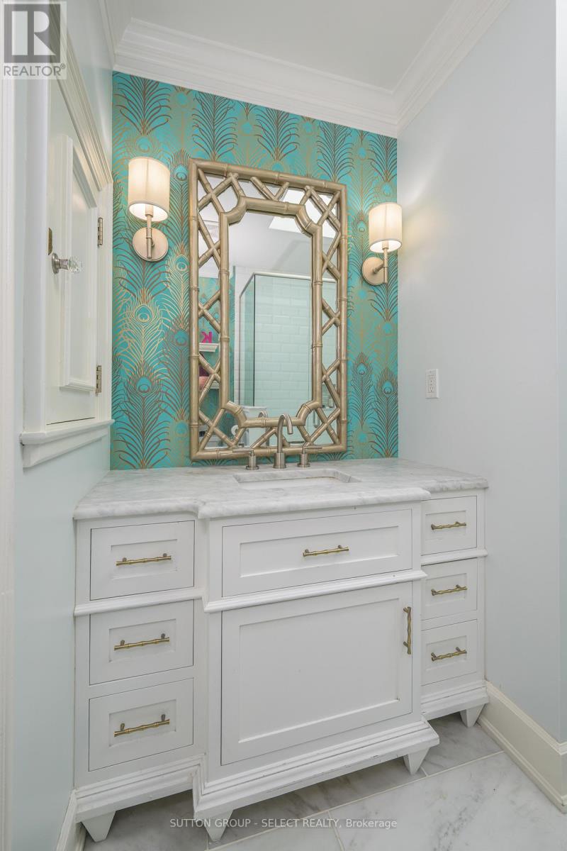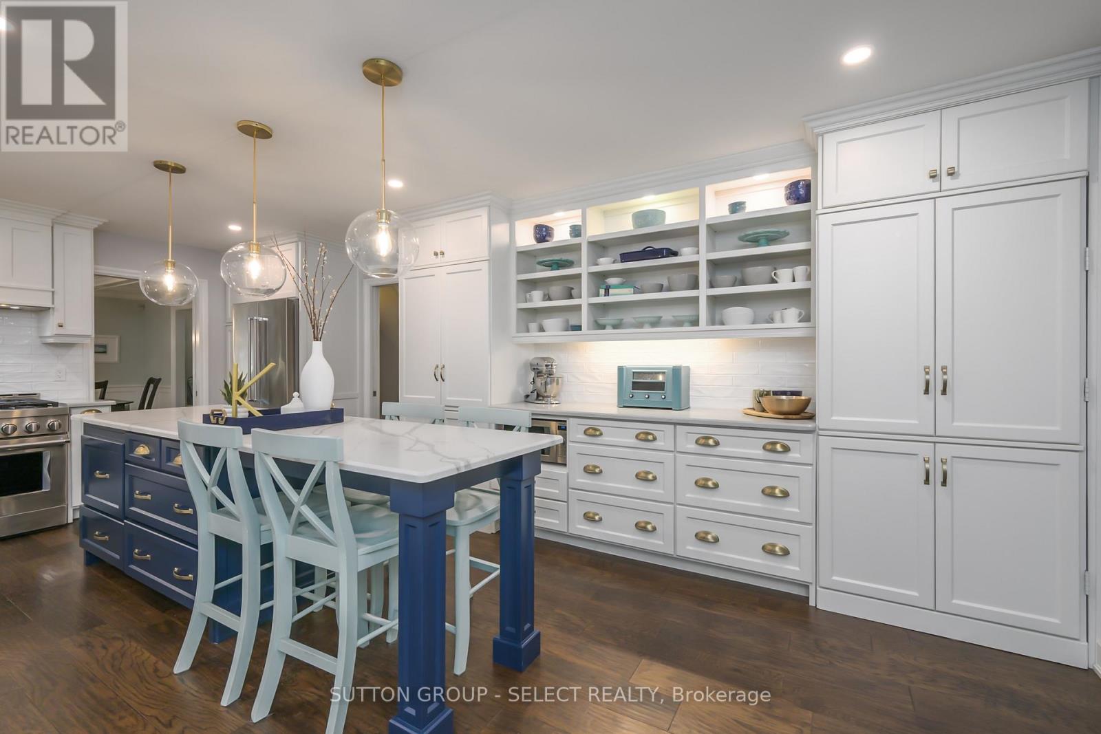 Offered for only the second time since its completion in 1986, 22 Mapleton Place is a once in a lifetime property. Situated in one of London's most desirable enclaves, this 4+1 bed home, with separate entry and in-law suite potential, has been fully renovated to the highest standard. Throughout the home, you will find extensive custom millwork, including crown moulding, wainscoting and several built-in units on each floor. Embracing the classic centre hall plan, you will find the office and formal living room off of the grand foyer. In the dining room, there is a coffered ceiling and doors leading to the rear deck. Pocket doors lead you into the expansive custom kitchen with quartz countertops, gas range, custom counter deep fridge as well as 2 dishwashers (one hidden integrated drawer system), hidden pantry and coffee/ bar station. The laundry is complete with convenient chute, quartz counters and built in mudroom cabinetry. Completing the main floor is a great room with cozy gas fireplace, clad in grass cloth wallpaper, and reclaimed 120 year old barn board ceilings from a farm in Huron County. On the second level, there are 4 good sized bedrooms, including the primary, with features an updated 5-piece bathroom and walk-in closet. The other 3 bedrooms share a guest bath with marble and subway tile, and frameless glass shower. In the lower level there are an additional 2 bonus rooms (including a bar room with sink) and an additional renovated bath with frameless glass and marble flooring. Private stairwell and separate entrance. All of this backing onto Warbler Woods with the absolute privacy of landscaping, new deck and massive pond with waterfall and mature Japanese maple tree. Upgrades include roof (2022), garage doors (2022), Kitchen (2022), all baths (2018-2022) engineered hickory and maple flooring throughout, custom millwork and built-ins, reclaimed ceiling in great room, updated electrical and plumbing (id:64974)