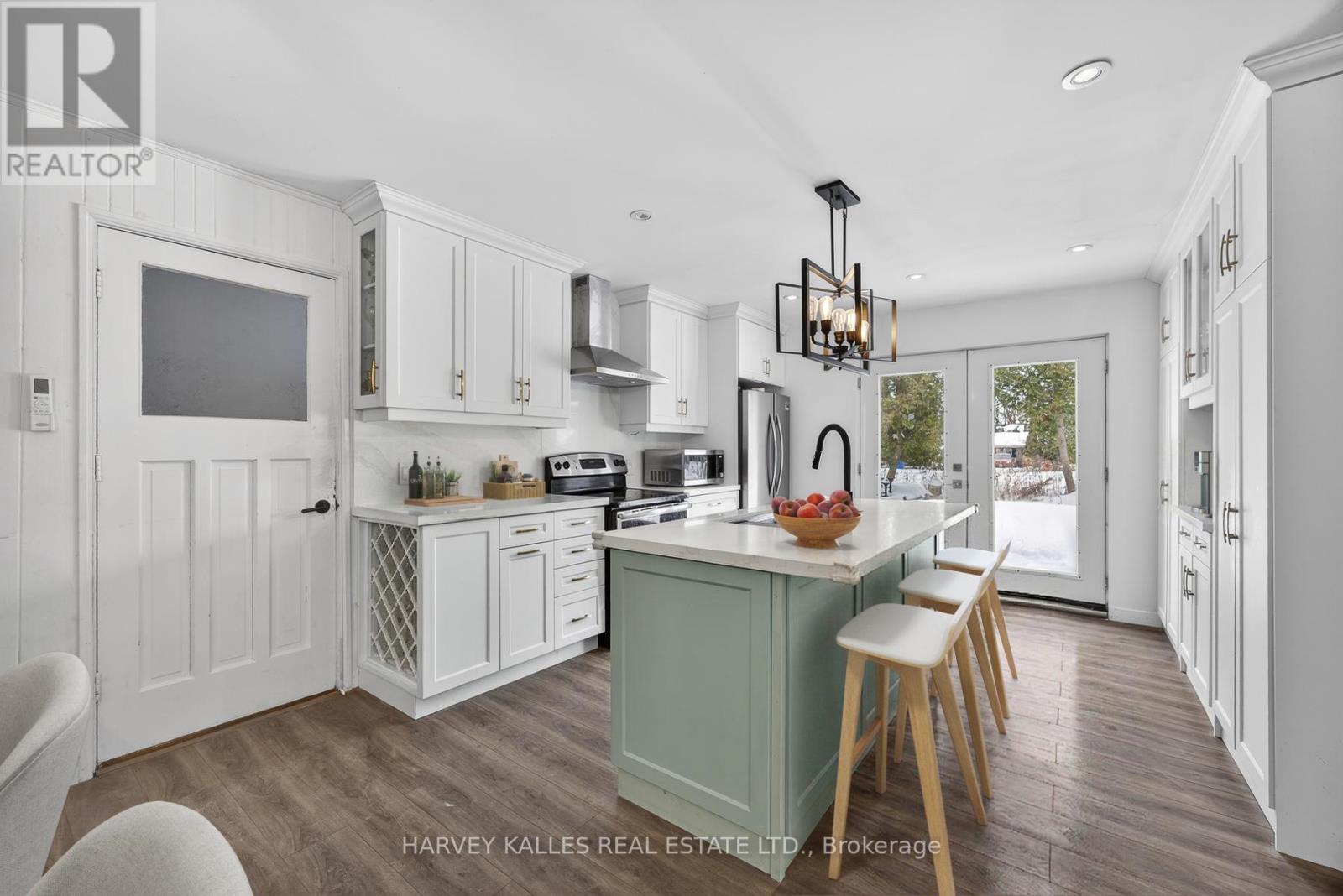 Fabulous 3-bedroom two bathroom home, completely gutted and beautifully renovated throughout. Featuring a modern quartz kitchen with seamless backsplash, double undermount sink, built-in dishwasher, glass-top stove, and a one-year-old fridge/freezer. Thoughtfully designed with built-in spice drawers, a charming coffee nook, and integrated garbage and recycling bins. Pot lights illuminate the home, complemented by large picture windows that fill the space with an abundance of natural light.Quality workmanship is evident throughout. The primary bedroom is surrounded by numerous windows, creating a bright and airy retreat. The spacious bathroom offers an oversized tub, delivering spa-like comfort and relaxation.Step outside to a captivating backyard oasis with an expansive deck - perfect for entertaining or unwinding.Situated on a quiet dead-end street, just minutes to the corner park, Lake Simcoe beaches, marina, Pines of Georgina Golf Course, schools, and all amenities. This little Shangri-La truly feels like home. (id:64974)