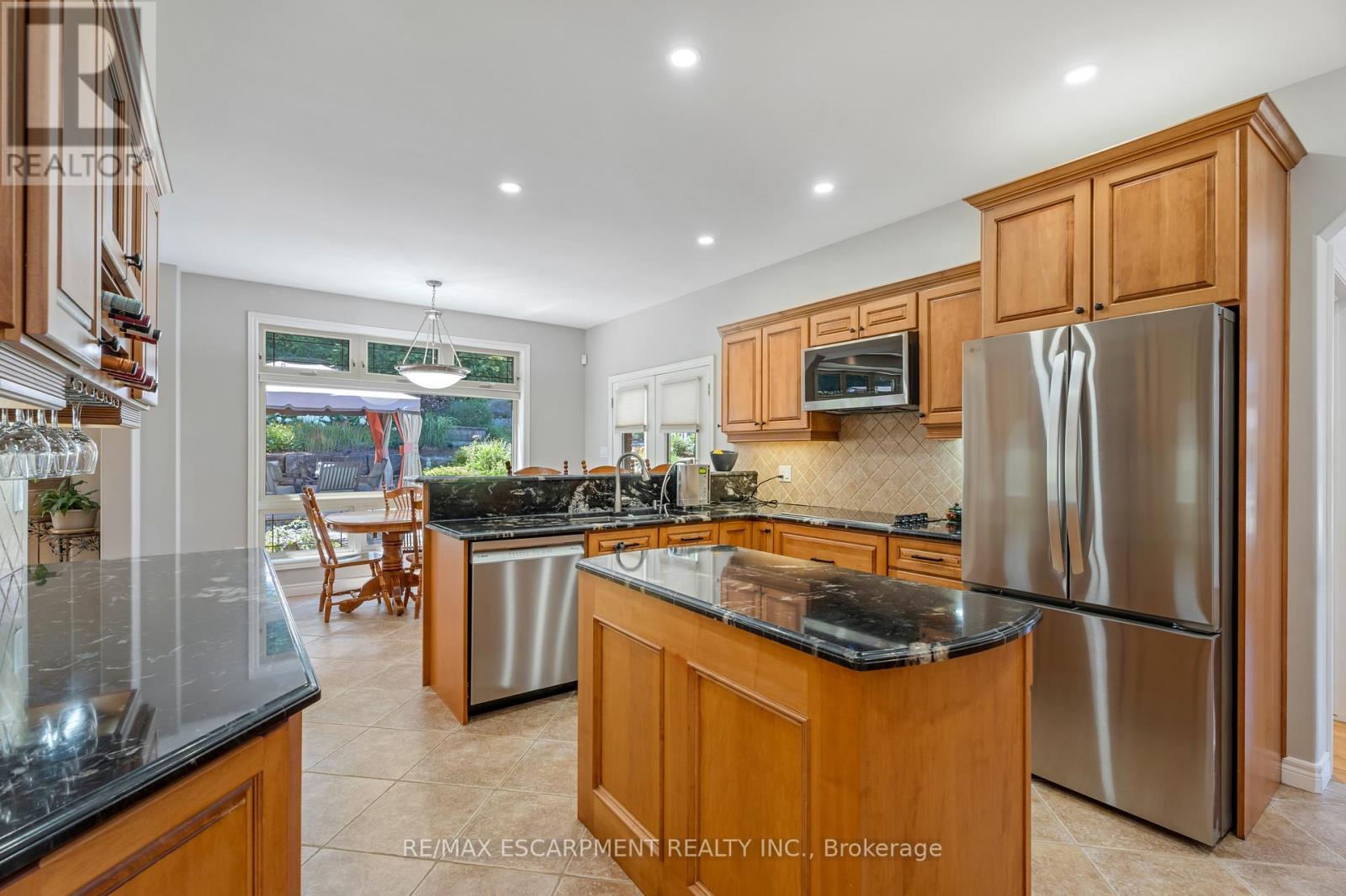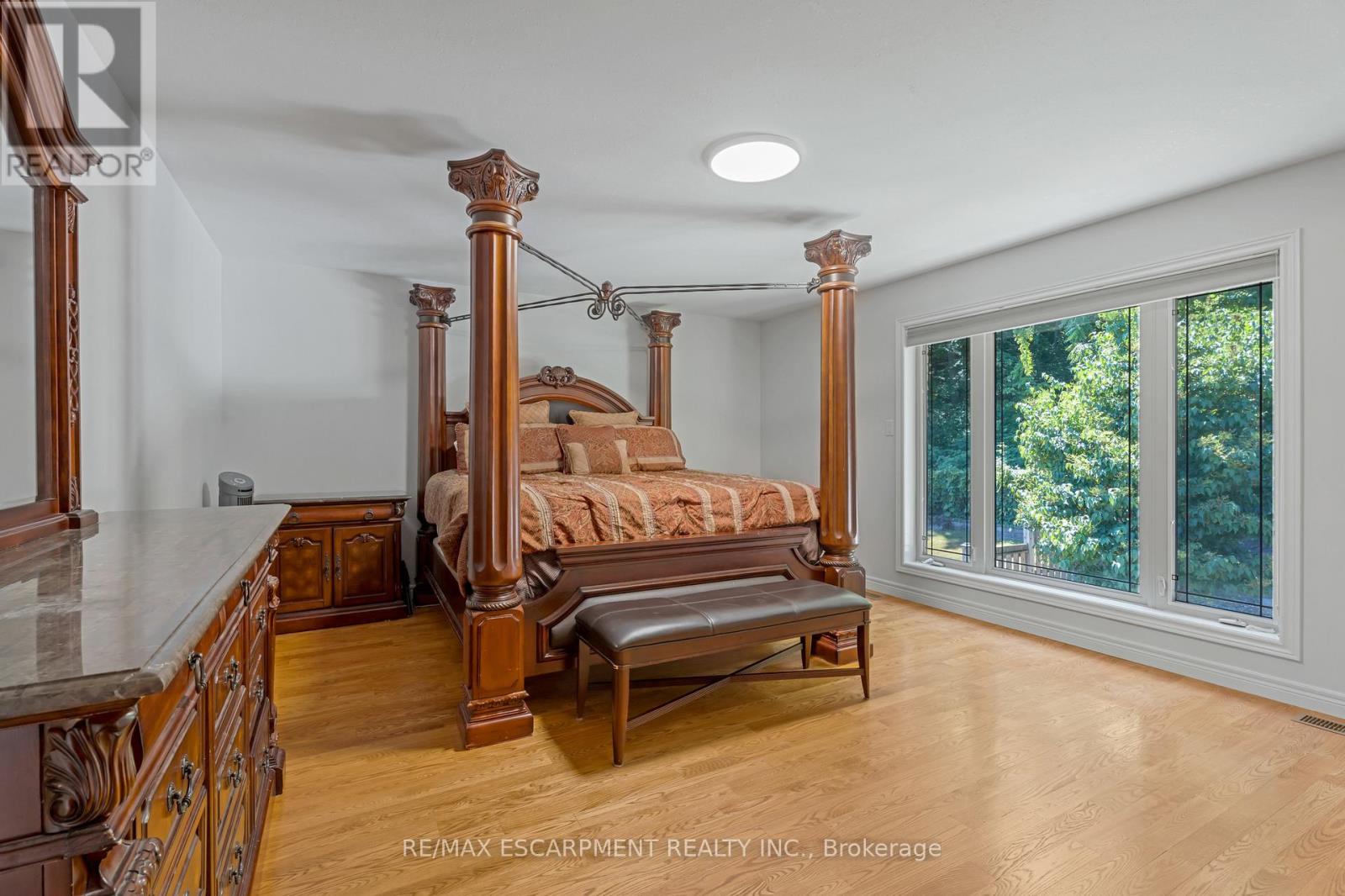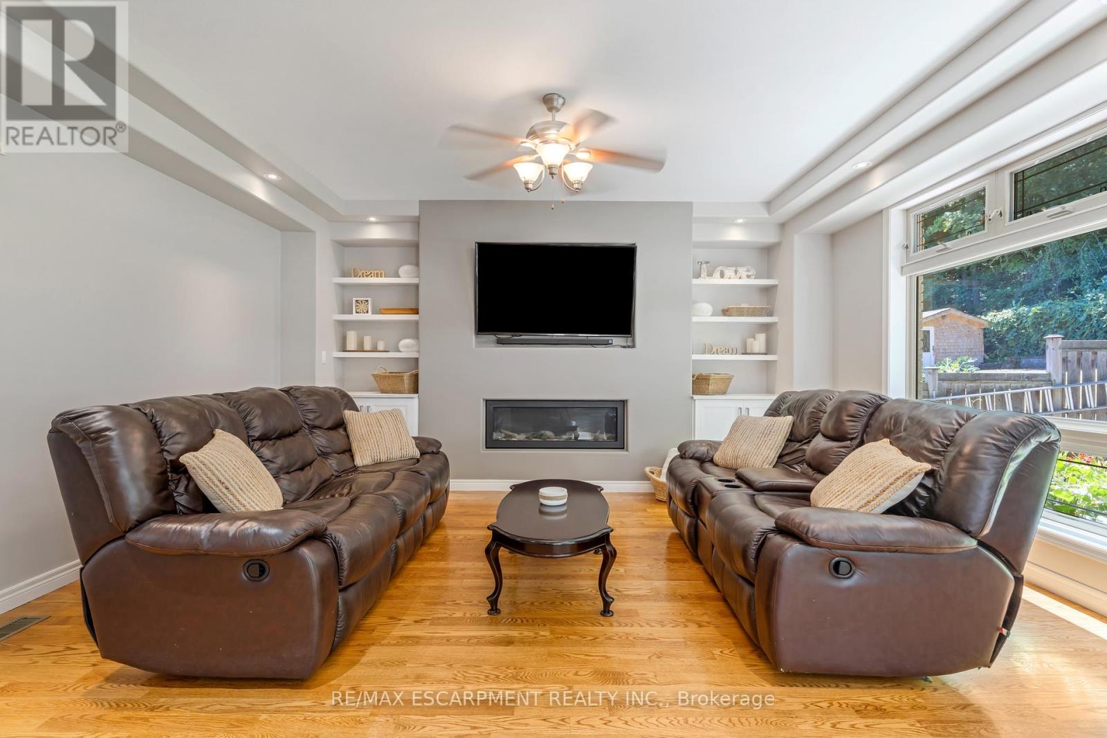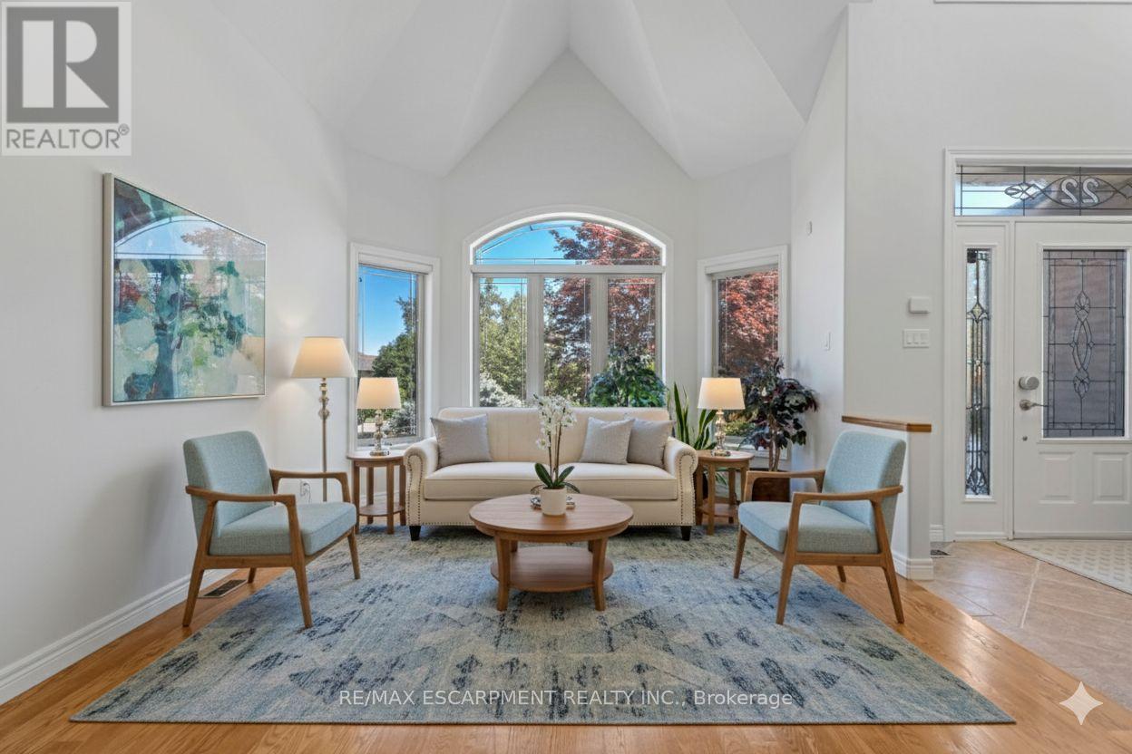 Escape the hectic pace of the modern world and step into your own private cottage retreat. Nestled gracefully beneath the Niagara Escarpment on a quiet crescent, this custom-built (2003) home sits on a premium pie-shaped lot backing onto lush, protected green space. This isn't just a backyard; it's a lifestyle. Imagine trading screen time for real-world adventures-watching your kids catch frogs by your private, multi-tiered waterfall or chase fireflies as the sun goes down. Spend your evenings soaking in the hot tub, letting the stresses of the day melt away to the tranquil sounds of trickling water and a gentle symphony of cicadas and grasshoppers. It is a true piece of calm in a busy world. Inside, that connection to nature continues. Oversized windows flood the meticulously maintained 4+1 bedroom home with natural light, complementing the soaring ceilings and elegant rounded corners. The freshly painted interior features a kitchen equipped with brand-new appliances (including a gas cooktop option) protected by a 4-year warranty, plus reverse osmosis water at every sink. When it's time to unwind, the spacious primary suite serves as the ultimate sanctuary, featuring a two-sided gas fireplace shared with a luxurious, spa-like ensuite. Family living is made easy with walk-in closets in every single bedroom, central vac, and two fruit cellars. The fully finished basement offers fantastic in-law or income potential, boasting rare 9-foot ceilings, a separate entrance, and a roughed-in kitchen. Complete with an oversized exposed aggregate driveway parking six cars, this move-in-ready home perfectly balances the tranquility of nature with modern luxury. (id:64974)