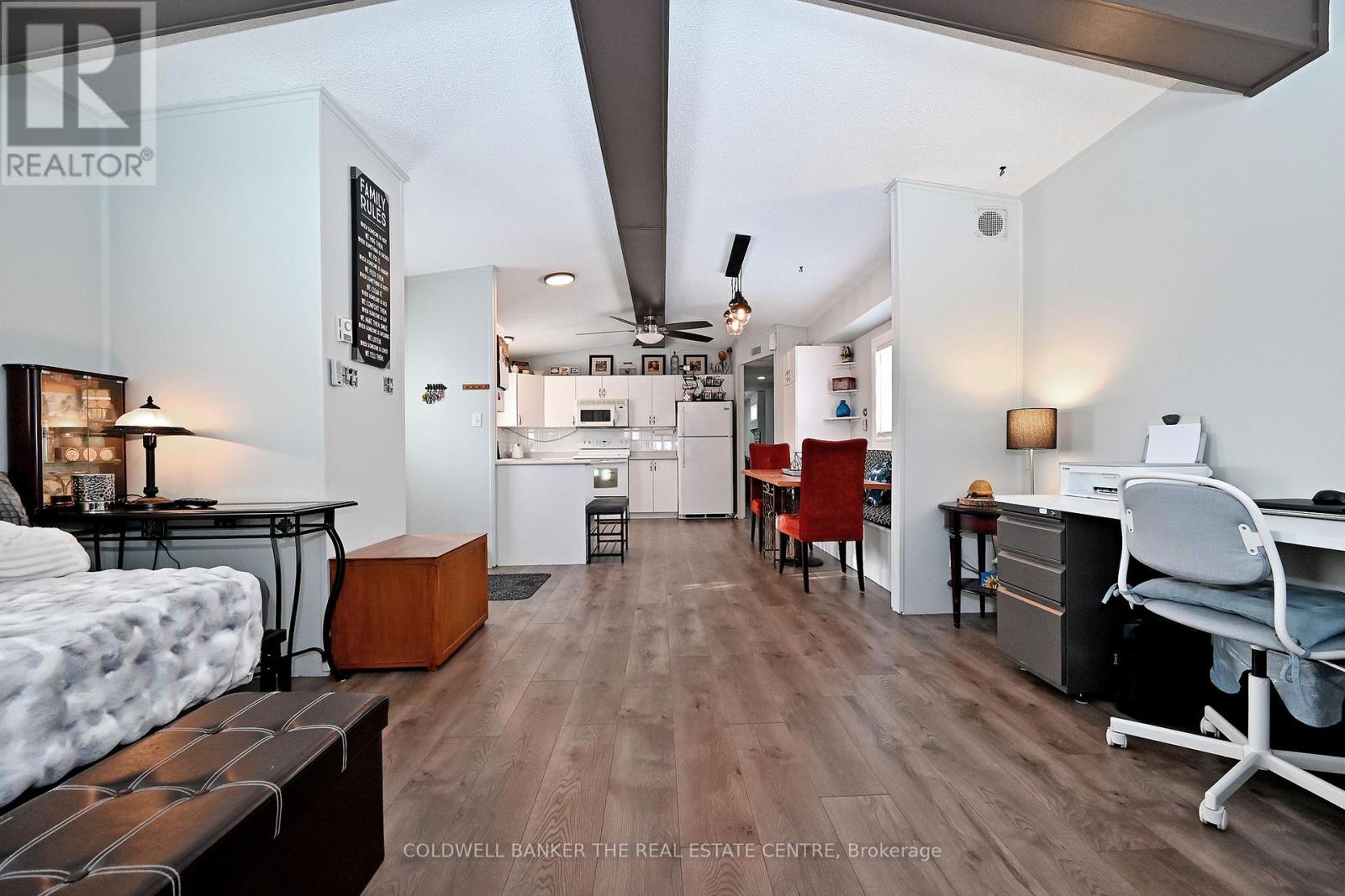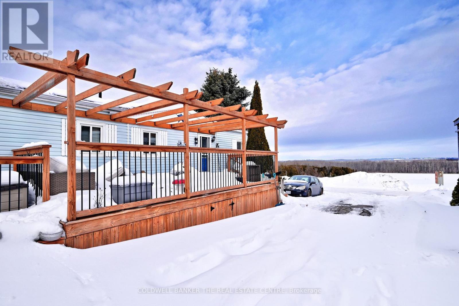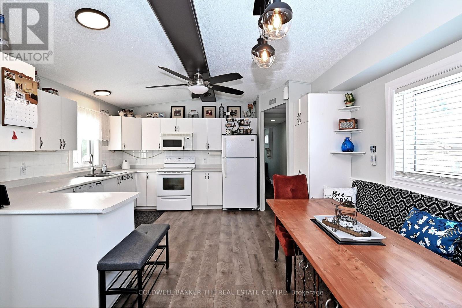Wonderful opportunity for first time buyers or down sizers! Charming 2 bedroom modular home with spacious layout. Inviting living area features a chalet style beamed ceiling and cozy wood burning fireplace. Bright eat in kitchen with built in banquet seating. Two bedrooms and two bathrooms. The primary bdrm boasts a beautifully renovated ensuite. Outside enjoy a large deck with clear views of conservation - ideal for relaxing or entertaining . Recent upgrades include: shingles (2024) , deck (2021), new flooring (2021), primary bath (2021) , paved driveway (2021) , windows(2019). Located just minutes to Bradford this land lease community has NO AGE RESTRICTIONS. Monthly land lease of $595 includes property taxes, water and road maintenance. Home owner responsible for hydro, internet and phone. A wonderful opportunity to enjoy affordable living in a serene setting. (id:64974)