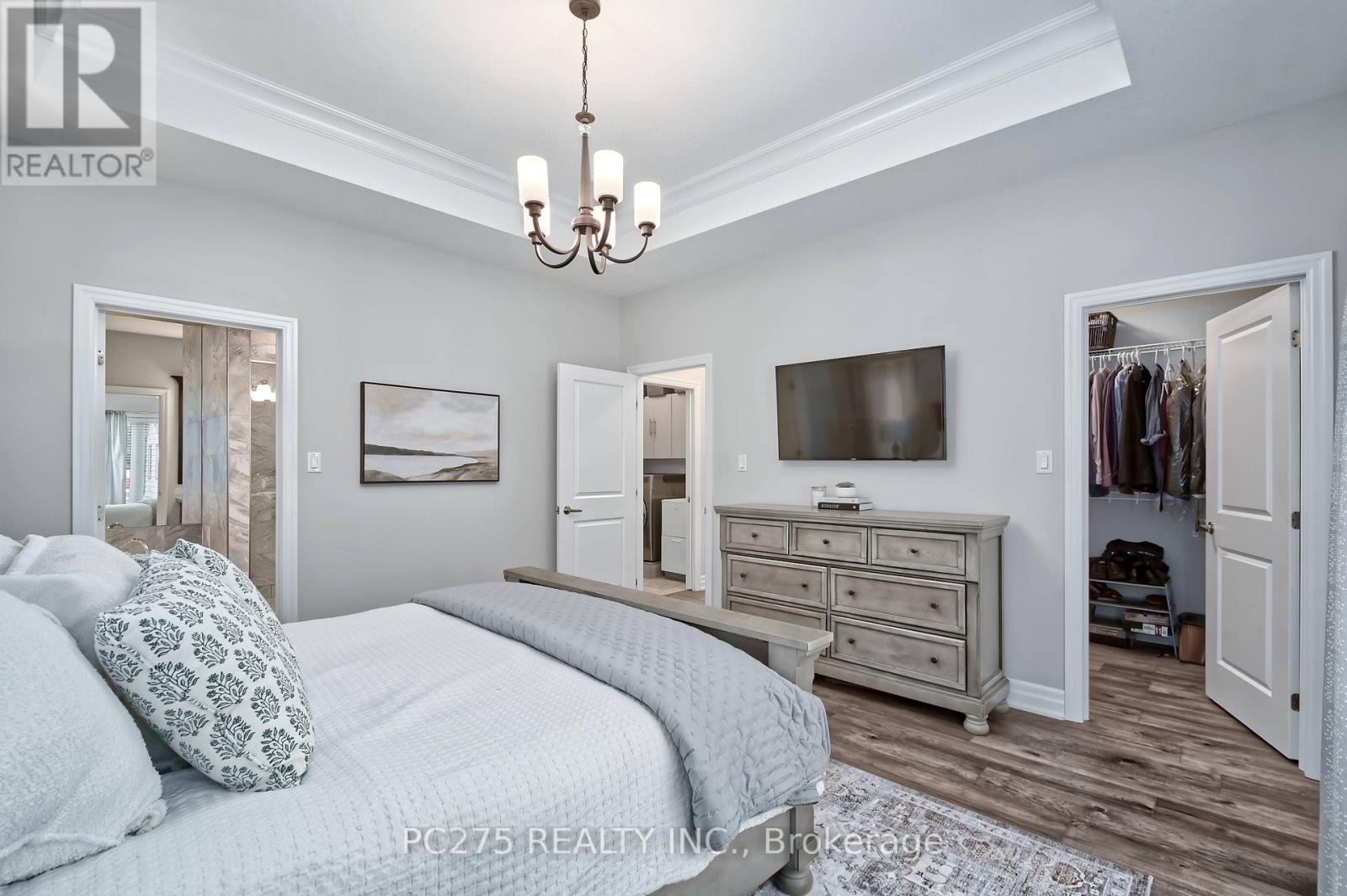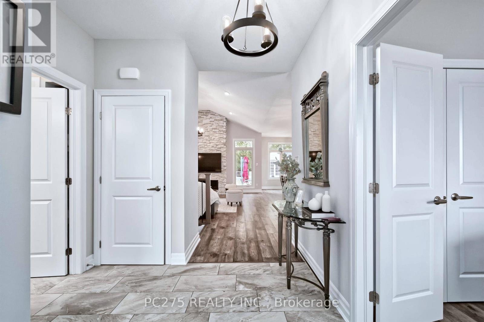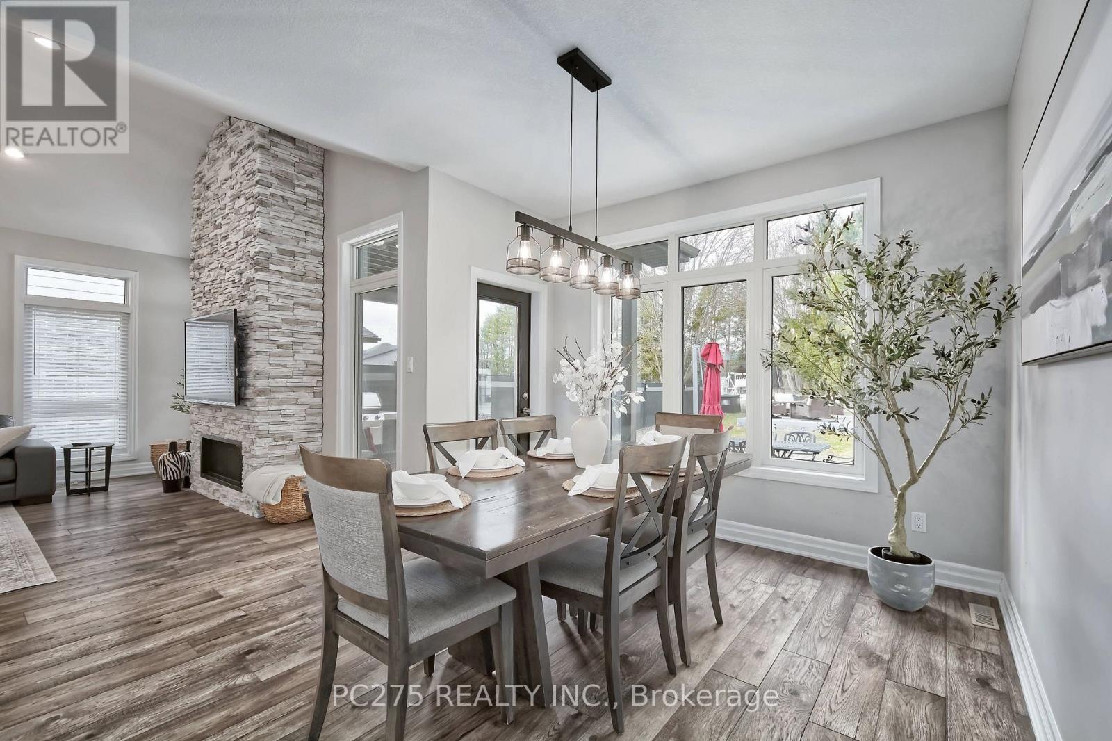 Stunning, spacious, and an absolute show stopper, this open concept style 3+1 bedroom, 3 bathroom ranch brings numerous high end custom build features you'll struggle to find all in one place! Making an excellent first impression upon entering the home, you are greeted by Mannington laminate and ceramic tile flooring, a linear in-wall gas fireplace, cathedral ceilings, and more. Prepare your meals in style in a beautiful GCW custom built kitchen with island, granite counter tops, built-in stainless steel oven, dishwasher, microwave, counter-top range, and refrigerator. The primary bedroom with a large walk-in closet and ensuite bathroom ensures comfort with a whirlpool jetted-tub, dual, opposing wall shower heads, 2 sinks, ceramic tile, and a dark stained maple vanity. With no rear or front neighbouring homes, enjoy a scenic view from the front porch or peace and privacy in the rear. Entertain guests in a multitude of ways! The lower level features a large and open recreation are for movies or catching the big game, a 16 foot bar, and pool table (included!). You can also take the gathering out back to a spacious backyard that now includes a heated 16x12 recreational retreat with hydro, a 9-person spa with gazebo, concrete patio, and deep lot for the kids to play in! With so much to offer, this is a definite must-see! (id:64974)