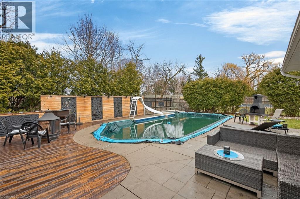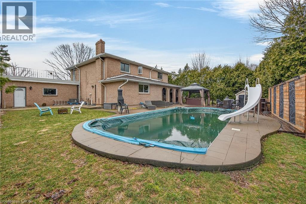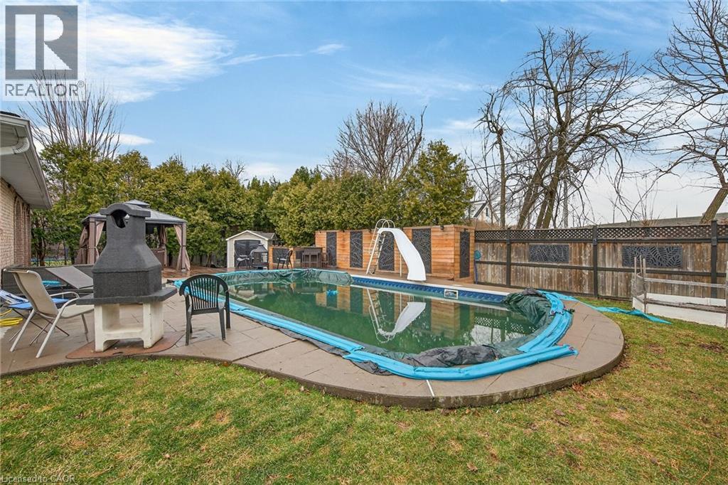 Welcome to 22 Woodside Drive, a beautifully designed Mediterranean-inspired residence in the highly sought-after Sherwood neighbourhood, ideally situated on a mature, quiet dead-end street. Showcasing distinctive arched front windows and a generous front courtyard, this home offers exceptional curb appeal and a striking architectural presence. Inside, a bright and thoughtfully designed layout unfolds with well-proportioned principal rooms and expansive windows that fill the home with natural light. The kitchen offers ample prep and storage space and seamlessly connects to the dining area, creating an elegant setting for both everyday living and entertaining. Offering four generously sized bedrooms, this home provides an ideal balance of comfort and functionality. One bedroom has been beautifully reimagined as a private office, complete with direct access to a balcony above the garage, an inspiring space for work or quiet retreat. The lower level is notably expansive and offers a versatile layout with in-law suite or income potential. Outdoors, the private backyard is anchored by an in-ground pool and covered hot tub, creating a serene setting for summer enjoyment and effortless entertaining. Ideally located close to parks, schools, shopping, and transit, with convenient access to the LINC and Red Hill Parkway, this home delivers an exceptional lifestyle in one of Hamilton Mountain’s most established communities. (id:64974)