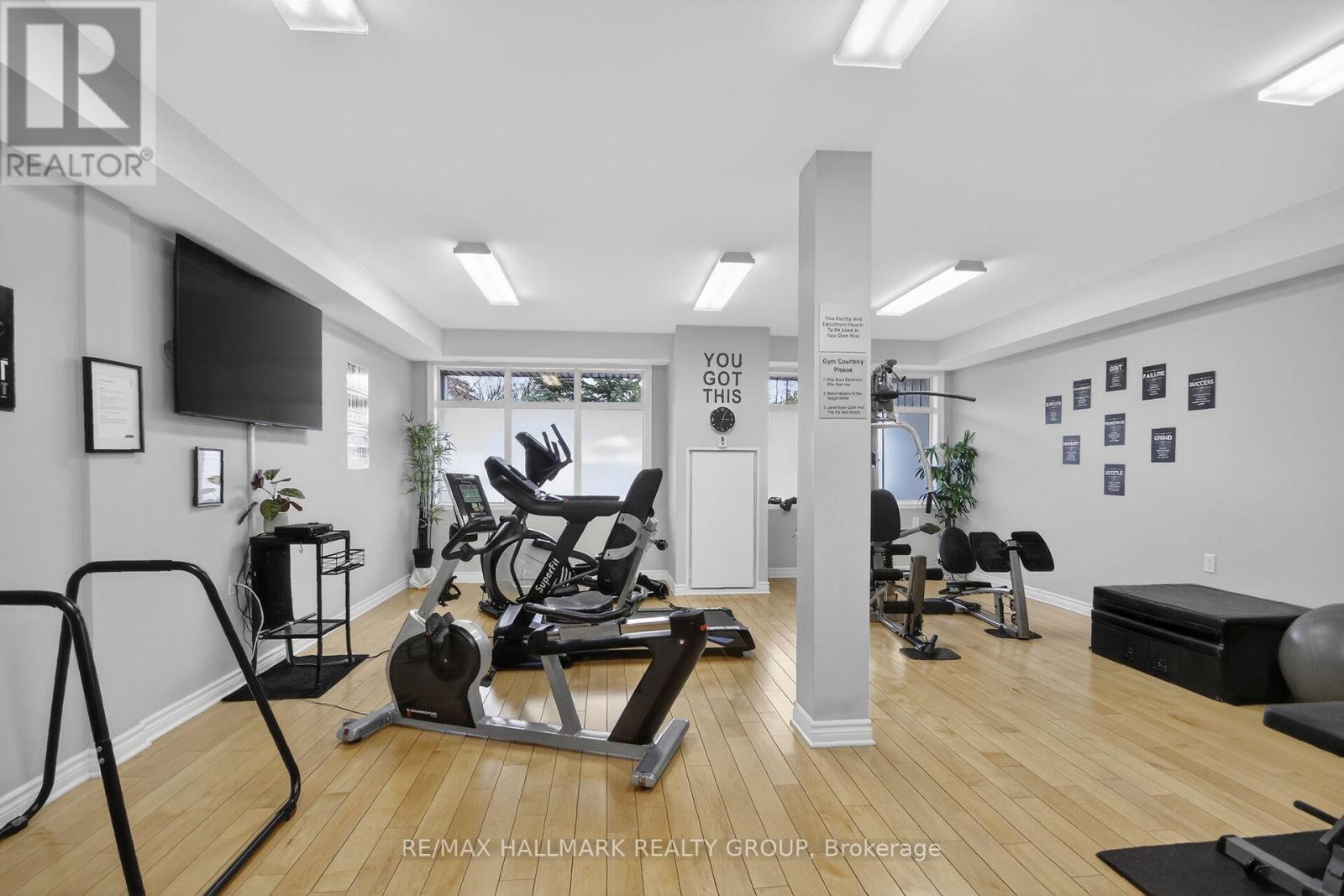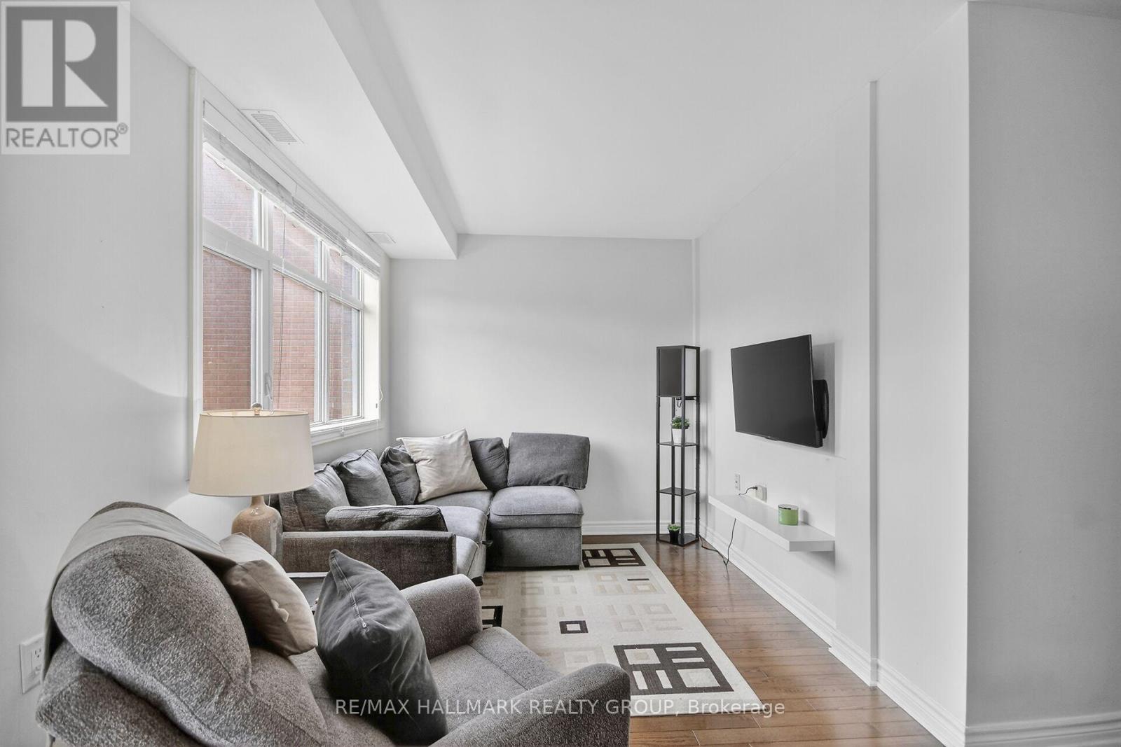 Lovely 1 bedroom, 1 bathroom condominium apartment in the heart of Barrhaven. Great location close to VIA railway station, public transit, parks, schools and shopping/restaurant amenities. This modern open concept unit features south facing exposure providing tons of natural light, gleaming hardwood floors throughout, designer kitchen with quartz counters, stainless steel appliances, track lighting and breakfast nook, main bathroom includes vanity with quartz counters, spacious bedroom + gorgeous balcony. Also features natural gas heating with AC, in-suite laundry, exercise room + underground parking. Excellent value for first time home buyers or investors! (id:64974)