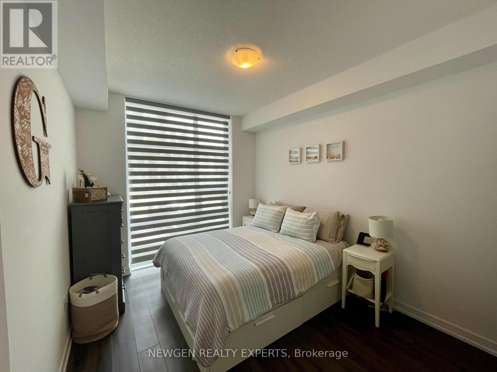 This bright and beautifully designed 1 Bedroom + Den, 1 Bathroom condo for lease comes with ONE PARKING and ONE LOCKER and offers a spacious, well-planned layout ideal for singles or couples seeking comfort and convenience. The unit features a private walk-out balcony perfect for relaxing and enjoying fresh air, along with a modern kitchen equipped with stainless steel appliances and a convenient eat-at breakfast island ideal for casual dining and entertaining. Residents can also enjoy excellent building amenities including a rooftop patio, BBQ area, fully equipped fitness center, party room, and games room-great for relaxing or hosting guests. Ideally located close to parks, scenic trails, waterfalls, restaurants, and shops, and just minutes from the GO station, this condo offers the perfect blend of modern living and everyday convenience. (id:64974)