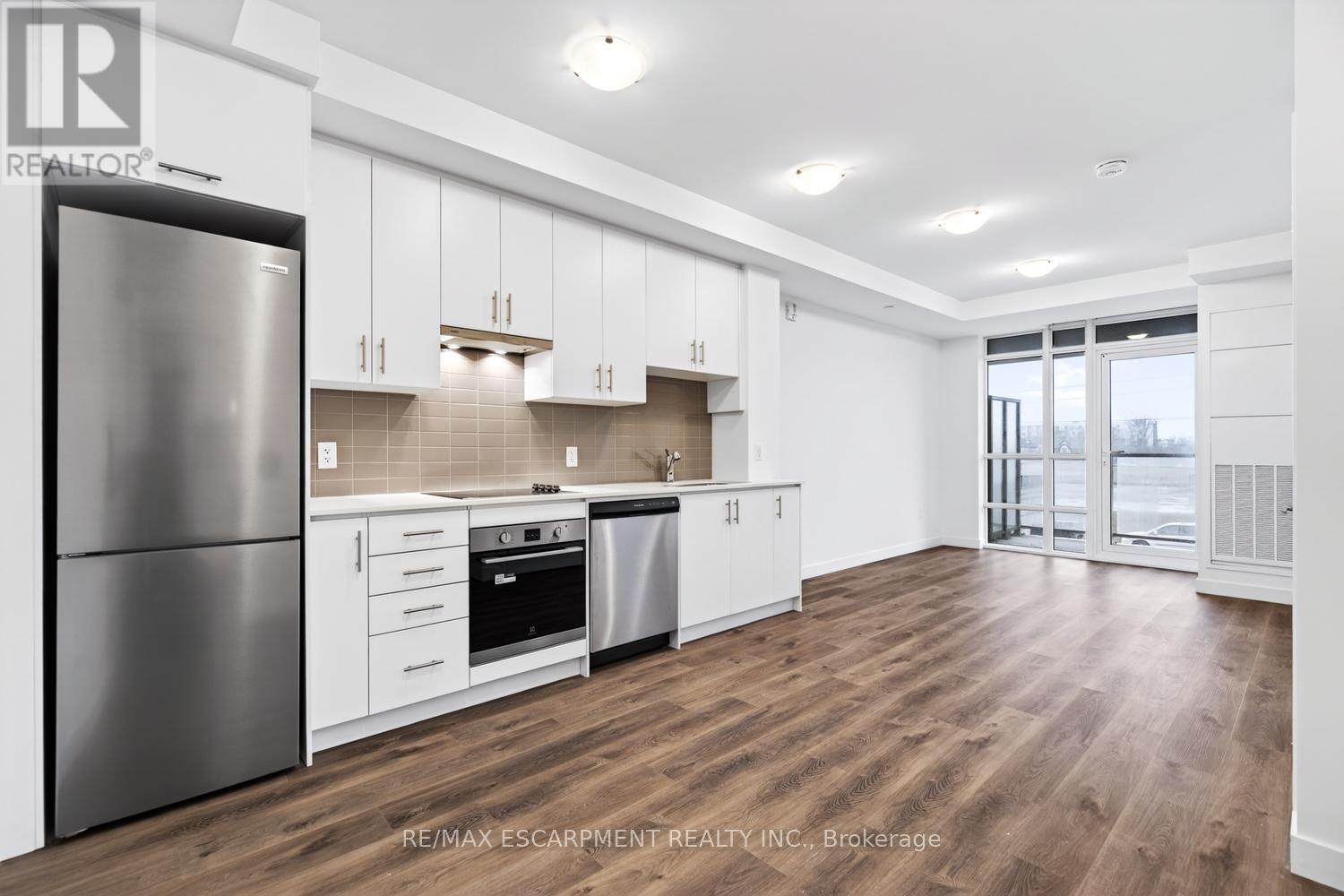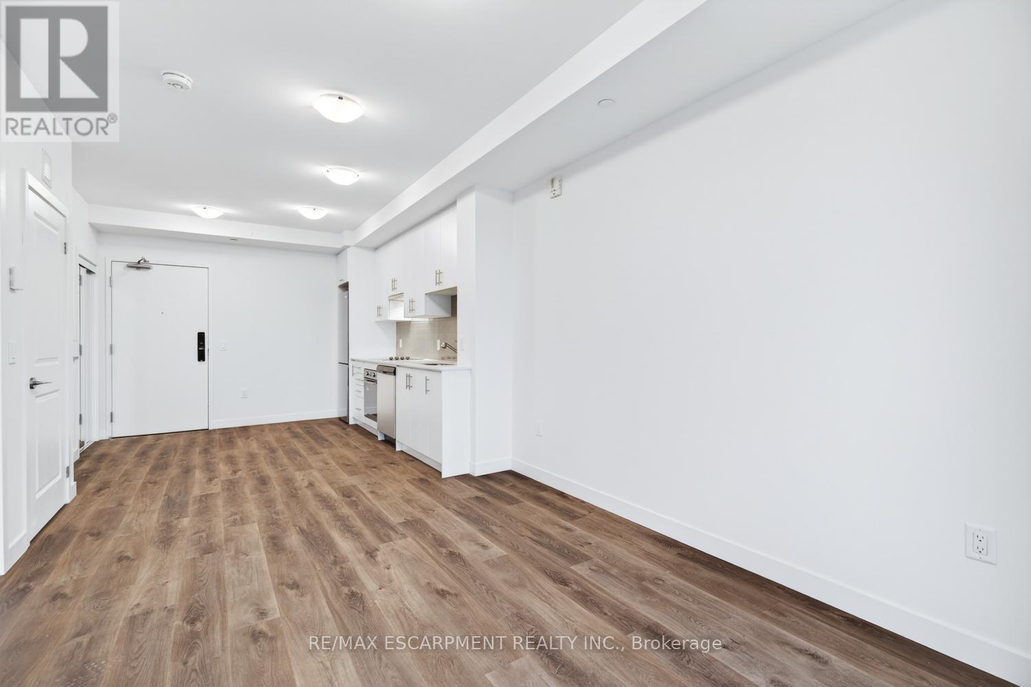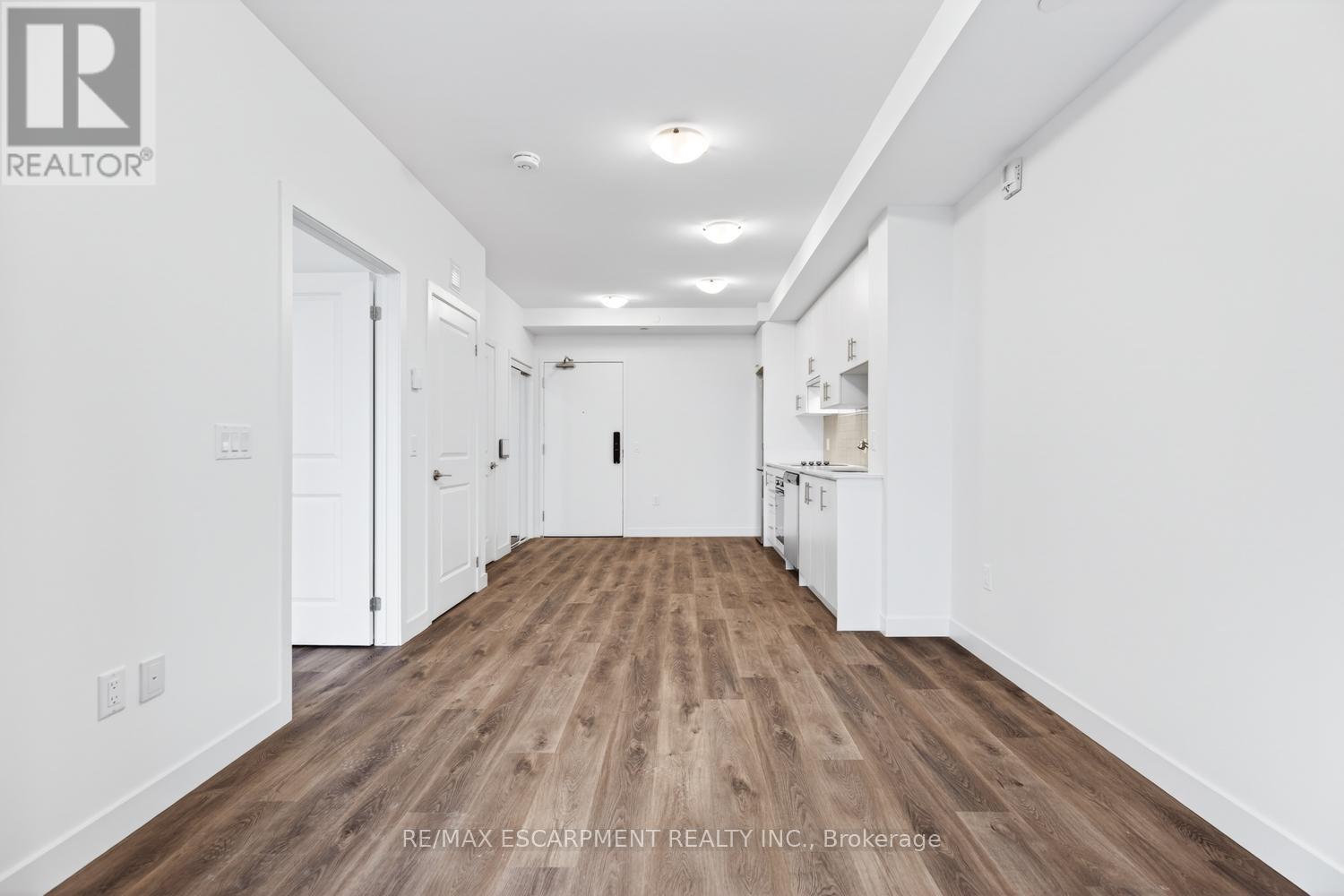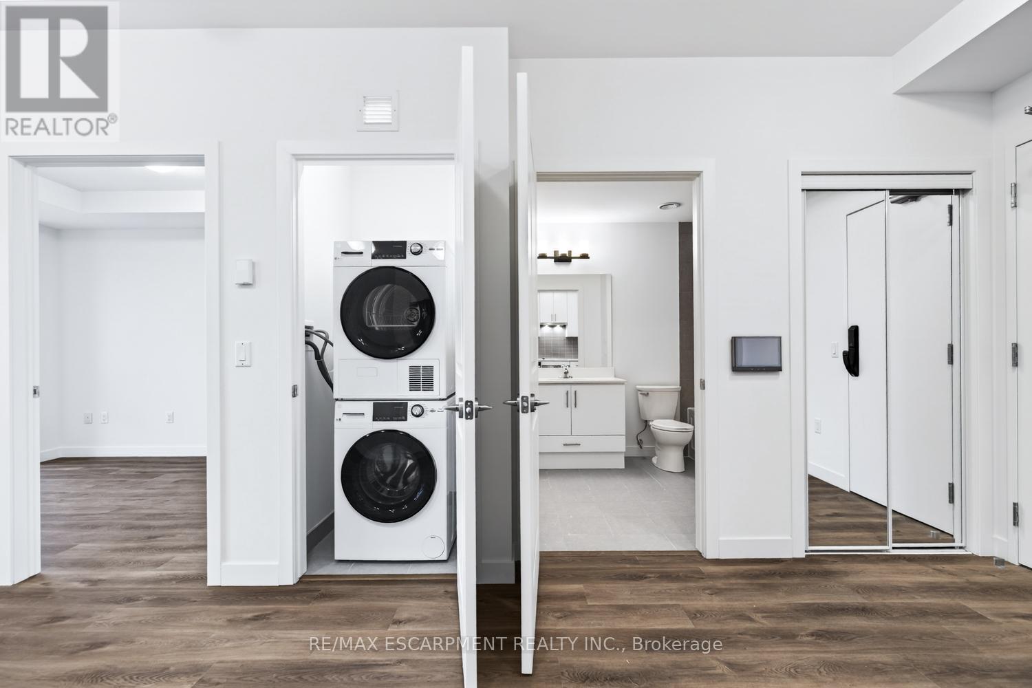 Welcome to stylish condo living at Muse Condos in Stoney Creek, just steps to Lake Ontario and scenic waterfront trails! This brand new 1 bed, 1 bath suite offers a bright open-concept layout with luxury vinyl flooring throughout, a sleek kitchen with quartz countertops, stainless steel appliances, ample cabinetry, in-suite laundry, energy-efficient geothermal heating/cooling & more! 1 parking & 1 locker included. Residents enjoy access to premium building amenities including a fitness centre, party room, rooftop terrace, and visitor parking. Ideally located with easy access to the QEW. Perfect for first-time buyers, downsizers, or investors! (id:64974)