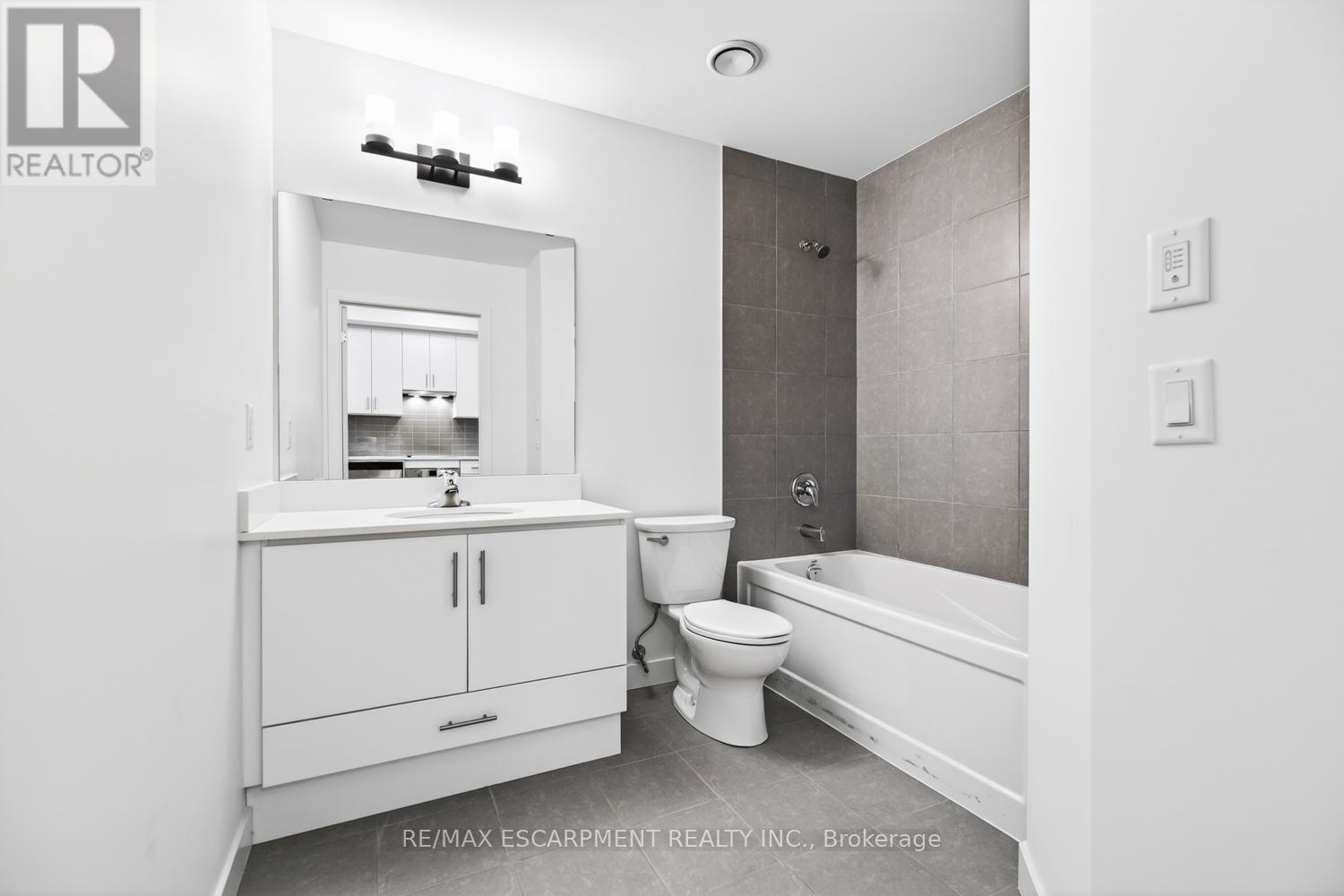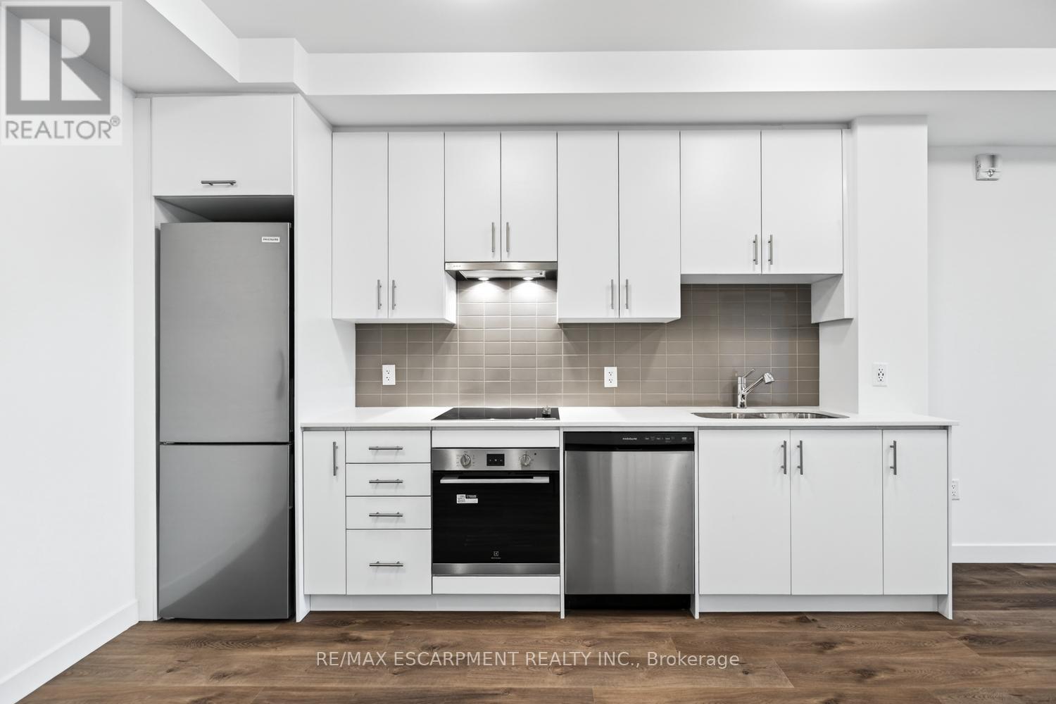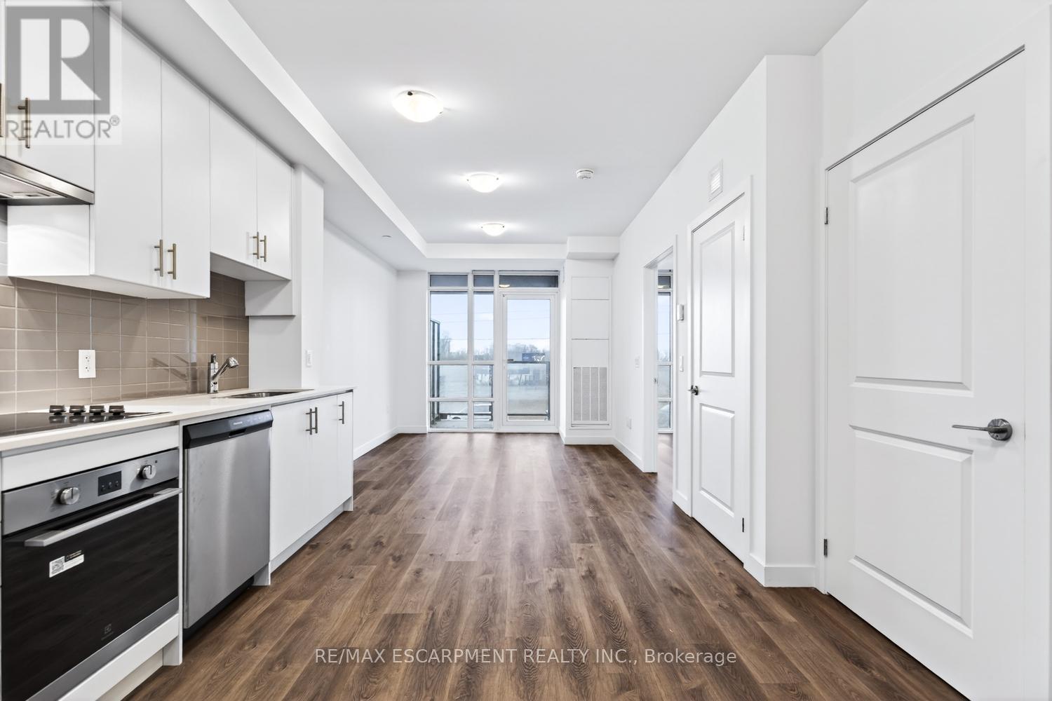 Welcome to stylish condo living at Muse Condos in Stoney Creek, just steps to Lake Ontario and scenic waterfront trails! This brand new 1 bed, 1 bath suite offers a bright open-concept layout with luxury vinyl flooring throughout, a sleek kitchen with quartz countertops, stainless steel appliances, ample cabinetry, in-suite laundry, energy-efficient geothermal heating/cooling & more! 1 parking & 1 locker included. Residents enjoy access to premium building amenities including a fitness centre, party room, rooftop terrace, and visitor parking. Ideally located with easy access to the QEW. Perfect for first-time buyers, downsizers, or investors! (id:64974)