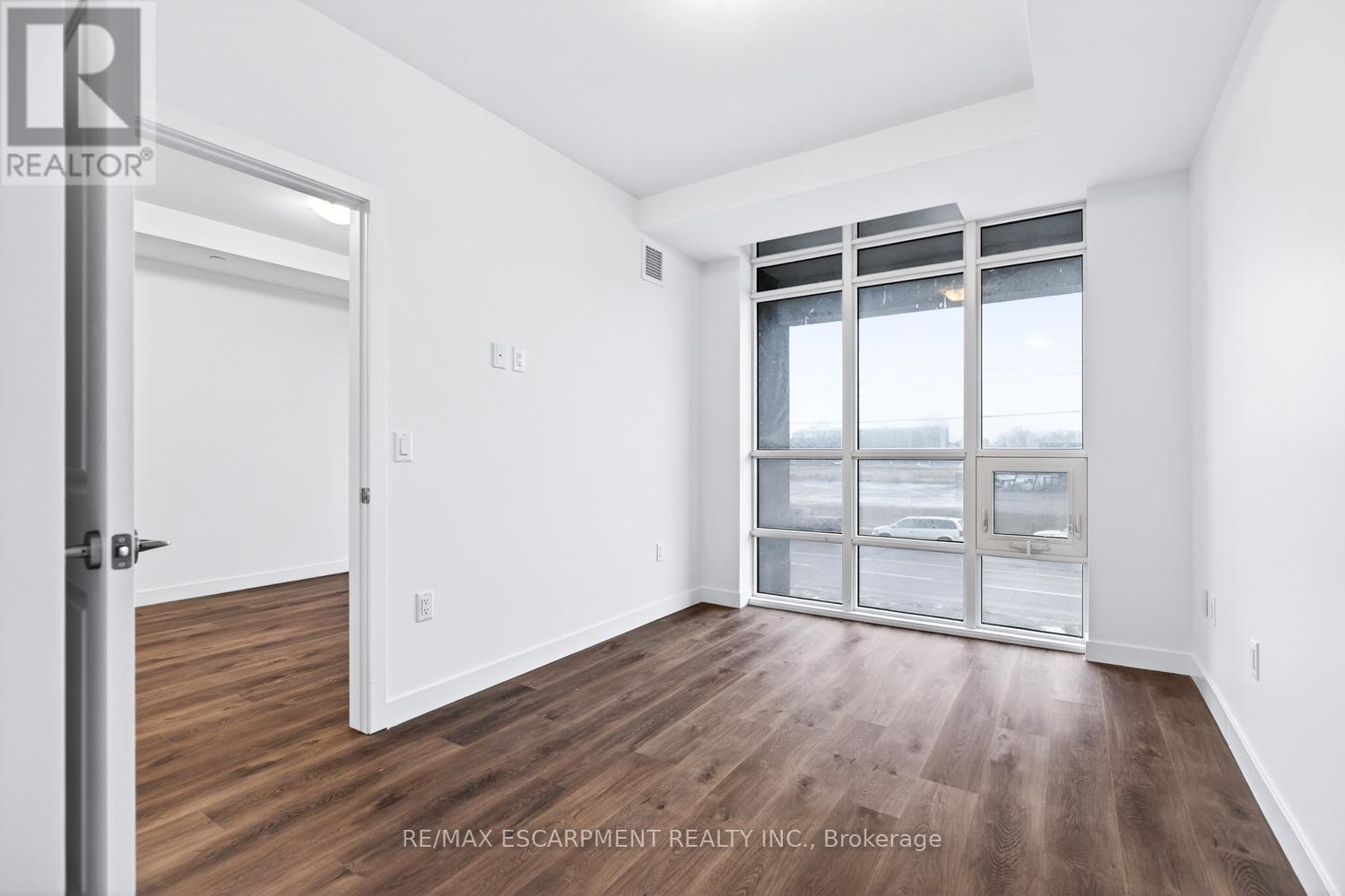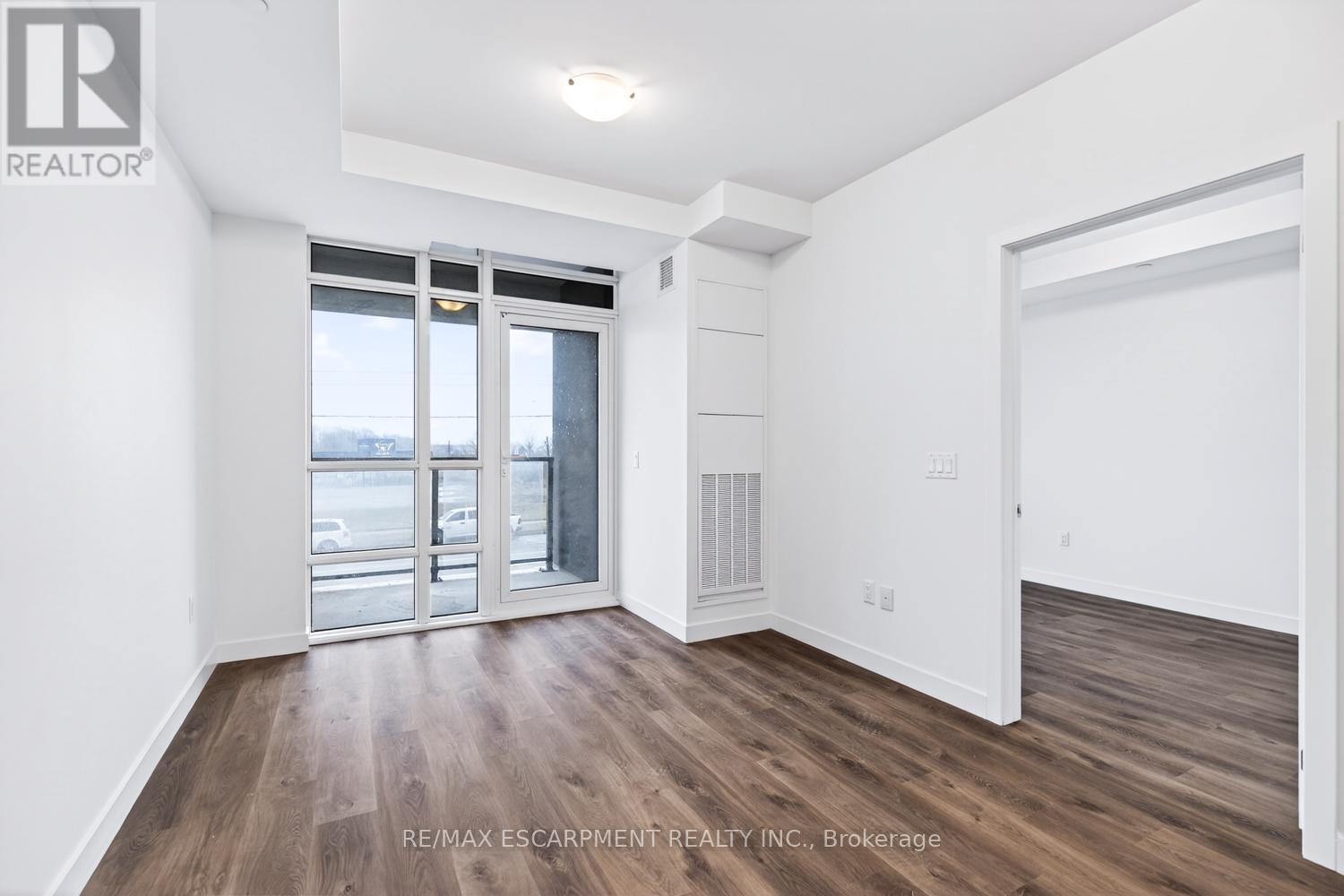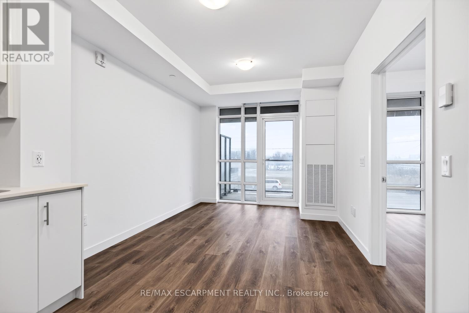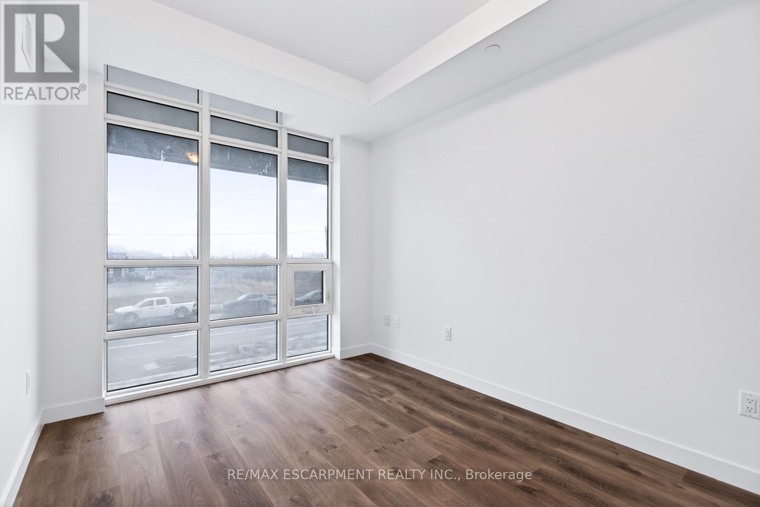 Welcome to stylish condo living at Muse Condos in Stoney Creek, just steps to Lake Ontario and scenic waterfront trails! This brand new 1 bed, 1 bath suite offers a bright open-concept layout with luxury vinyl flooring throughout, a sleek kitchen with quartz countertops, stainless steel appliances, ample cabinetry, in-suite laundry, energy-efficient geothermal heating/cooling & more! 1 parking & 1 locker included. Residents enjoy access to premium building amenities including a fitness centre, party room, rooftop terrace, and visitor parking. Ideally located with easy access to the QEW. Perfect for first-time buyers, downsizers, or investors! (id:64974)