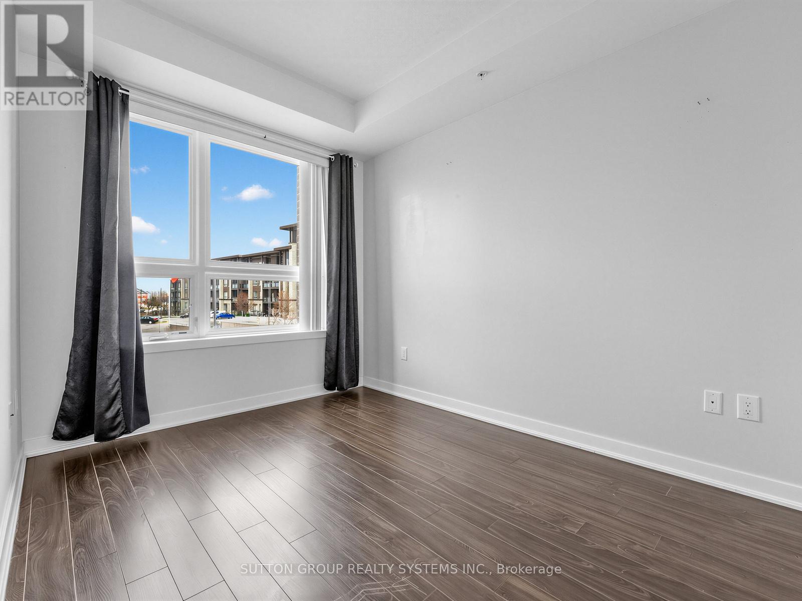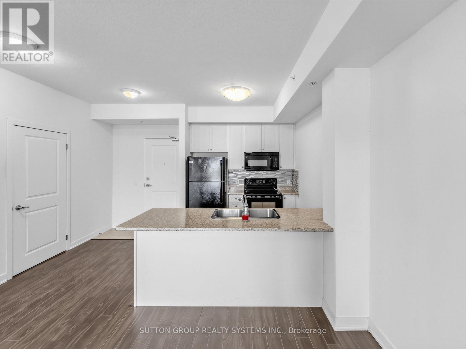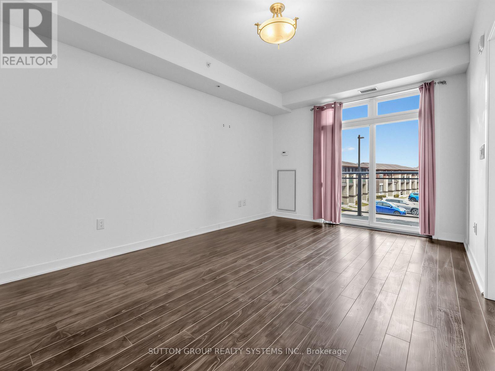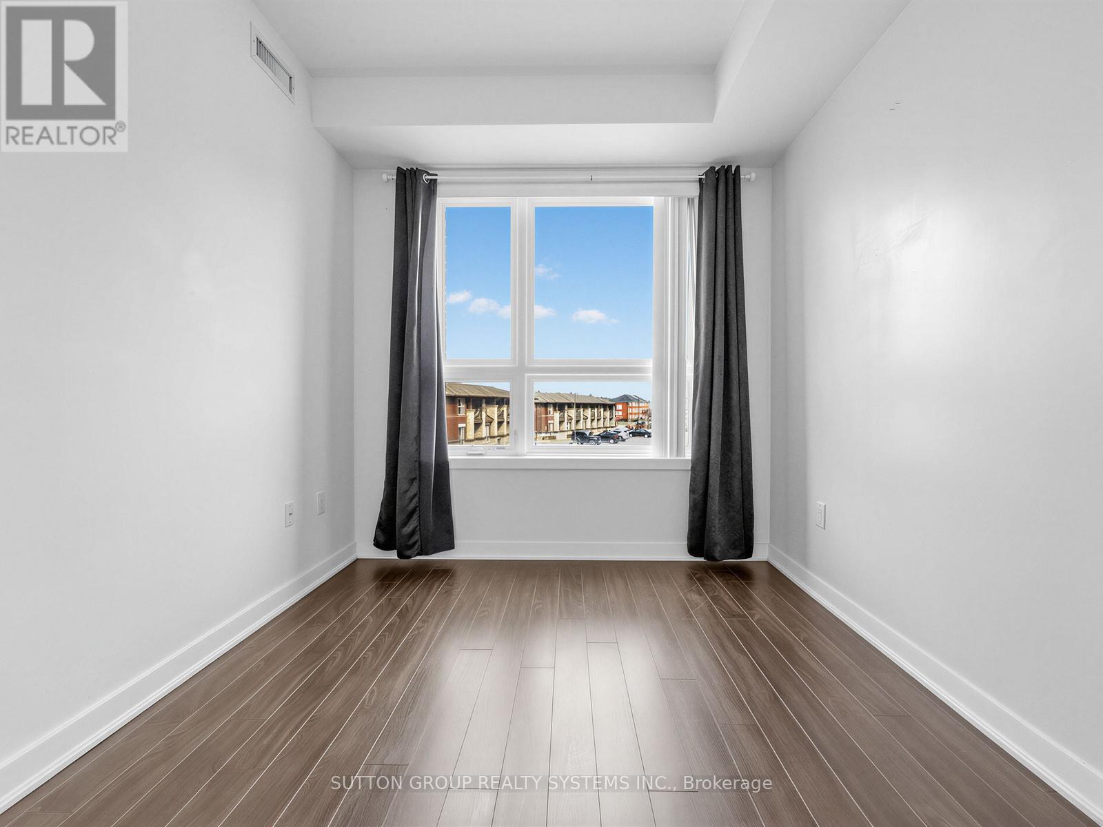 Sun-filled 1-bedroom, 1-bathroom suite at Vibe Condominium, ideally located at the desirable intersection of Appleby Line and Corporate Drive in Burlington. This bright east-facing unit offers an open-concept layout with 9-foot ceilings and engineered hardwood flooring throughout. The modern kitchen overlooks the combined living and dining area, which extends to a spacious balcony-perfect for relaxing or entertaining. The suite features a generously sized 4-piece bathroom and convenient in-suite stacked washer and dryer. Included are one oversized parking space located close to the elevator and one locker. Situated in a prime Burlington location close to shops, restaurants, schools, and all essential amenities, with easy access to the QEW, 403, 407, and major routes-ideal for comfortable living and easy commuting. Enjoy premium building amenities including a rooftop patio with BBQs, fully equipped fitness centre, party room, and visitor parking. (id:64974)