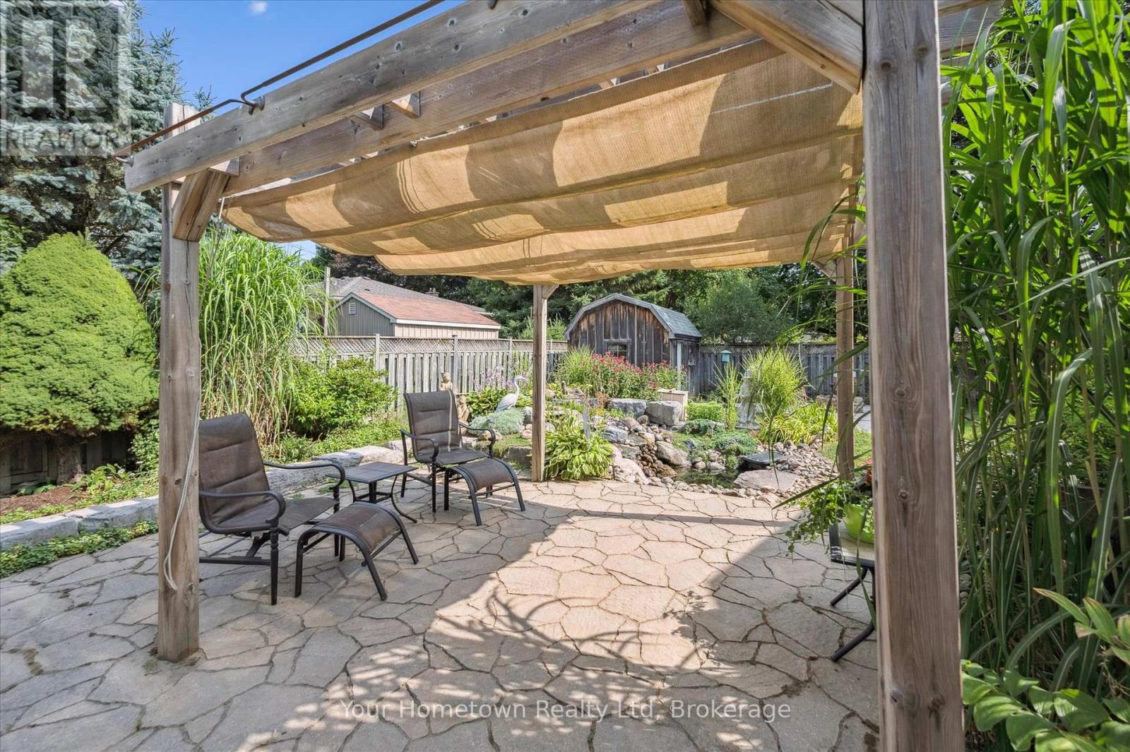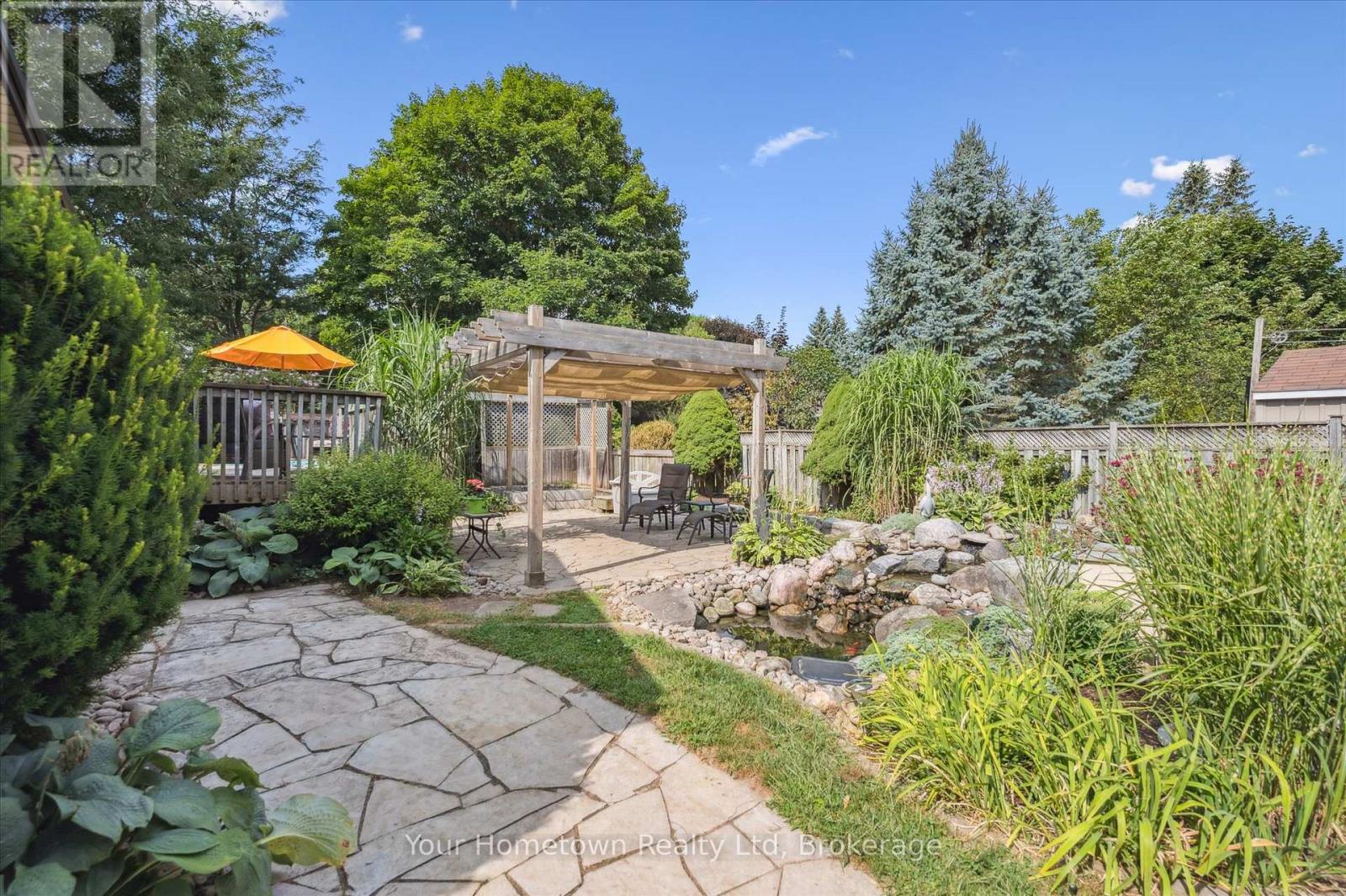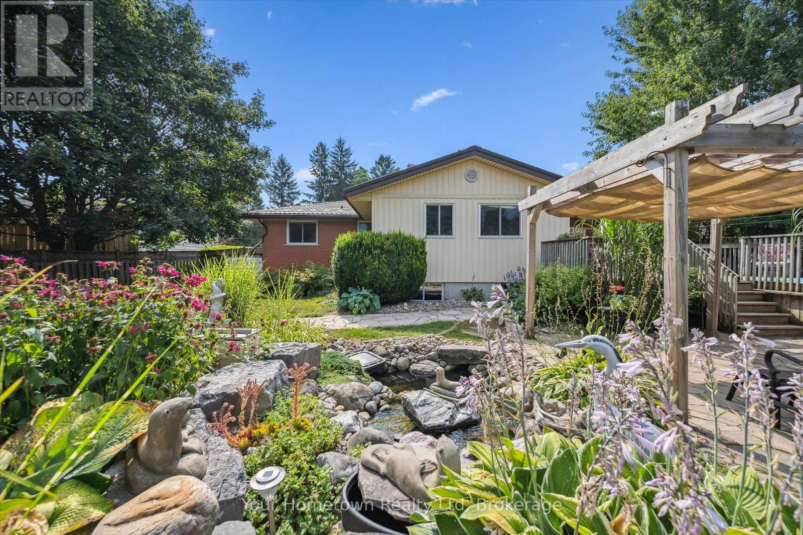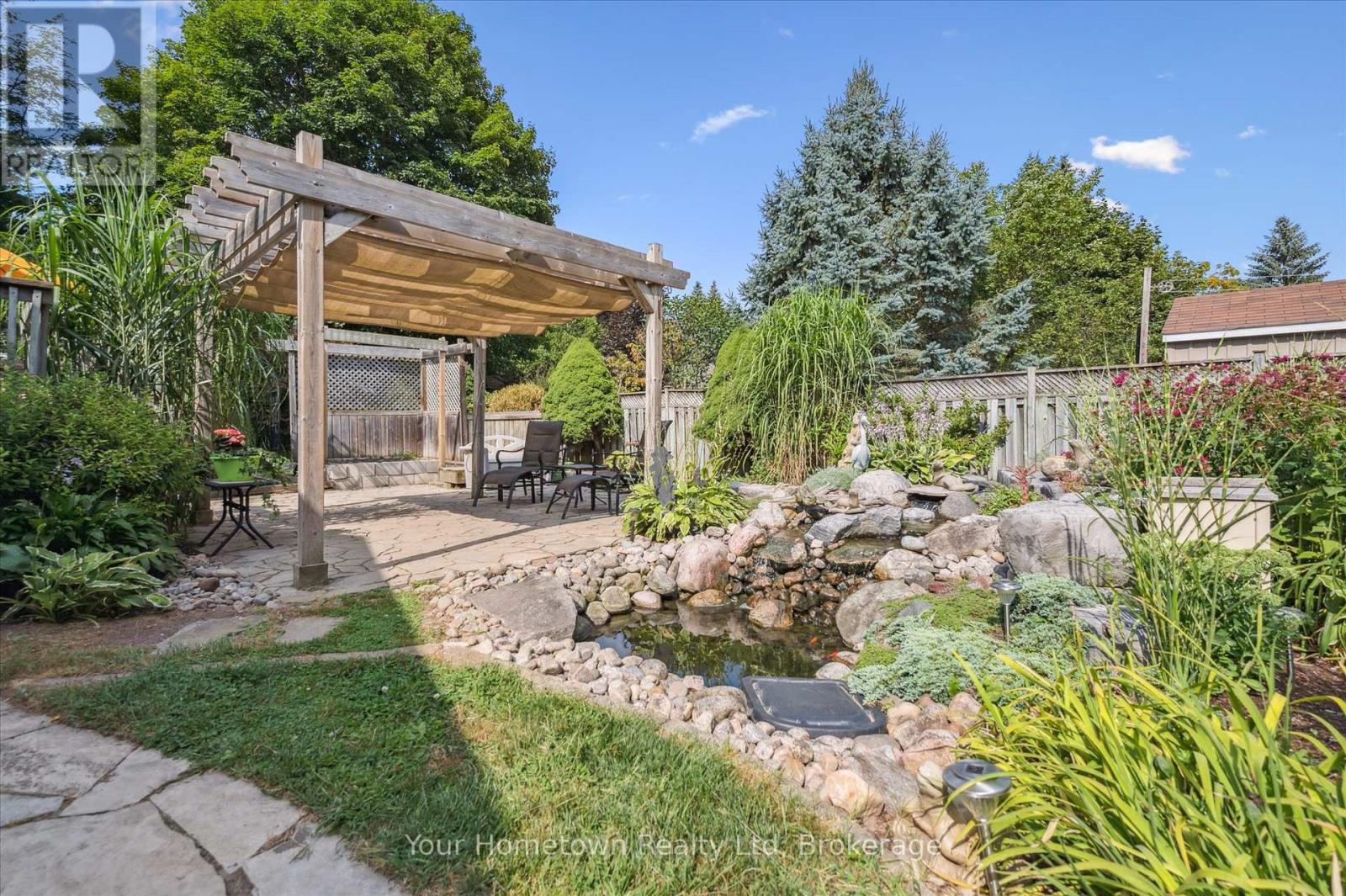 Welcome to Colborne St! Located in the Village of Elora, this solid Keating built bungalow has been well cared for by the same owners for 35 years. With approximately 2900sqft of living space, this comfortable home offers 3 bedrooms, 2 baths and an entertainer's kitchen/dining/great room. No need for a gym membership, the attached garage (easily converted back) has been repurposed into a bright gym/office combination. On the lower lever you'll find a spacious entertaining area with tons of storage. If outdoor living is a priority, then there is much to appreciate about the double lot. This mature neighborhood is the perfect setting for the large sundeck with soft tub. Perennial gardens line the private lot. Hardscaping offers many points from which to enjoy the Koi pond and waterfall, pergola and fire pit. Outdoor storage is housed by two large storage sheds. These properties are rarely offered in the Village. An easy commute to Guelph, KW and west GTA. (id:64974)