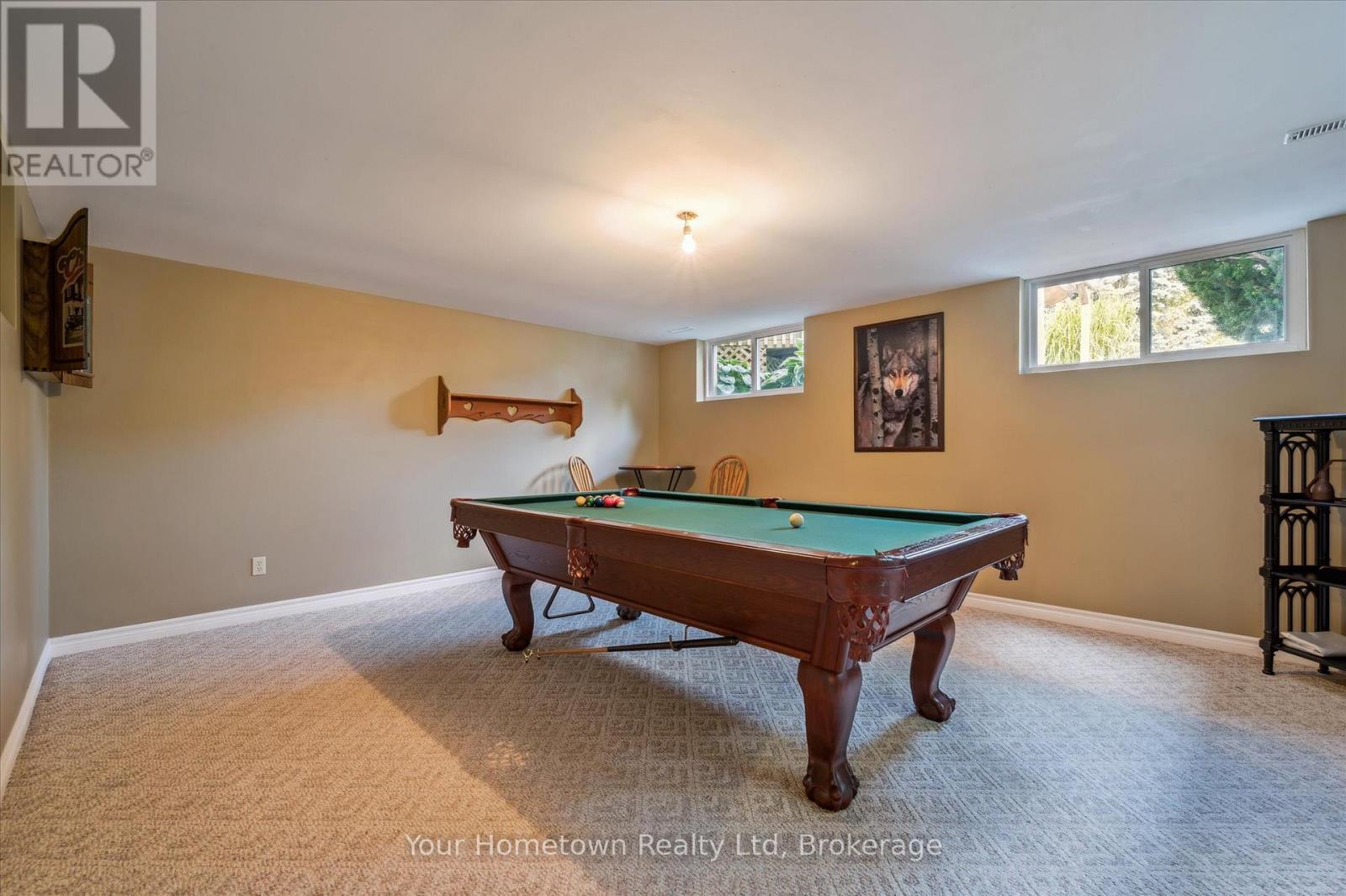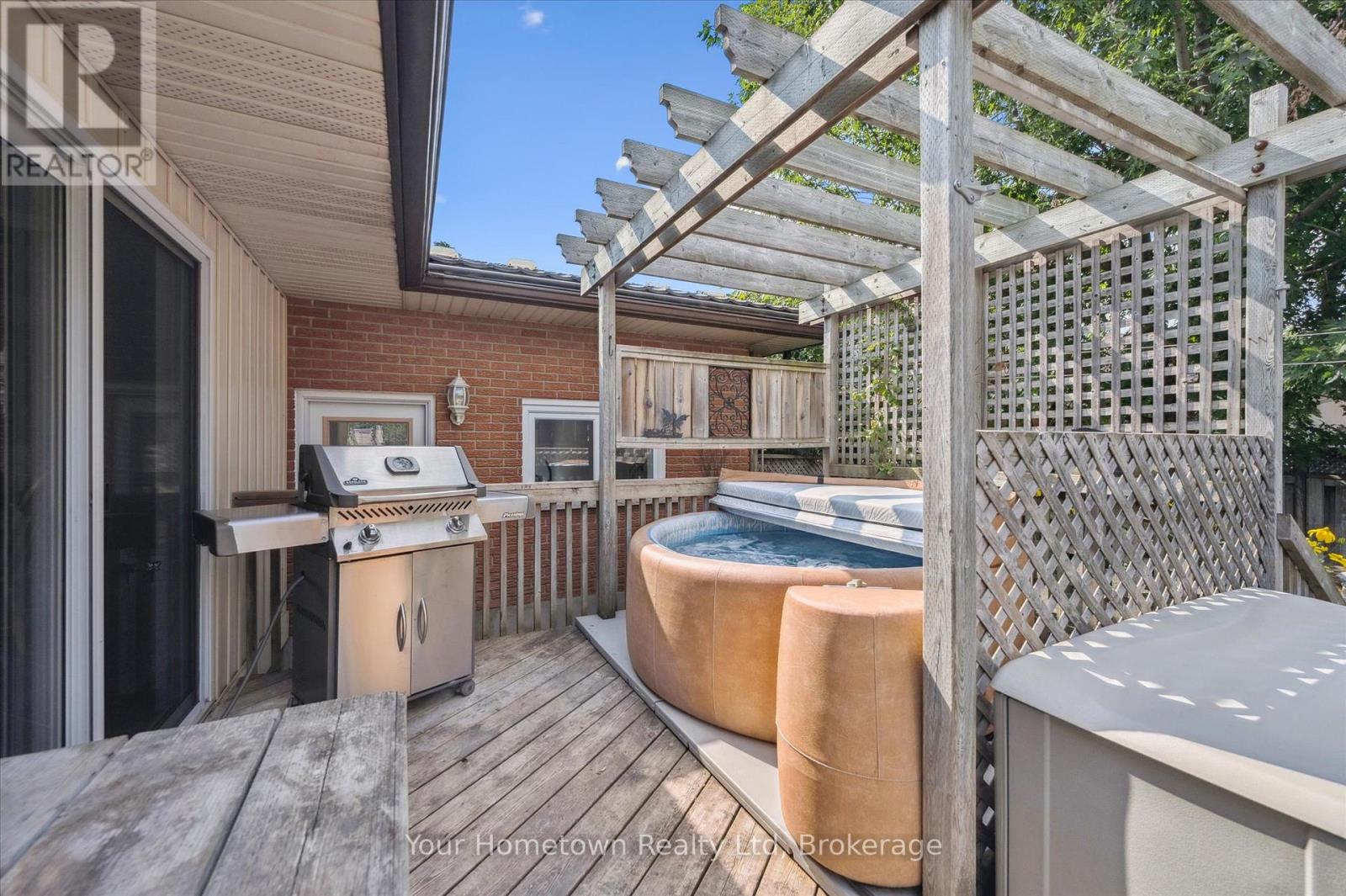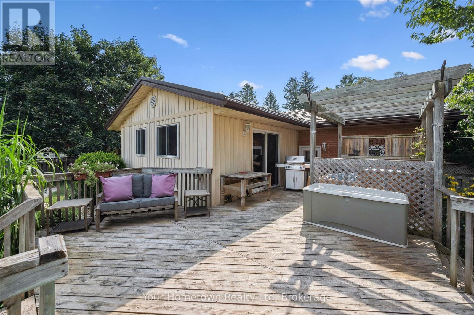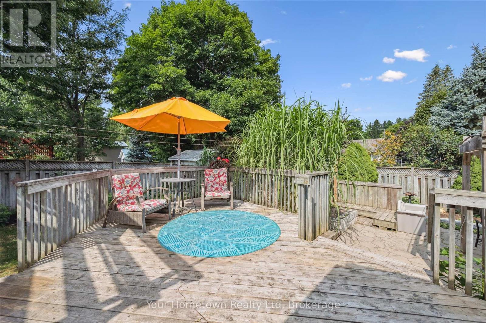 Welcome to Colborne St! Located in the Village of Elora, this solid Keating built bungalow has been well cared for by the same owners for 35 years. With approximately 2900sqft of living space, this comfortable home offers 3 bedrooms, 2 baths and an entertainer's kitchen/dining/great room. No need for a gym membership, the attached garage (easily converted back) has been repurposed into a bright gym/office combination. On the lower lever you'll find a spacious entertaining area with tons of storage. If outdoor living is a priority, then there is much to appreciate about the double lot. This mature neighborhood is the perfect setting for the large sundeck with soft tub. Perennial gardens line the private lot. Hardscaping offers many points from which to enjoy the Koi pond and waterfall, pergola and fire pit. Outdoor storage is housed by two large storage sheds. These properties are rarely offered in the Village. An easy commute to Guelph, KW and west GTA. (id:64974)