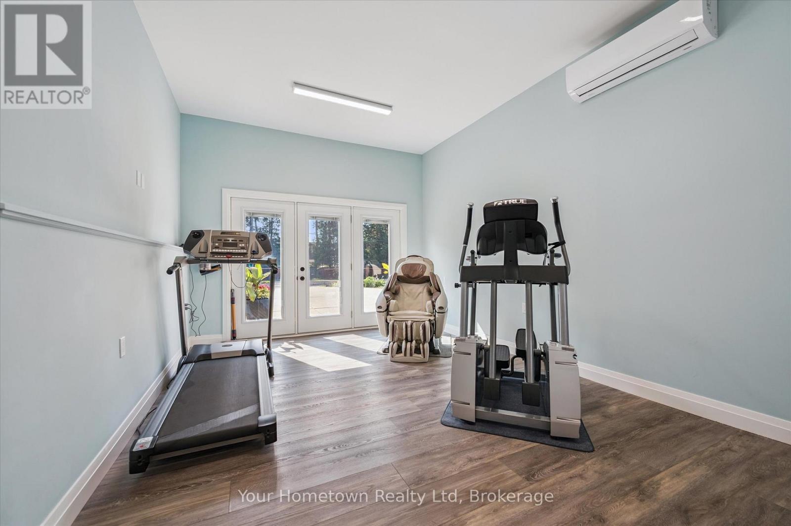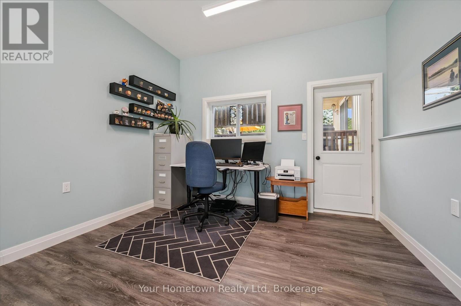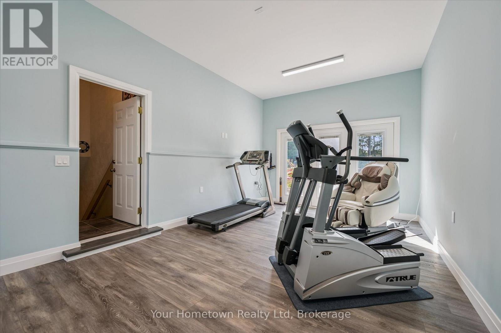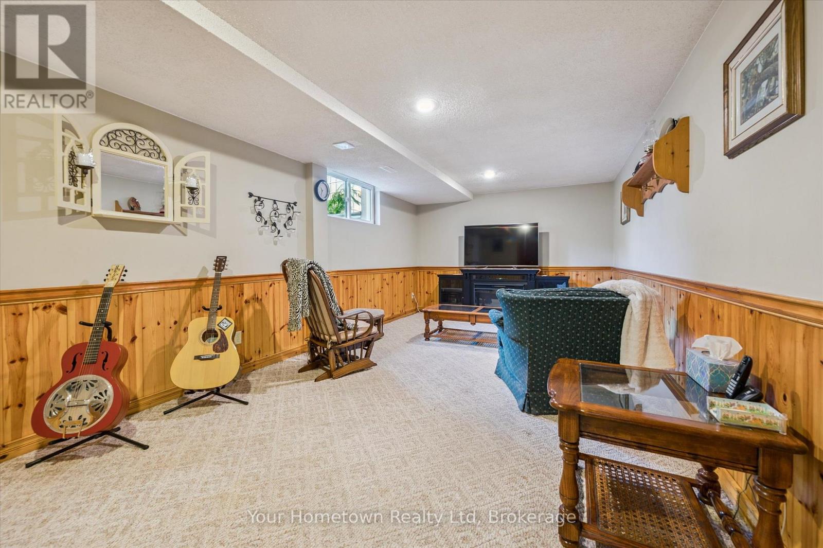 Welcome to Colborne St! Located in the Village of Elora, this solid Keating built bungalow has been well cared for by the same owners for 35 years. With approximately 2900sqft of living space, this comfortable home offers 3 bedrooms, 2 baths and an entertainer's kitchen/dining/great room. No need for a gym membership, the attached garage (easily converted back) has been repurposed into a bright gym/office combination. On the lower lever you'll find a spacious entertaining area with tons of storage. If outdoor living is a priority, then there is much to appreciate about the double lot. This mature neighborhood is the perfect setting for the large sundeck with soft tub. Perennial gardens line the private lot. Hardscaping offers many points from which to enjoy the Koi pond and waterfall, pergola and fire pit. Outdoor storage is housed by two large storage sheds. These properties are rarely offered in the Village. An easy commute to Guelph, KW and west GTA. (id:64974)