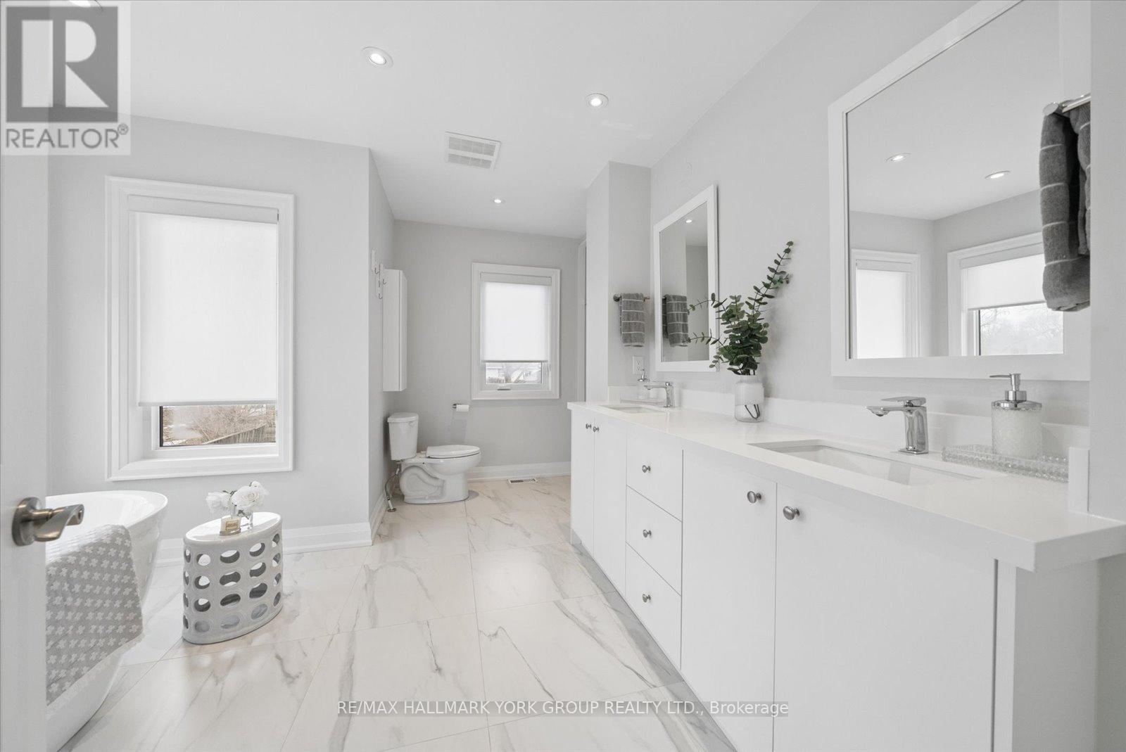 Built in 2018, this exceptional 4-bedroom, 3-bath residence delivers high-end finishes and an unbeatable lifestyle location - steps to the shores of Lake Simcoe and minutes to Hwy 404, shopping, recreation centres, and top-rated schools. Whether you're upsizing, investing, or planting roots, this is a home that truly has it all.The main level sets the tone with a sun-filled formal dining room, rich hardwood floors, and a sprawling open-concept great room that flows effortlessly into a showstopping chef's kitchen. Gloss white cabinetry to the ceiling, a quartz waterfall island with undermount sink and matte black fixtures, stone-inspired backsplash, stainless steel appliances, and dramatic designer pendant lighting come together to create a space that is equal parts stunning and functional. A bright breakfast nook with direct deck access and a sleek powder room with quartz vanity complete the main floor.Upstairs, the primary suite is a true retreat - anchored by a spa-calibre ensuite with a freestanding soaker tub, oversized glass-enclosed walk-in shower, and a generous custom walk-in closet. Three additional well-sized bedrooms, a second full bath, and a dedicated upper-level laundry room with full cabinetry, quartz counters, and utility sink add exceptional everyday convenience rarely found at this price point.The basement arrives framed and ready - with rough-ins for plumbing and electrical already complete - offering a seamless path to a finished in-law suite, private apartment, or income-generating unit, all with the added benefit of a separate walk-up entrance.Double car garage, private driveway, and mature treed backdrop complete this exceptional offering. (id:64974)
