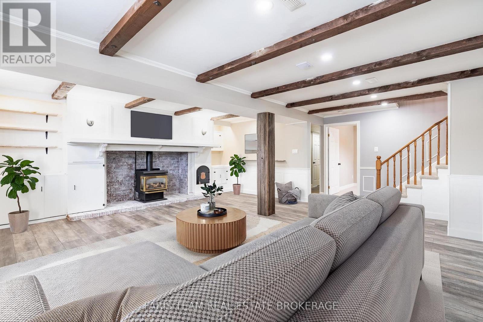 Top 5 Reasons You Will Love This Home: 1) Beautifully refreshed with quality finishes throughout, this raised bungalow welcomes you with an updated eat-in kitchen that immediately sets the tone, with a spacious breakfast area made for gathering and sleek quartz countertops that bring everything together, creating a warm and functional space perfectly suited for everything from weekday breakfasts to weekend gatherings 2) Two spacious bedrooms anchor the main level, offering comfortable spaces to unwind, accompanied by an updated bathroom that adds afresh, modern touch, while outside, the oversized in-town lot provides room to breathe and enjoy the outdoors, complemented by a heated and fully insulated two-car garage that is ideal for protected parking, extra storage, or the perfect workshop space 3) The lower level reveals a generous family room centred around a cozy gas fireplace and custom built-in shelving that adds both charm and practicality, while two additional well-sized bedrooms provide flexibility for family, guests, or a home office in a space that feels finished and welcoming 4) Engineered hardwood flooring flows throughout the home, complemented by a sliding glass-door walkout to the side deck, while the main bathroom impresses with a glass corner shower, relaxing soaker tub, and elegant ceramic tile flooring, plus enjoy added conveniences including a gas hookup for the dryer, included washer and dryer, and 200-amp electrical service 5) Ideally located close to the beach and the sparkling shores of Lake Simcoe, this home is perfectly positioned to enjoy the charm and character of the Alcona community, with shopping, dining, and everyday amenities just moments away. 1,265 above grade sq.ft. plus a finished lower level. *Please note some images have been virtually staged to show the potential of the home. (id:64974)