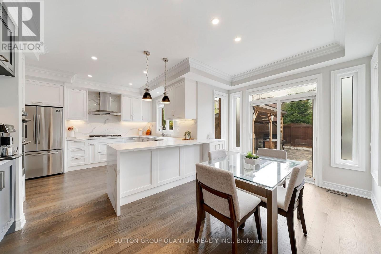 Some homes feel exceptional the moment you walk inthis is one of them. Nestled in Oakvilles prestigious West Oak Trails, this fully renovated detached gem offers 4 spacious bedrooms, 4 upgraded bathrooms, and every thoughtful feature a modern, detail-oriented family could want. With high-end finishes throughout, its truly turnkey.The chefs kitchen dazzles with quartz countertops, stainless steel appliances, and a layout designed for effortless hosting. Crown moulding adds elegance across both levels, while coffered ceilings in the family room introduce architectural sophistication. Rich hardwood flooring flows seamlessly throughoutno carpet, not even in the professionally finished basement.Upstairs, the primary suite is a private retreat, complete with a spa-inspired 5-piece ensuite (including a deep soaker tub) and custom closets. Additional upgrades include in-home garage access, central vacuum, front-load laundry, Ring doorbell, Schlage smart lock, epoxy-finished garage floor with custom cabinetry and storage, and roof insulation topped up to current code.The basement continues the theme of excellence: Dri-Core subflooring, 12mm laminate, 2lb foam insulation on half walls, and epoxy finishes in the cold room and furnace area. Every inch reflects intentional design and enduring quality. Step outside to your personal oasis. A heated swim spa, gazebo with built-in BBQ (with water access), outdoor gas hookup, turf lawn, and interlock stonework wrap the home in style. The exposed aggregate driveway and flagstone porch with glass railing (2021) add striking curb appeal, while 50-year Timberline shingles and a 200-amp electrical panel offer long-term peace of mind.Located near top-rated schools, scenic parks, trails, and shops, this is the kind of neighborhood where kids ride bikes on quiet streets and neighbors greet you by name. A rare offering in one of Oakvilles most sought-after enclaves crafted for families who expect more. (id:64974)