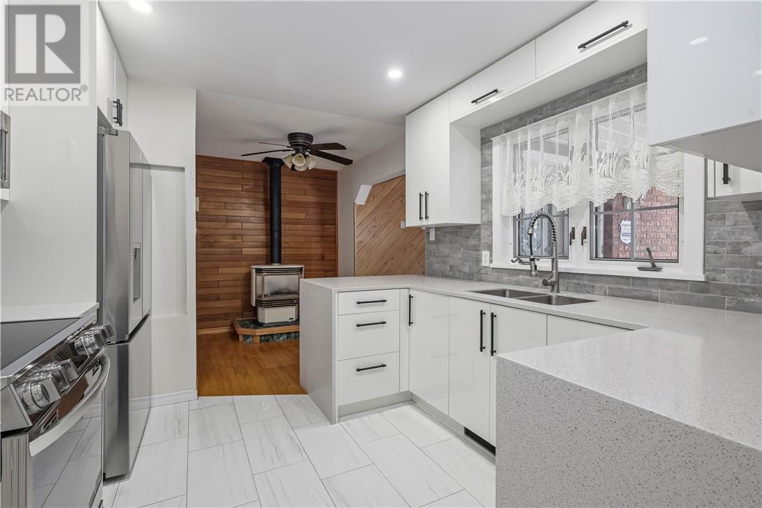 Set on 11.49 park-like acres on the outskirts of Espanola, this beautifully maintained home offers the perfect blend of privacy, space, and comfort. The main level features a brand-new, stunning kitchen with heated floors, flowing seamlessly into the dining and living areas accented by hardwood flooring. Three bedrooms and a full bath are privately tucked away on the second floor. The lower level adds valuable living space with a family room with cozy gas fireplace, second full bath, and laundry. Additional highlights include an attached garage plus a double detached garage with a recreation area, ideal for hobbies or entertaining. Outside, the beautifully landscaped grounds provide exceptional privacy, with a peaceful backyard complete with a screened gazebo, perfect for enjoying the natural surroundings. A rare opportunity to enjoy country living just minutes from town. (id:64974)