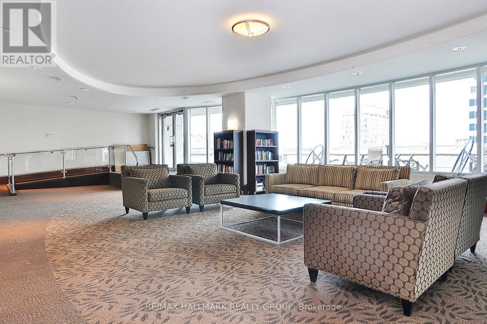 Modern 1-bedroom + den condo with underground parking, private balcony, and sweeping views of Parliament, the ByWard Market, and the Gatineau Hills in Claridge Plaza 2, ideally located in the heart of downtown Ottawa.This well-designed 701 sq ft unit offers a functional layout with gleaming hardwood floors, large windows, and a bright open-concept living and dining space that takes full advantage of the elevated views. The kitchen features granite countertops, stainless steel appliances, and ample cabinetry, while the spacious primary bedroom and separate den provide flexibility for a home office or additional living space.Enjoy the convenience of in-unit laundry, central air, and a private balcony perfect for taking in city views. Includes one underground parking space.Residents have access to the Plaza Club amenities including an indoor pool, sauna, fitness centre, and private lounge.Unbeatable location just steps to the Rideau Centre, University of Ottawa, ByWard Market, Parliament Hill, LRT, restaurants, and everyday essentials. Heat included, hydro extra. (id:64974)