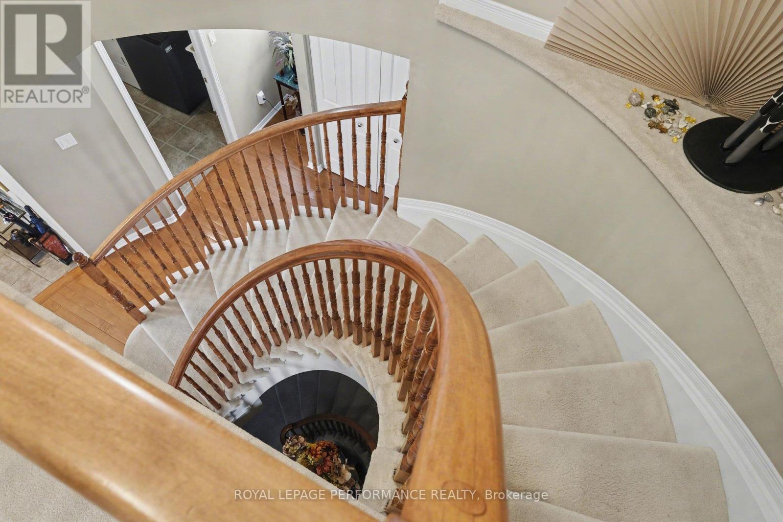 Beautiful detached 4 bedroom, 3.5 bathroom, 2 car garage home with over 2600 sqft of living space located on a quiet crescent in a good neighbourhood. A full brick front facade and covered front porch welcome you to this lovely home. Many windows fill this home with natural light throughout the day. The main floor offers a tiled foyer, a two-piece powder room, a living and dining room with hardwood floors and decorative pillars, a spacious, sunken family room with a gas fireplace and a good-sized kitchen featuring a vaulted ceiling, plenty of wood cabinets, an island, and an eating area. An upgraded circular staircase runs from the basement to the top floor creating a beautiful visual of the open space. Spacious remarkable master bedroom features cathedral ceilings, large windows, a walk-in closet plus an extra closet and a five-piece en-suite. 3 other good sized bedrooms and an extra bathroom complete the 2nd level. The lower level adds more living space with a recreation room, bedroom, 3 pieces bathroom, workshop and storage area. Fenced in backyard with a decorative fence, patio and shed. Situated close to many amenities like transit, schools, parks, shopping, restaurants and much more... (id:64974)