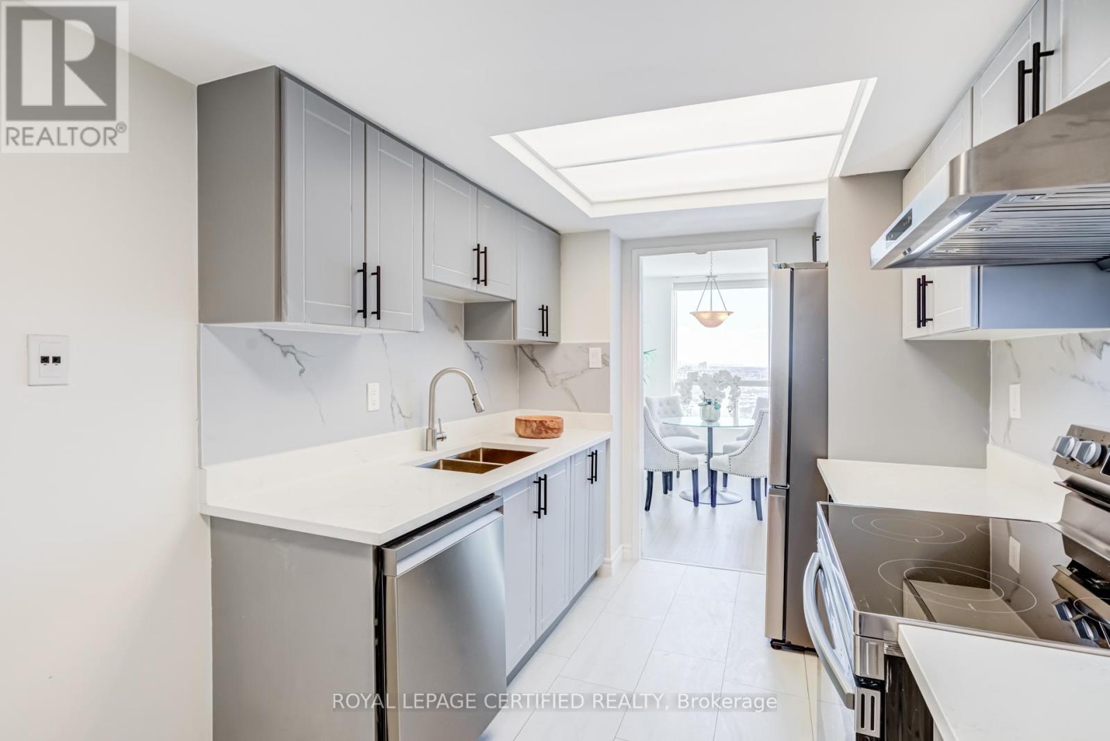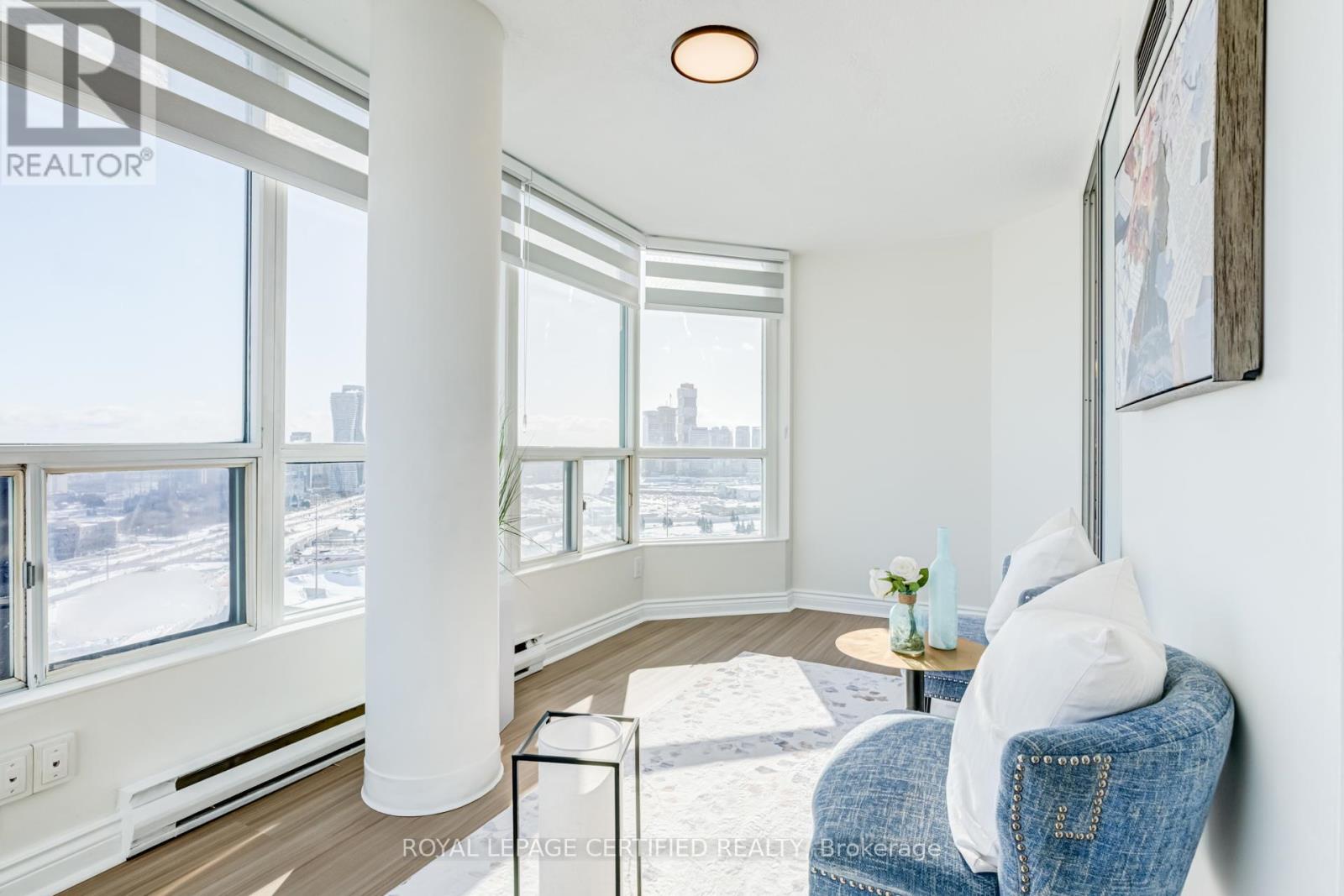 Rare sub-penthouse corner suite in prime location ,offering unobstructed skyline views and one of the largest, most functional layouts in the building. Over $50,000 spent in recent upgrades, including a modernized kitchen with upgraded appliances, new hood fan and backsplash, fully renovated bathrooms with standing showers and new vanities, high-end vinyl flooring throughout, stylish light fixtures, and new zebra blinds. This spacious 2+1 bedroom, 2-bathroom layout features a bright solarium ideal for a home office or third bedroom and is filled with natural light throughout. Includes 3 parking spaces & locker. Enjoy outstanding building amenities including 24-hour concierge, fully equipped gym, indoor pool, sauna, recreation room, racquet court, and ample visitor parking. Unbeatable location with a high walk score, just steps to Square One, all amenities, GO Station, bus transit, parks, schools, dining, and major highways, offering exceptional convenience and connectivity. (id:64974)