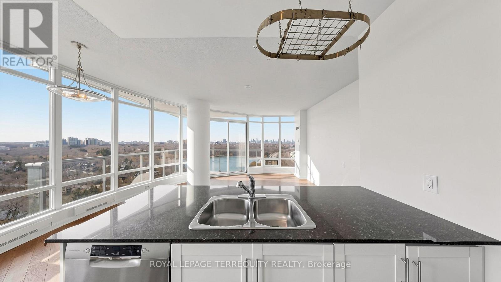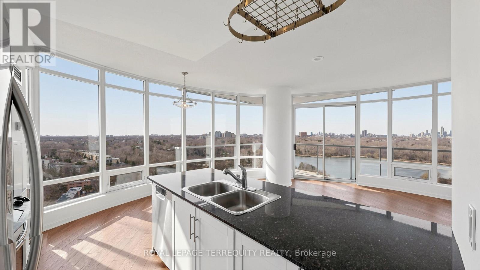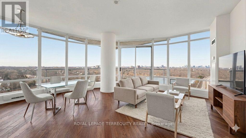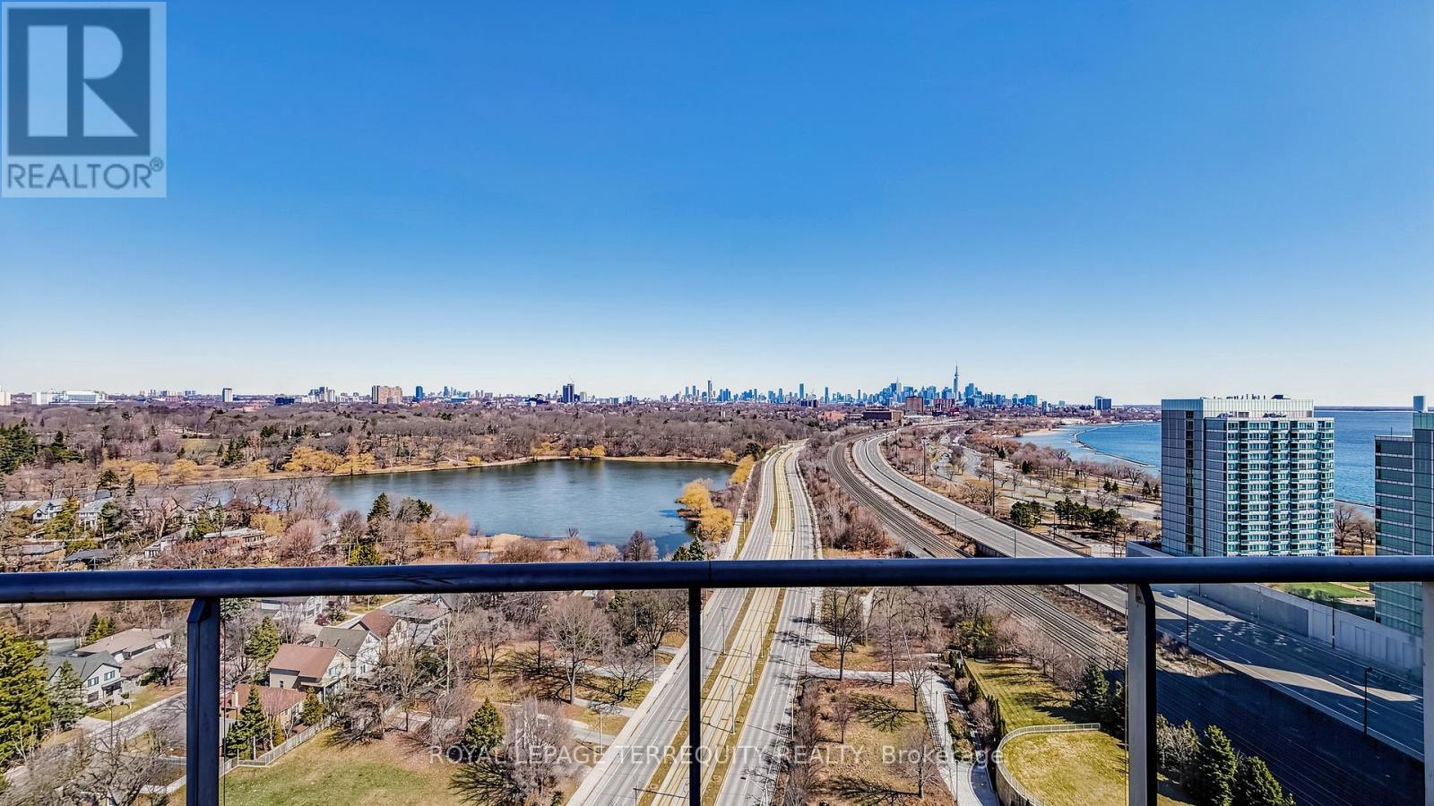 Welcome to Windermere by the Lake - where the pace slows down, but the lifestyle doesn't. Set in one of Toronto's most coveted waterfront pockets, this 2-bed + den, 2-bath suite strikes the right balance between city edge and lakeside calm. The layout just works. Open, functional, and wrapped in a 180-degree wall of windows that floods the space with natural light and frames unobstructed views of heavily forested High Park, Grenadier Pond and sparkling Toronto skyline- this suite boasts a true feast for the eyes. Morning coffee, evening wine - your balcony becomes your front-row seat to surreal views. The kitchen is clean and modern, with granite counters, a spacious breakfast bar, stainless steel appliances, and enough storage to keep everything in its place. The primary bedroom feels like a reset - floor-to-ceiling windows, a generous closet, and a 4-pc ensuite. The second bedroom is bright and well-sized, and the den is the flex space you actually need - office, reading nook, or both. This exceptional unit includes a parking spot, a storage locker and the all-inclusive maintenance fees. The building delivers 24-hour concierge, indoor pool, sauna, golf simulator, billiards, & much more! Step outside and you're in it - lakefront trails, High Park, Grenadier Pond, Bloor West Village, and the 501 streetcar right at your doorstep. Don't miss out on great value! (id:64974)