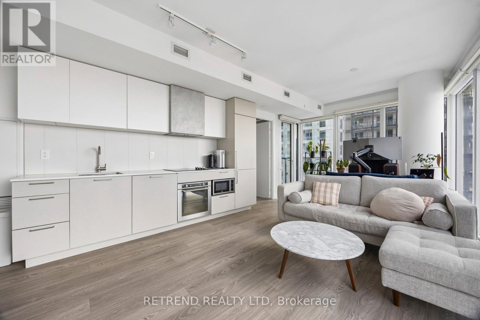 Experience modern city living at Zen King West in the heart of Liberty Village. This bright CORNER suite offers approximately 720 sq.ft. of thoughtfully designed space with floor-to-ceiling windows that flood the home with natural light. The open-concept layout features contemporary laminate flooring and a stylish kitchen complete with quartz countertops, sleek cabinetry, and stainless steel appliances. Two well-proportioned bedrooms and two full bathrooms, including a private ensuite in the primary bedroom, provide comfort and functionality. Enjoy partial VIEWS of Lake Ontario and the dynamic Liberty Village neighbourhood. Steps to cafés, restaurants, grocery stores, shops, and everyday essentials, while just minutes from King West, downtown Toronto, and the Martin Goodman waterfront trail. Convenient access to the Gardiner Expressway, GO Transit, and TTC makes commuting easy. Residents enjoy premium amenities including a large fitness centre, outdoor running track, and spa with hot tub and plunge pools. One parking space included. (id:64974)