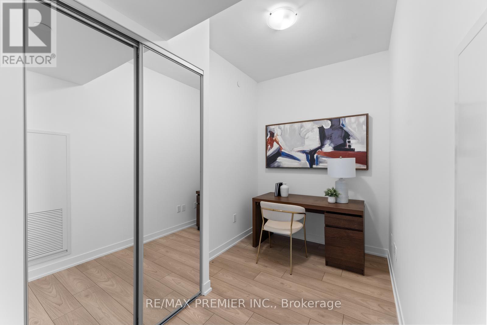 Discover this elegant 1-bedroom plus den 1-bathroom condo with 1 parking space, featuring a bright and airy layout. Spacious bedroom features large windows that bring in abundant natural light. The versatile den can serve as a home office, or cozy reading nook, enhancing your living experience. Ideally located, this unit provides easy access to transit, major highways, Vaughan Mills Shopping Centre, Hospital and a curated selection of dining and grocery options. Experience refined living with all your essentials just steps away! (id:64974)