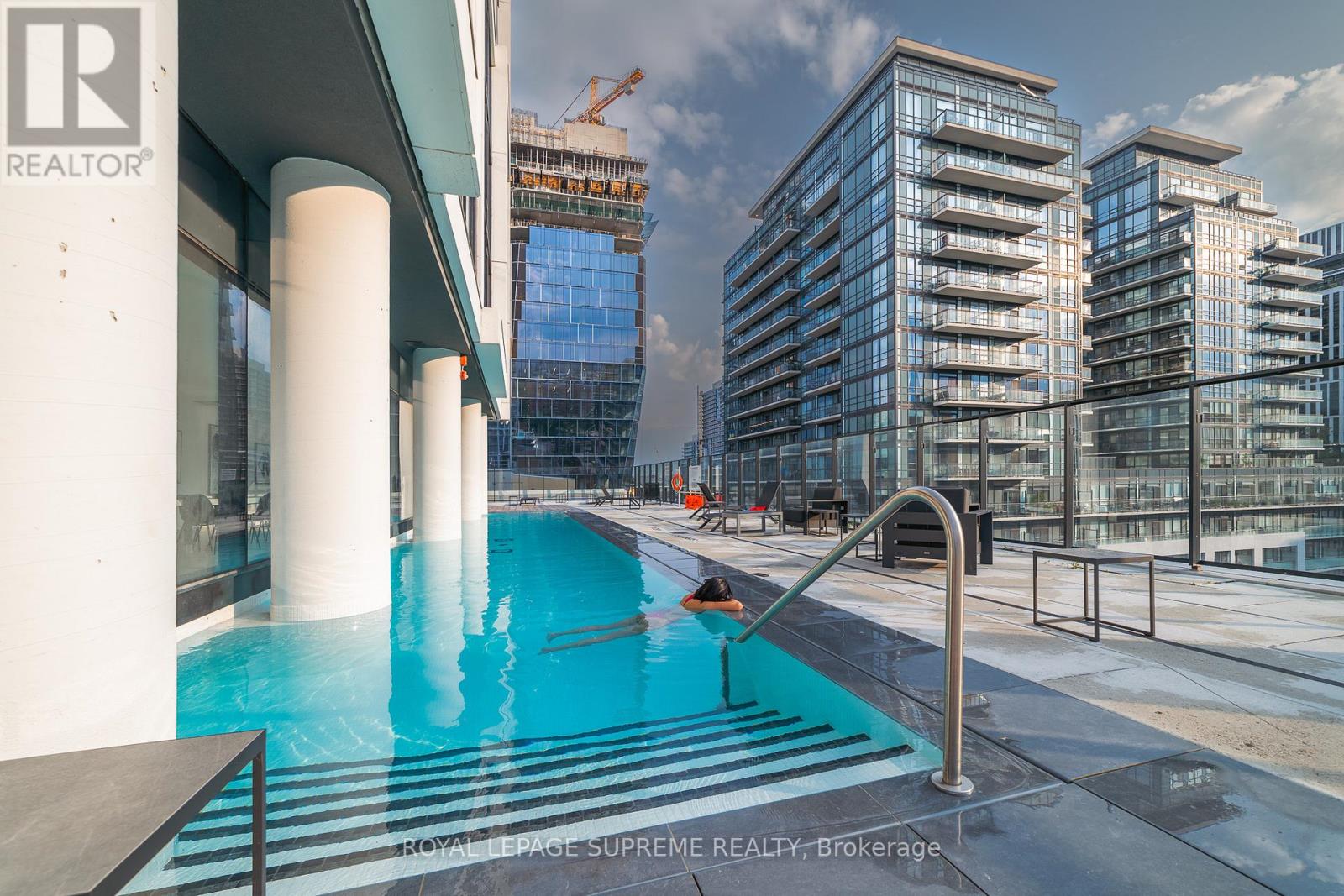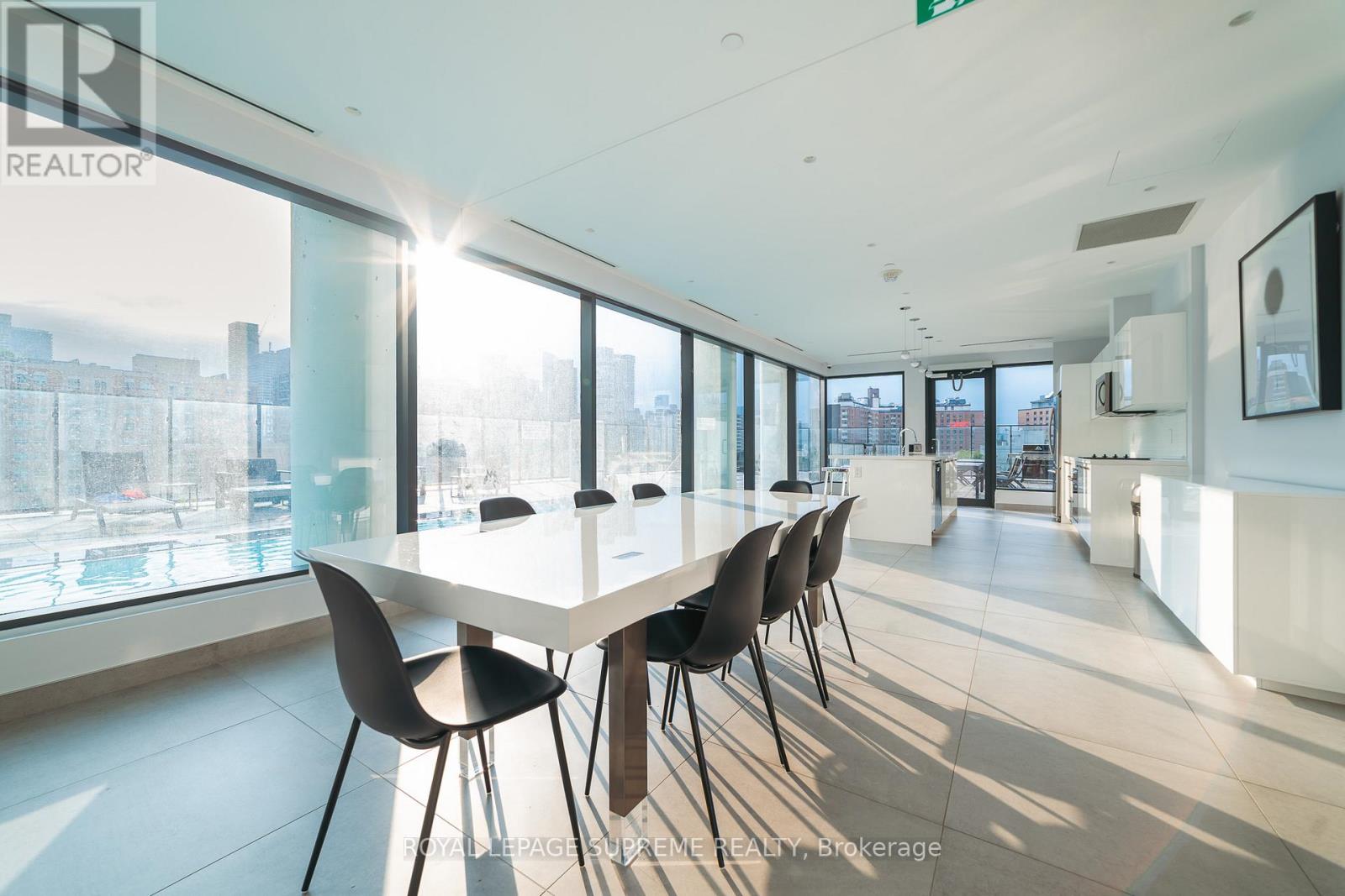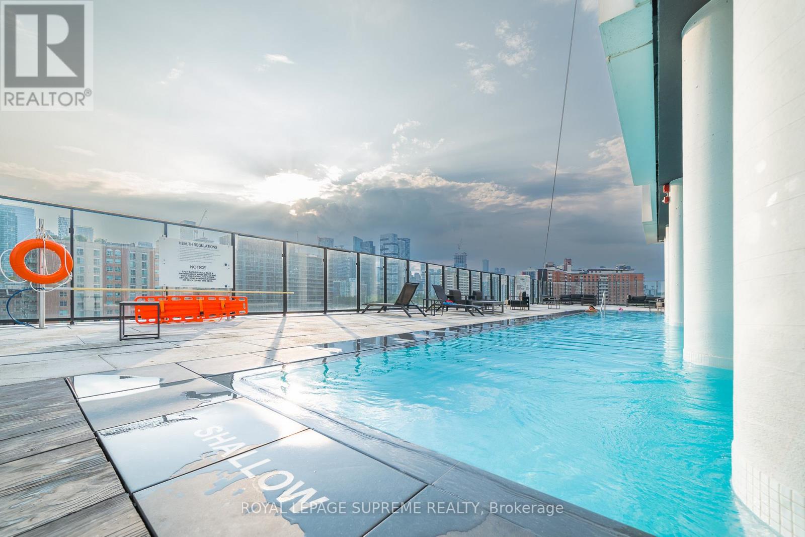 Welcome to refined urban living in Toronto. This modern 1-bedroom condo showcases stunning city views through floor-to-ceiling windows, filling the space with natural light and energy. Featuring 9-foot ceilings, an open-concept layout, and luxury finishes, the unit blends sophistication with a loft-inspired edge, highlighted by exposed concrete ceilings and sleek, modern appliances. Step out onto your private balcony with BBQ gas line, perfect for entertaining or unwinding above the city skyline. Set in the heart of downtown, you're steps to TTC streetcars, vibrant cafés, bars, restaurants, and everyday essentials, with effortless access to major routes. Enjoy premium amenities including an outdoor pool, fully equipped fitness centre, and stylish party room. This is more than a condo, it's a lifestyle in one of Toronto's most dynamic neighbourhoods. Make this stunning condo your home today! (id:64974)