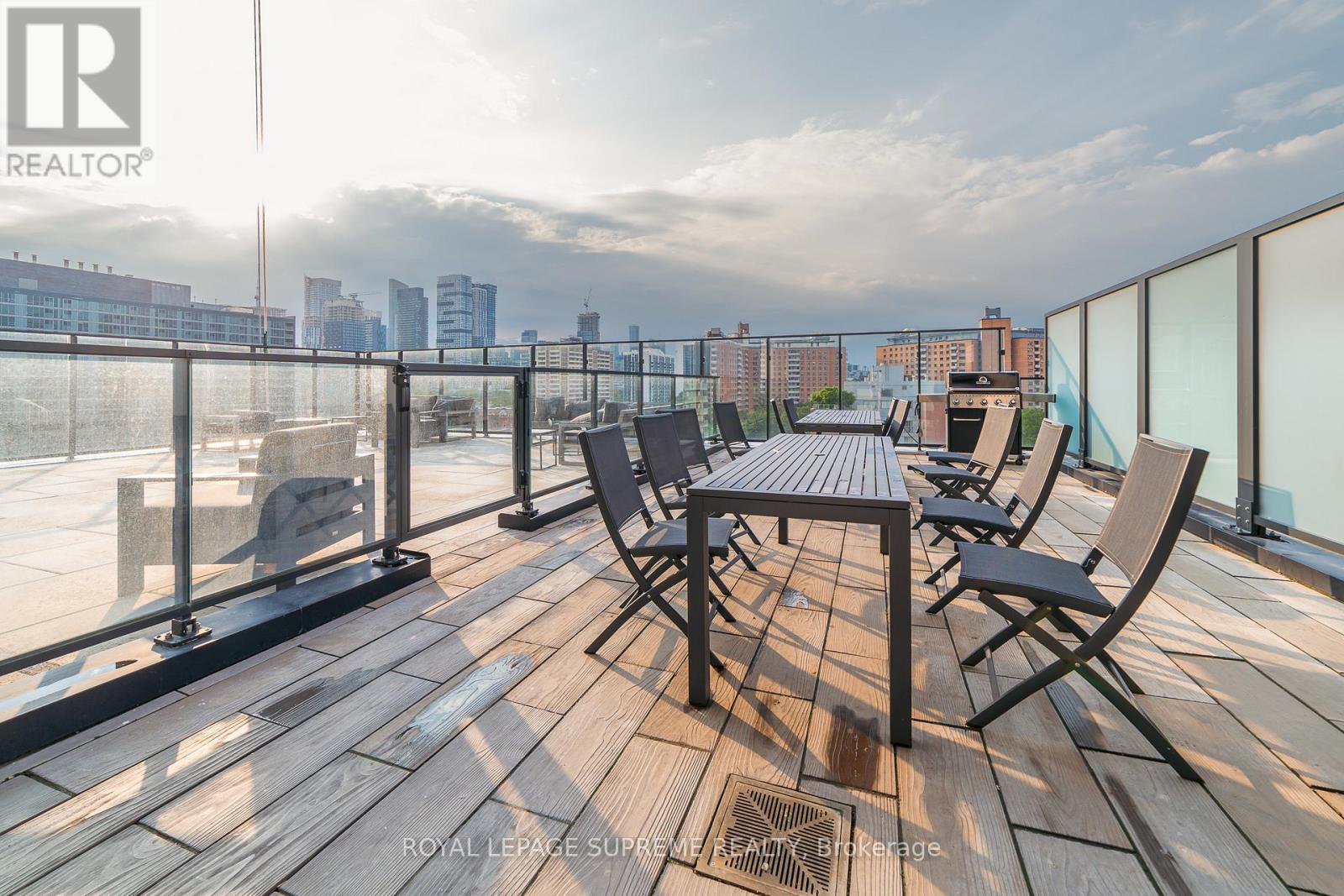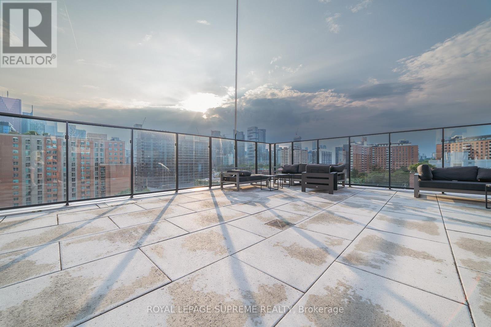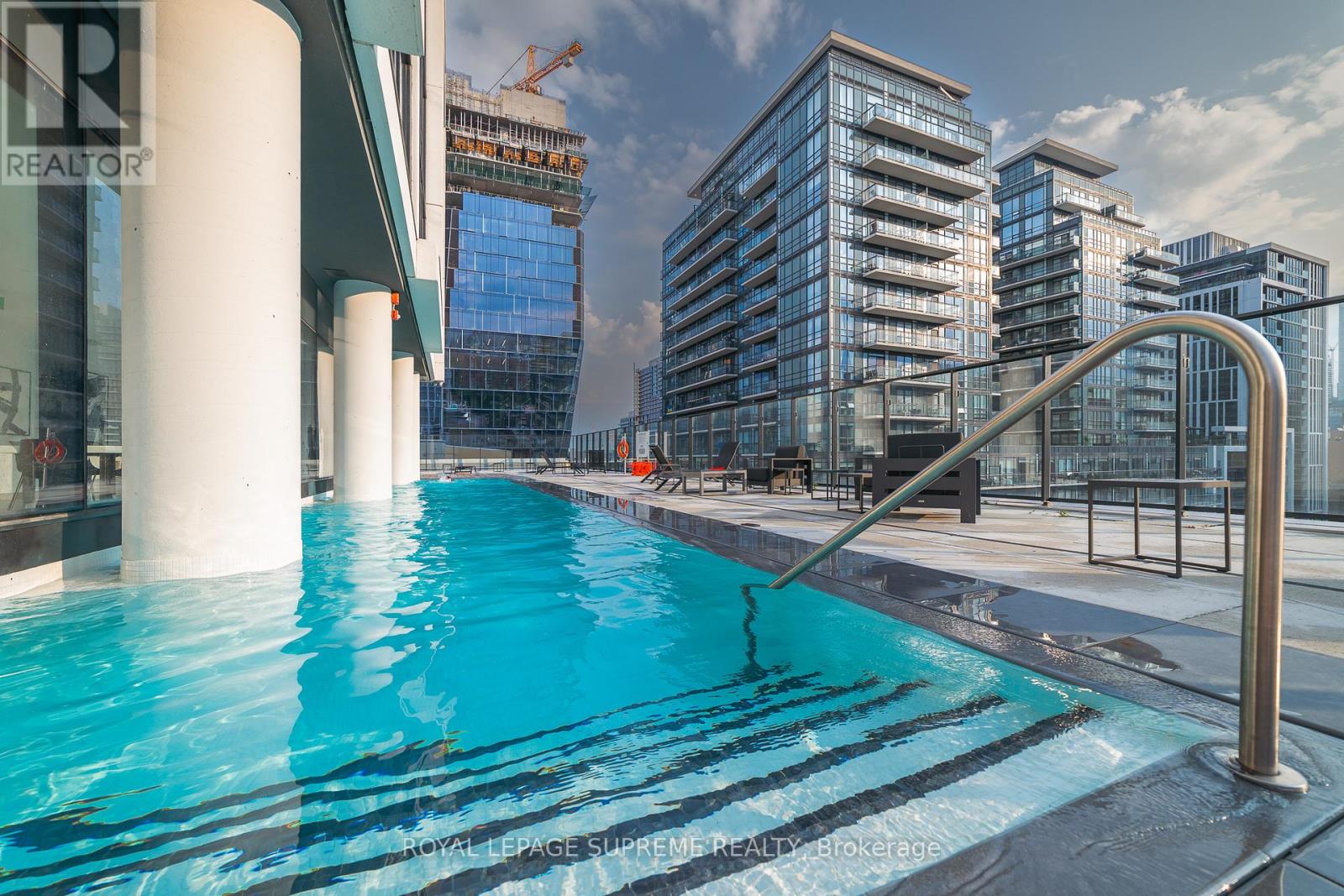 Welcome to refined urban living in Toronto. This modern 1-bedroom condo showcases stunning city views through floor-to-ceiling windows, filling the space with natural light and energy. Featuring 9-foot ceilings, an open-concept layout, and luxury finishes, the unit blends sophistication with a loft-inspired edge, highlighted by exposed concrete ceilings and sleek, modern appliances. Step out onto your private balcony with BBQ gas line, perfect for entertaining or unwinding above the city skyline. Set in the heart of downtown, you're steps to TTC streetcars, vibrant cafés, bars, restaurants, and everyday essentials, with effortless access to major routes. Enjoy premium amenities including an outdoor pool, fully equipped fitness centre, and stylish party room. This is more than a condo, it's a lifestyle in one of Toronto's most dynamic neighbourhoods. Make this stunning condo your home today! (id:64974)