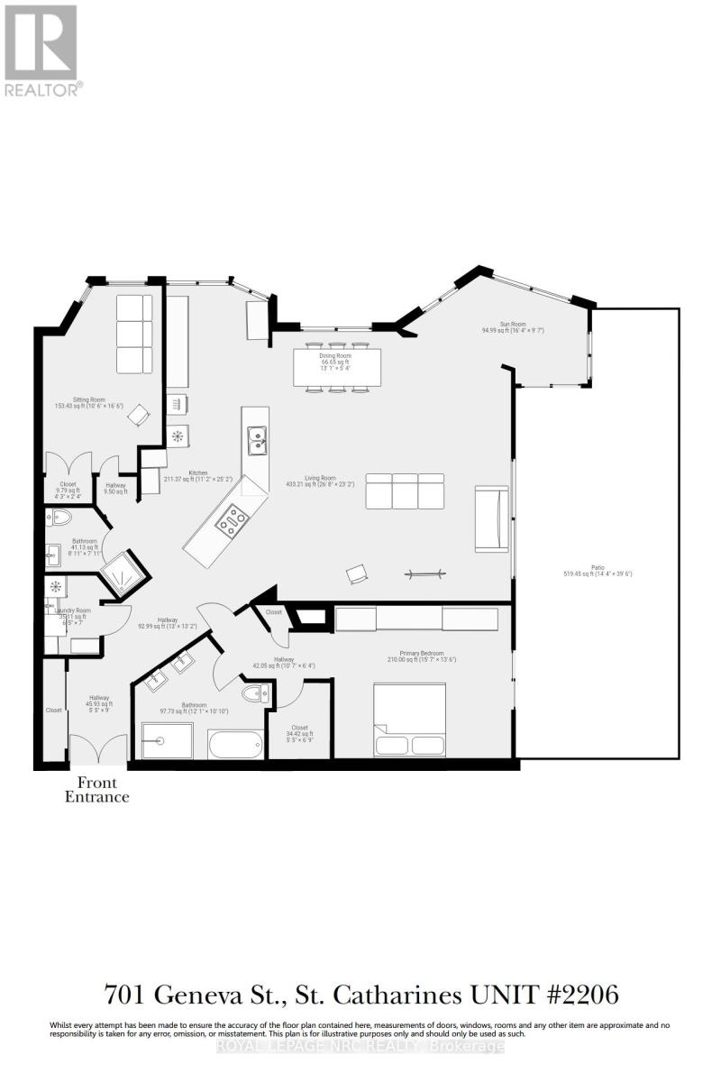 Stunning Lakeside Living! Stunning views! Stunning Corner suite condo. and all found in this one of a kind complex in North St.Catharines known as Beachview Place. Beautiful water views from the moment you walk into the secure lobby, views that keep on going from every panoramic window plus the 800 sq ft terrace of this professionally renovated 2 bedroom , 2 bathroom apartment. Open concept design has a seamless flow encompassing the dining area , livingroom area and sunroom with heated floors. Some of the high end finishes include quartz countertops ,voice activated and dimmable lighting ,custom remote control window coverings and hardwood floors. Not only is the sparkling kitchen chef worthy, it was also designed to ensure the views continue. Optimized storage, coffee station, dual oven, cooktop range, easy drain double sink, dual pull out spice cupboards, pantry and breakfast bar. The primary bedroom includes custom built ins, a walk in closet and spa like 5 piece ensuite with heated floor and opens to the terrace that features a permanent dedicated shade area. Roomy second or guest bedroom/office has a 3 pc bath that features a custom underlay vanity top with waterfall faucet that is simply dazzling. Building amenities include an outdoor heated pool, sauna, meeting room, library , and fitness room where of course you can cycle overlooking the lake! Access to the Waterfront Trail for jogging or leisurely strolls on the grounds as well. Monthly fees include heat, hydro, Wifi, cable and water. This unit has exclusive use of one indoor parking space and one outdoor. All in all this is the perfect blend of beauty and a simplified lifestyle. (id:64974)